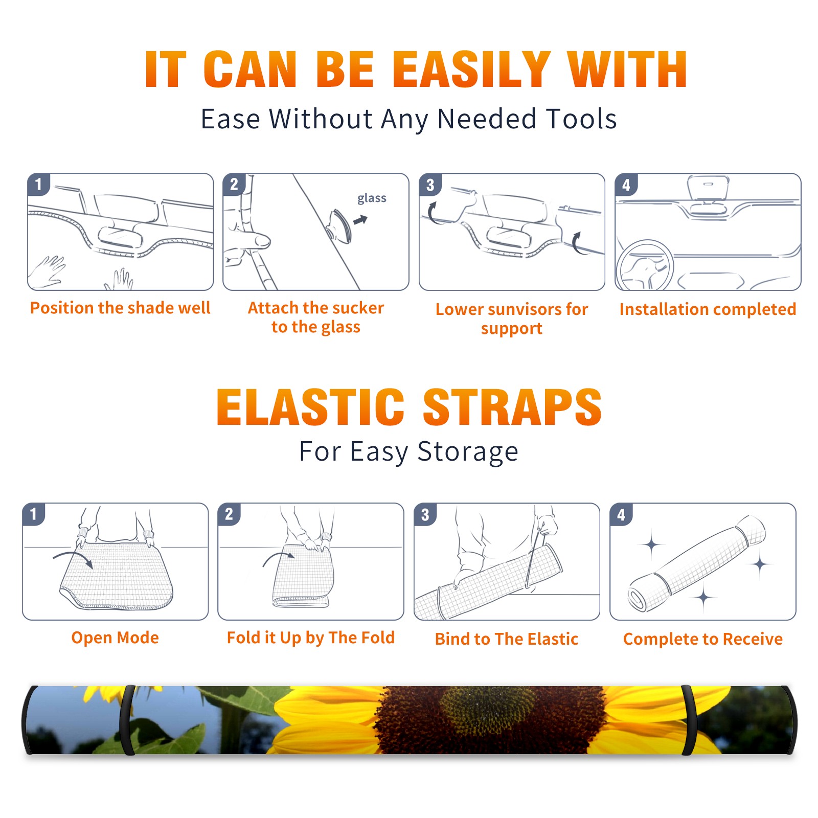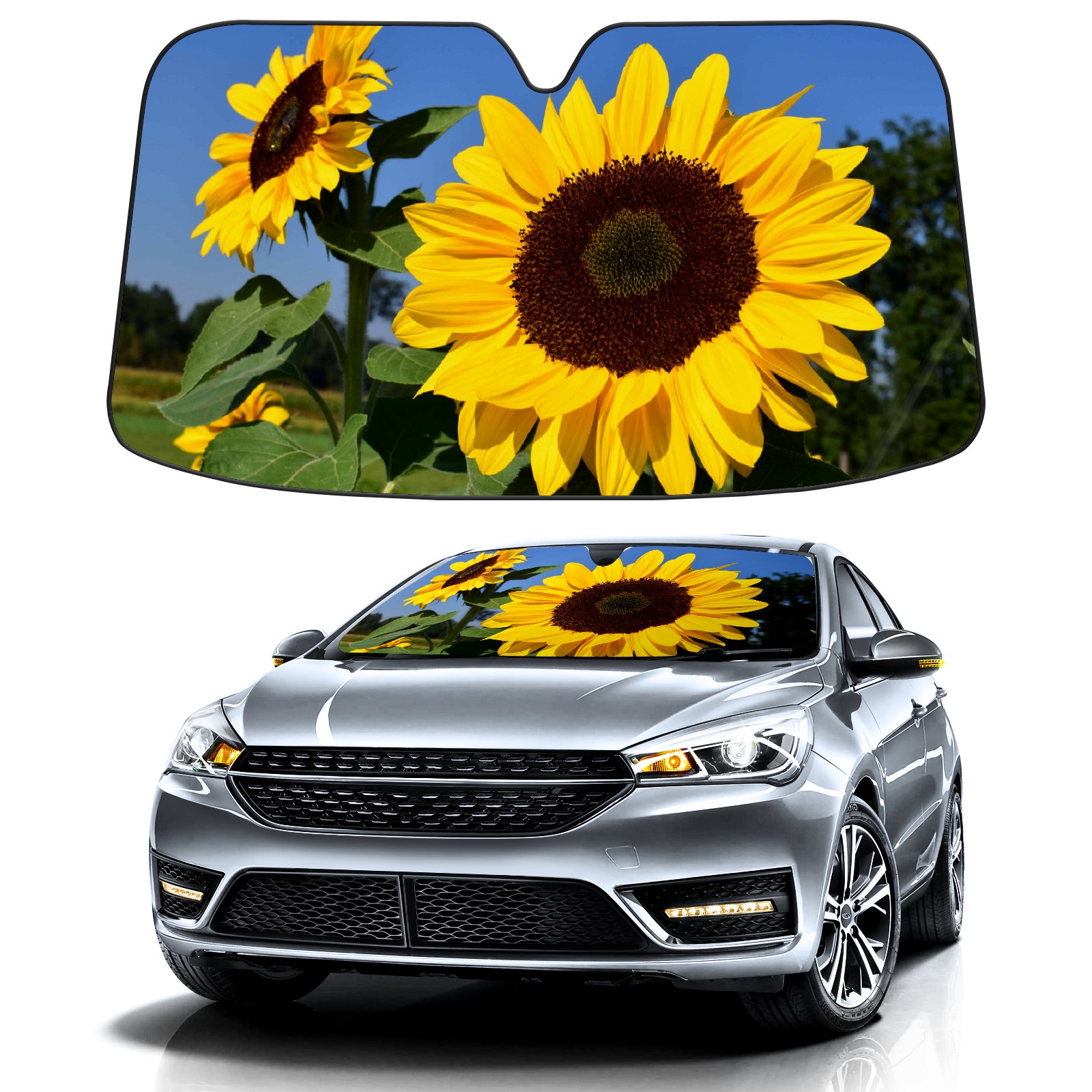 Car Windshield Sun Shade For Front Window Clear Sky Yellow Sunflower Rural Field Foldable Vehicle Windshield Car Sun Visor Covers Automotive Window Protector Car Camping Privacy Sun Blocker