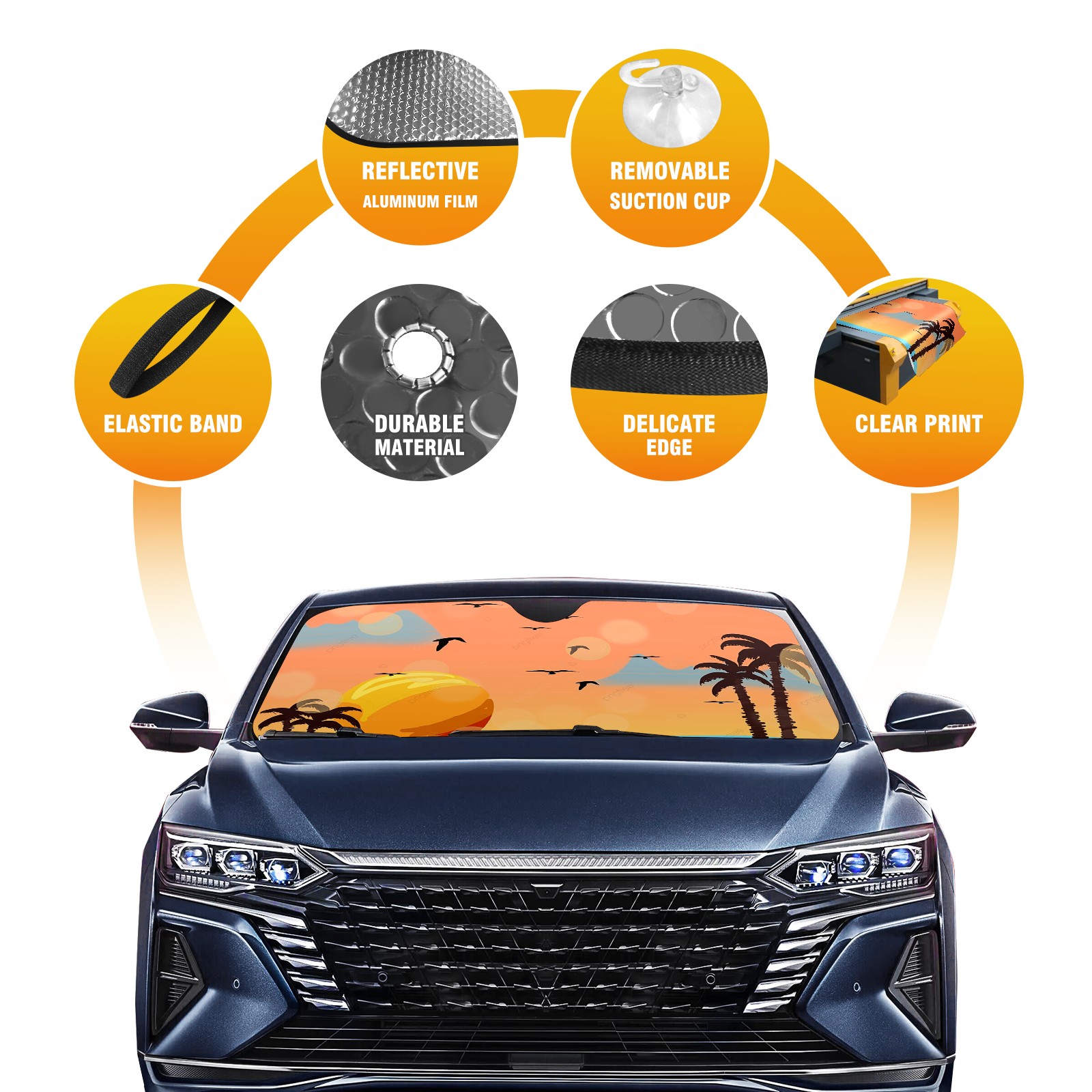 • Diameter /Size 63"L x 33.5"W Made from excellent materials which makes it sturdy and protects the car from the sun. Easy to use and pack. Makes the interior of the car cooler.You can easily stash the sunshade in the storage bag or store long term.It open and closes easy. Also the leather storage bag is durable and easy to put the umbrella back into.This windshield sunshade provides complete coverage and keeps your car interior cool under direct sun. It is easy to open and position under the windshield and around the rear-view mirror. Makes Your Car Easy To Identify, Perfect For Finding Your Car In Crowded Parking Lots And Garages.Great Choice: It Is A Great Gift For Dad, Boyfriend, Brother, Brother And Uncle, Friends, Classmates, Family And So On. Notice: Due To Difference Computer Monitors, The Color Maybe Slightly Different From Picture. As Different Measurement Methods, Measurement Data Will Float Within 2%.I Hope You Understand. If You Have Any Question About The Item Please Do Not Hesitate To Contact Us Immediately And We Will Give You A Satisfactory Reply Within 24 Hours.