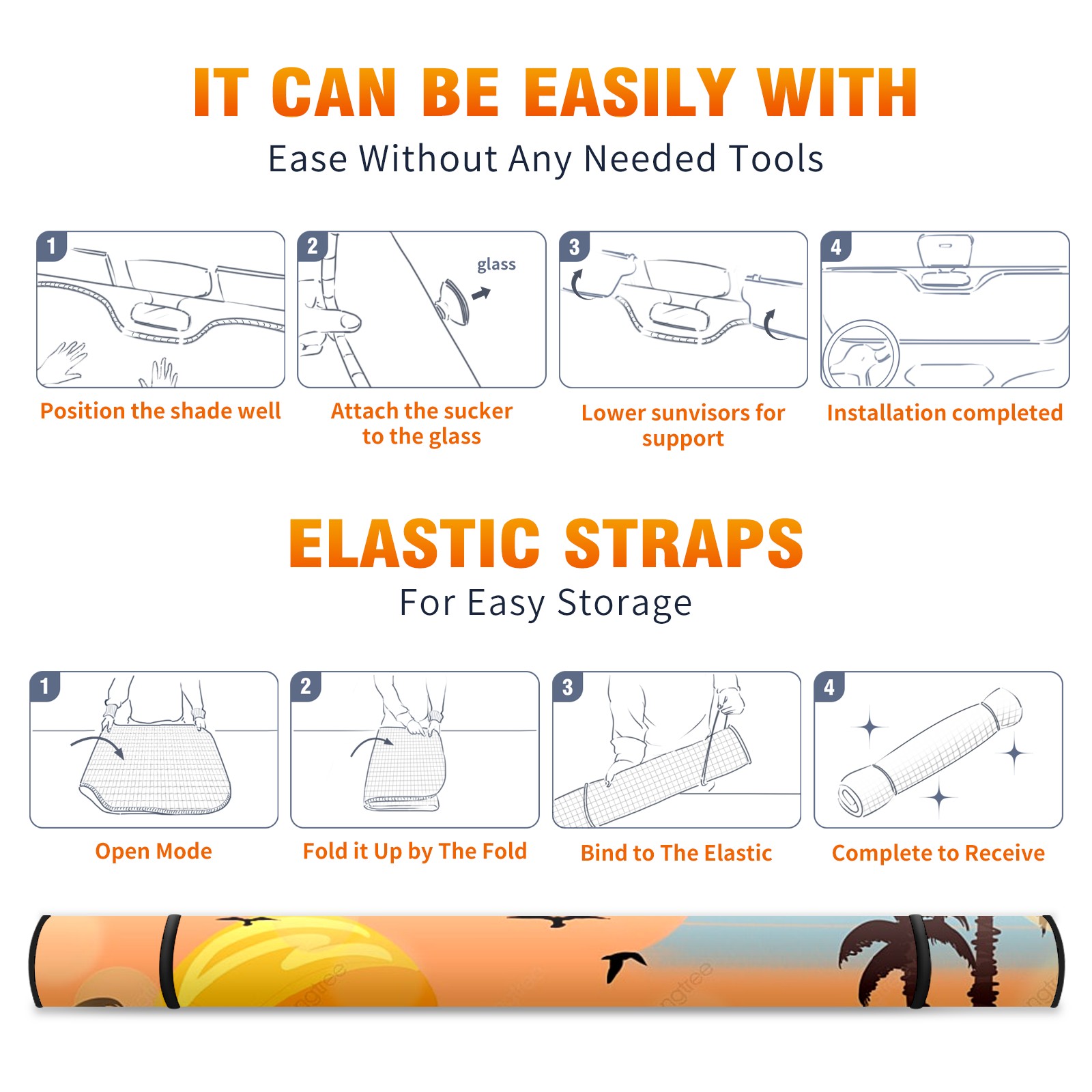 Diameter /Size 63"L x 33.5"W Made from excellent materials which makes it sturdy and protects the car from the sun. Easy to use and pack. Makes the interior of the car cooler.You can easily stash the sunshade in the storage bag or store long term.It open and closes easy. Also the leather storage bag is durable and easy to put the umbrella back into.This windshield sunshade provides complete coverage and keeps your car interior cool under direct sun. It is easy to open and position under the windshield and around the rear-view mirror. Makes Your Car Easy To Identify, Perfect For Finding Your Car In Crowded Parking Lots And Garages.Great Choice: It Is A Great Gift For Dad, Boyfriend, Brother, Brother And Uncle, Friends, Classmates, Family And So On. Notice: Due To Difference Computer Monitors, The Color Maybe Slightly Different From Picture. As Different Measurement Methods, Measurement Data Will Float Within 2%.I Hope You Understand. If You Have Any Question About The Item Please Do Not Hesitate To Contact Us Immediately And We Will Give You A Satisfactory Reply Within 24 Hours.