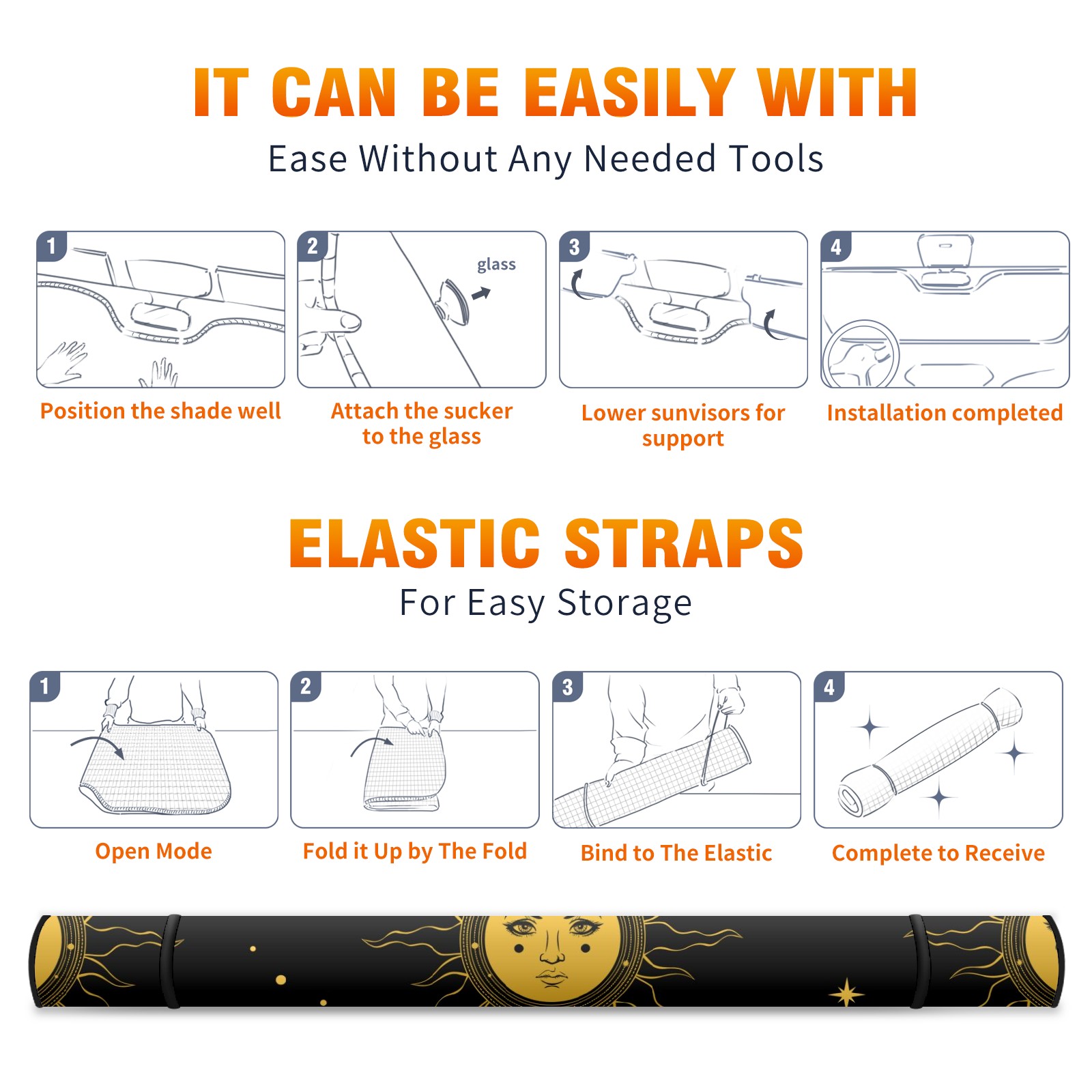 Car Windshield Sun Shade For Front Window Sun And Moon In Starry Sky Foldable Vehicle Windshield Car Sun Visor Covers Automotive Window Protector Car Camping Privacy Sun Blocker