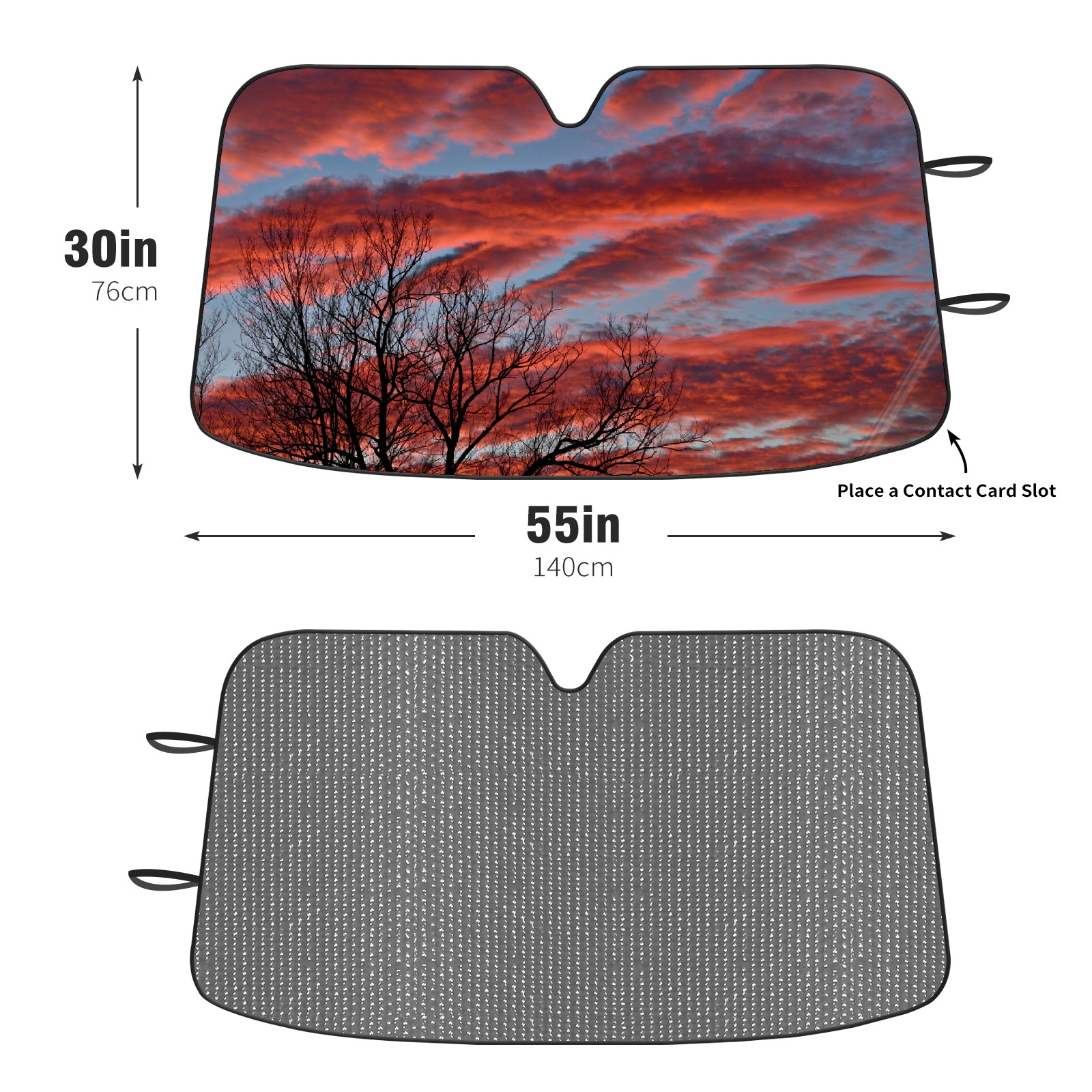 Diameter /Size 63"L x 33.5"W Made from excellent materials which makes it sturdy and protects the car from the sun. Easy to use and pack. Makes the interior of the car cooler.You can easily stash the sunshade in the storage bag or store long term.It open and closes easy. Also the leather storage bag is durable and easy to put the umbrella back into.This windshield sunshade provides complete coverage and keeps your car interior cool under direct sun. It is easy to open and position under the windshield and around the rear-view mirror. Makes Your Car Easy To Identify, Perfect For Finding Your Car In Crowded Parking Lots And Garages.Great Choice: It Is A Great Gift For Dad, Boyfriend, Brother, Brother And Uncle, Friends, Classmates, Family And So On. Notice: Due To Difference Computer Monitors, The Color Maybe Slightly Different From Picture. As Different Measurement Methods, Measurement Data Will Float Within 2%.I Hope You Understand. If You Have Any Question About The Item Please Do Not Hesitate To Contact Us Immediately And We Will Give You A Satisfactory Reply Within 24 Hours.