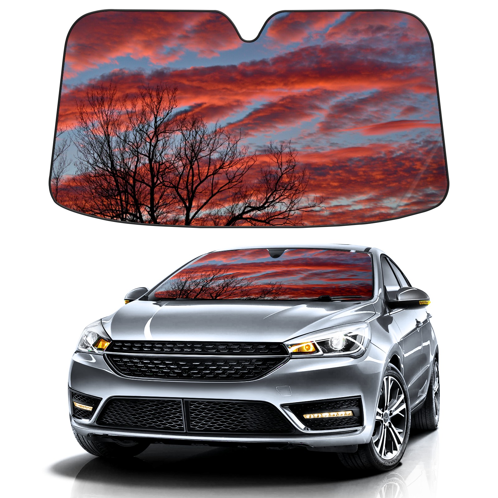 Car Windshield Sun Shade For Front Window Sky And Cloud Foldable Vehicle Windshield Car Sun Visor Covers Automotive Window Protector Car Camping Privacy Sun Blocker