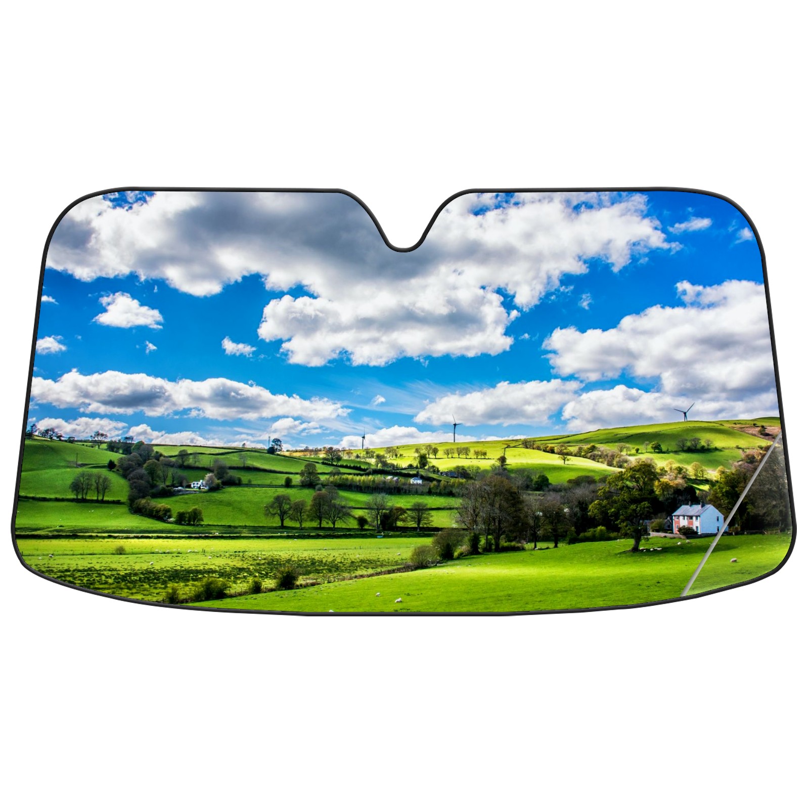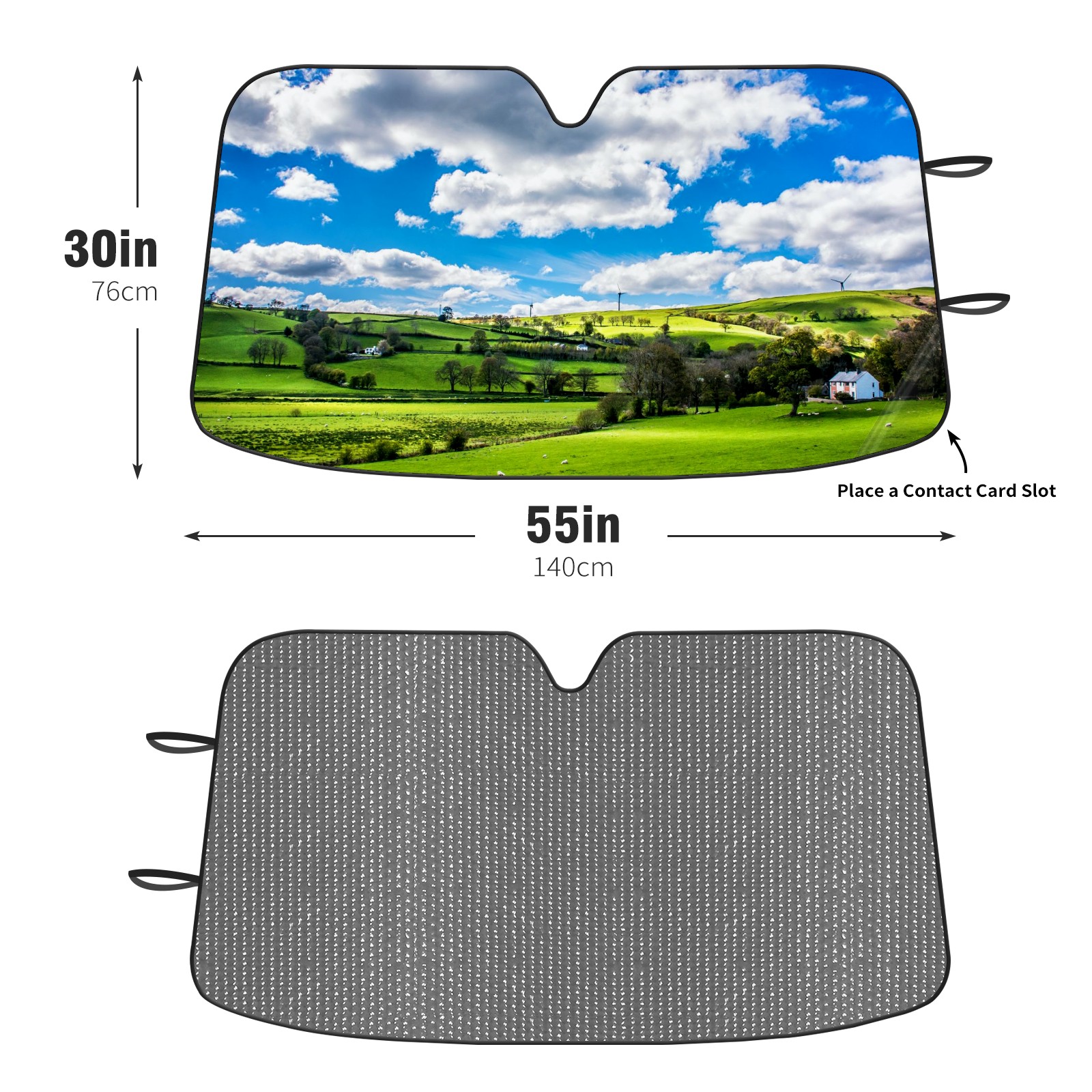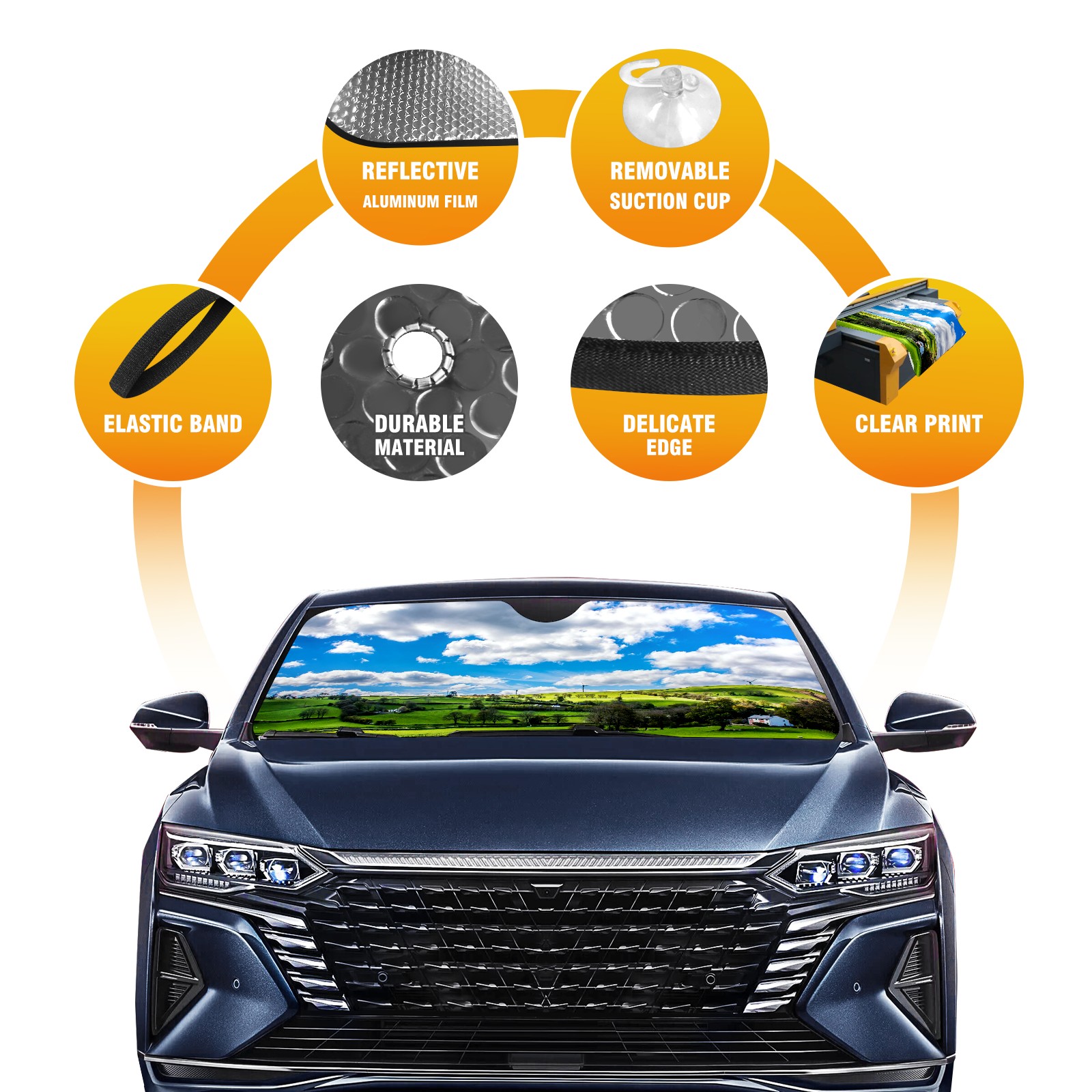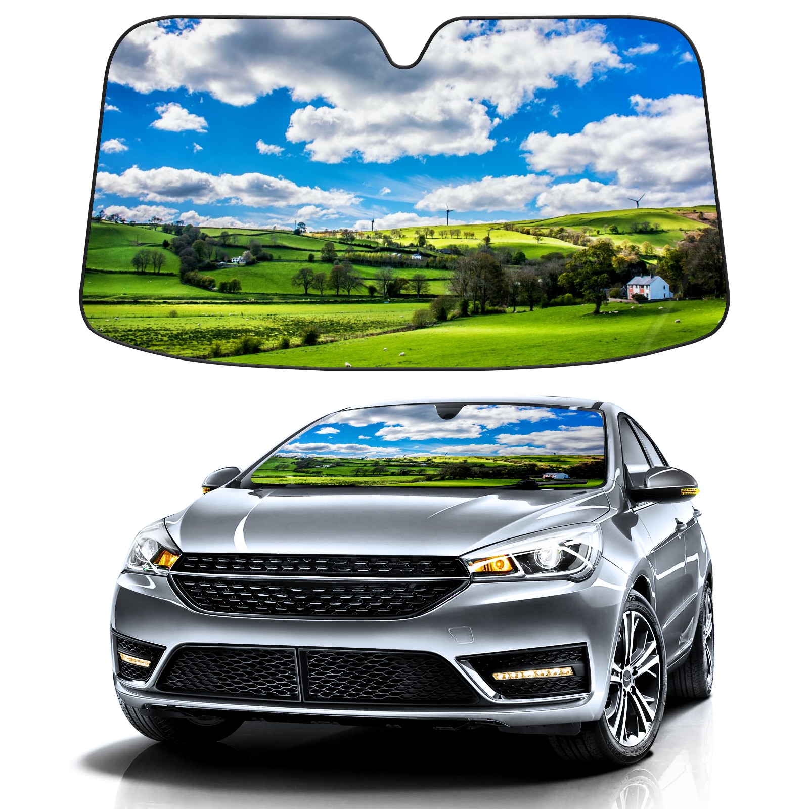 Car Windshield Sun Shade For Front Window Blue Sky And White Cloud Foldable Vehicle Windshield Car Sun Visor Covers Automotive Window Protector Car Camping Privacy Sun Blocker