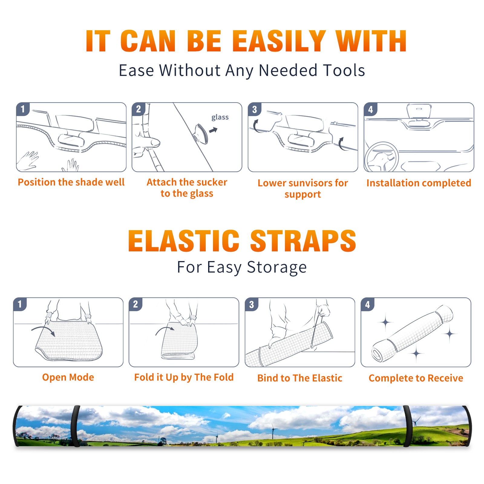• Diameter /Size 63"L x 33.5"W Made from excellent materials which makes it sturdy and protects the car from the sun. Easy to use and pack. Makes the interior of the car cooler.You can easily stash the sunshade in the storage bag or store long term.It open and closes easy. Also the leather storage bag is durable and easy to put the umbrella back into.This windshield sunshade provides complete coverage and keeps your car interior cool under direct sun. It is easy to open and position under the windshield and around the rear-view mirror. Makes Your Car Easy To Identify, Perfect For Finding Your Car In Crowded Parking Lots And Garages.Great Choice: It Is A Great Gift For Dad, Boyfriend, Brother, Brother And Uncle, Friends, Classmates, Family And So On. Notice: Due To Difference Computer Monitors, The Color Maybe Slightly Different From Picture. As Different Measurement Methods, Measurement Data Will Float Within 2%.I Hope You Understand. If You Have Any Question About The Item Please Do Not Hesitate To Contact Us Immediately And We Will Give You A Satisfactory Reply Within 24 Hours.