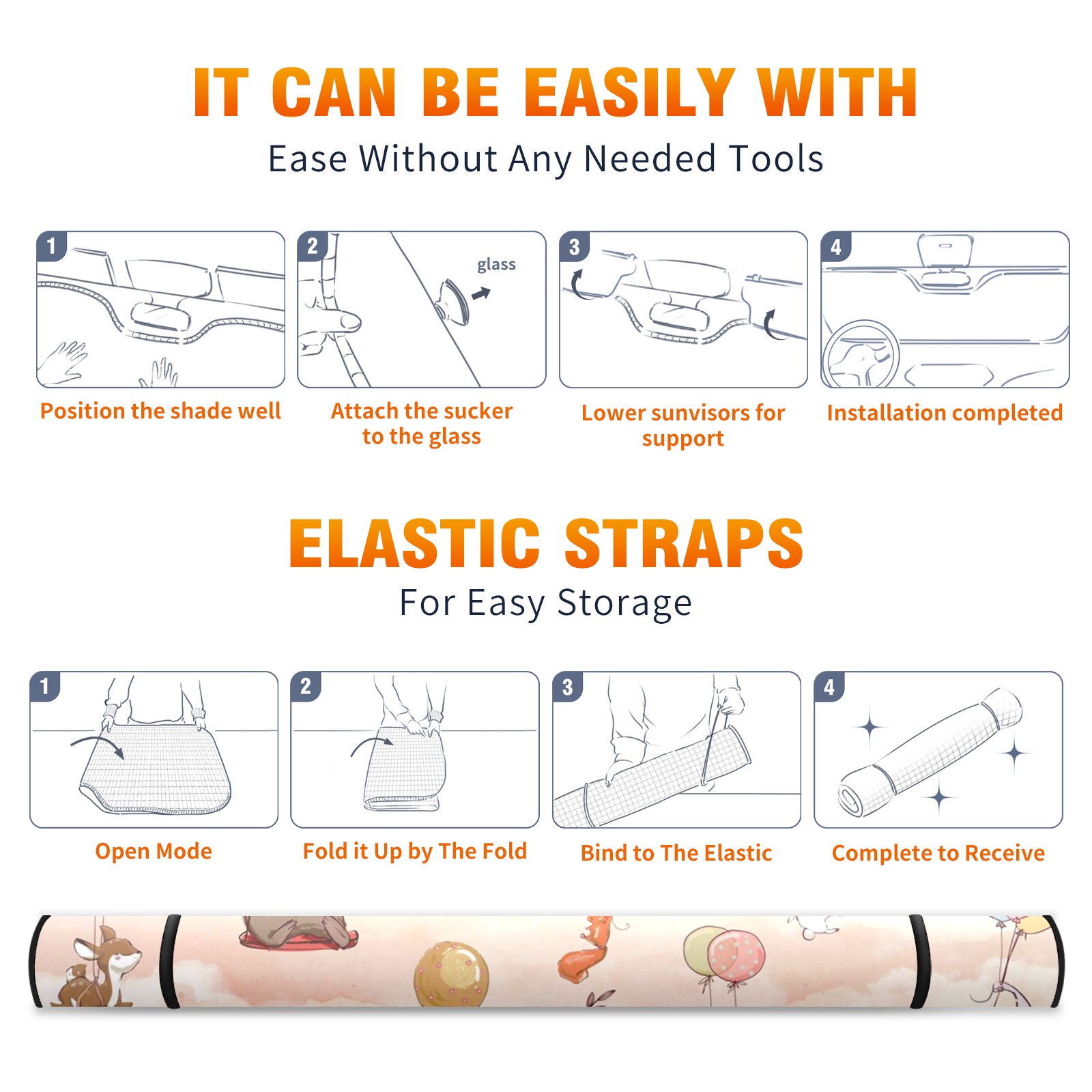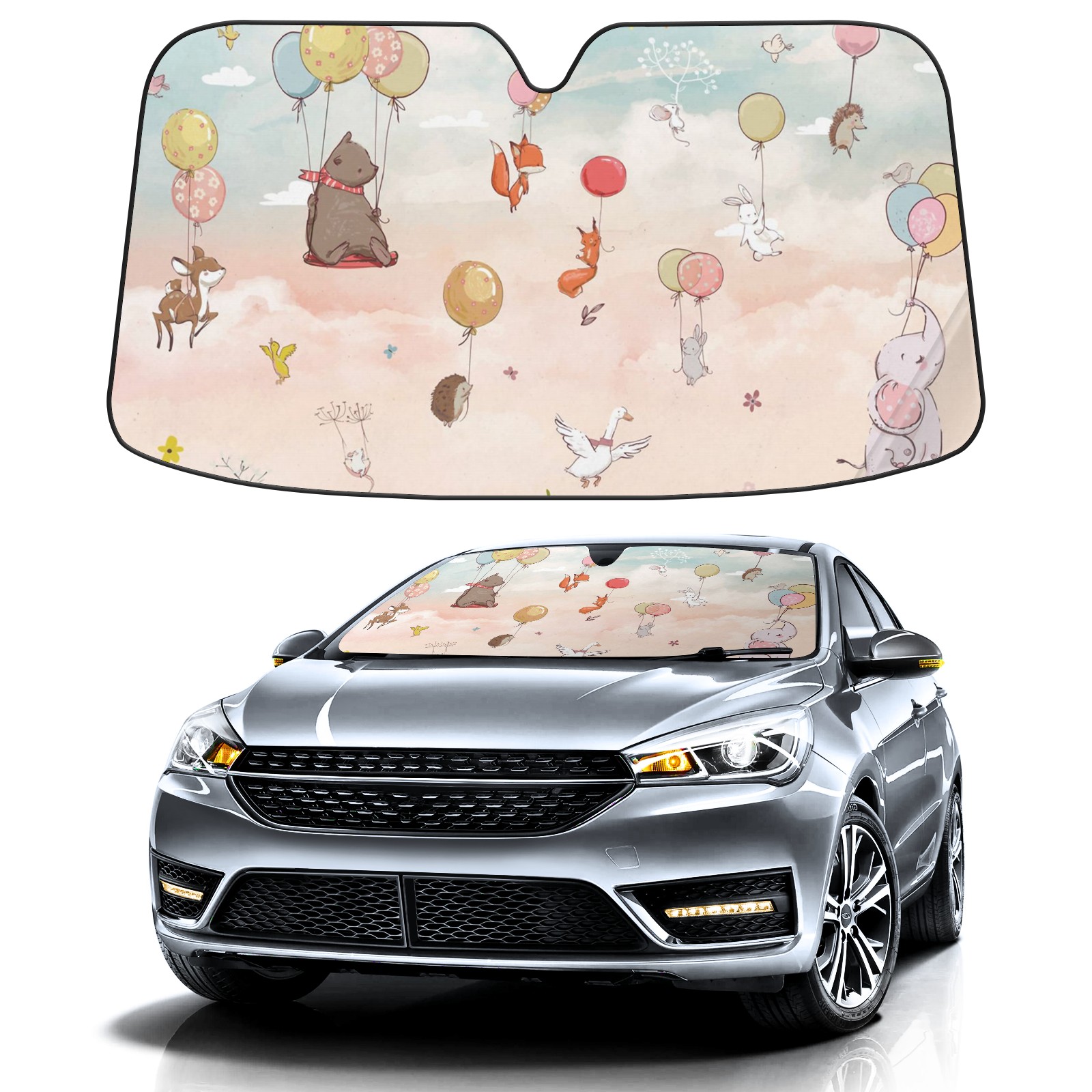 Car Windshield Sun Shade For Front Window Baby Animals Sky Foldable Vehicle Windshield Car Sun Visor Covers Automotive Window Protector Car Camping Privacy Sun Blocker