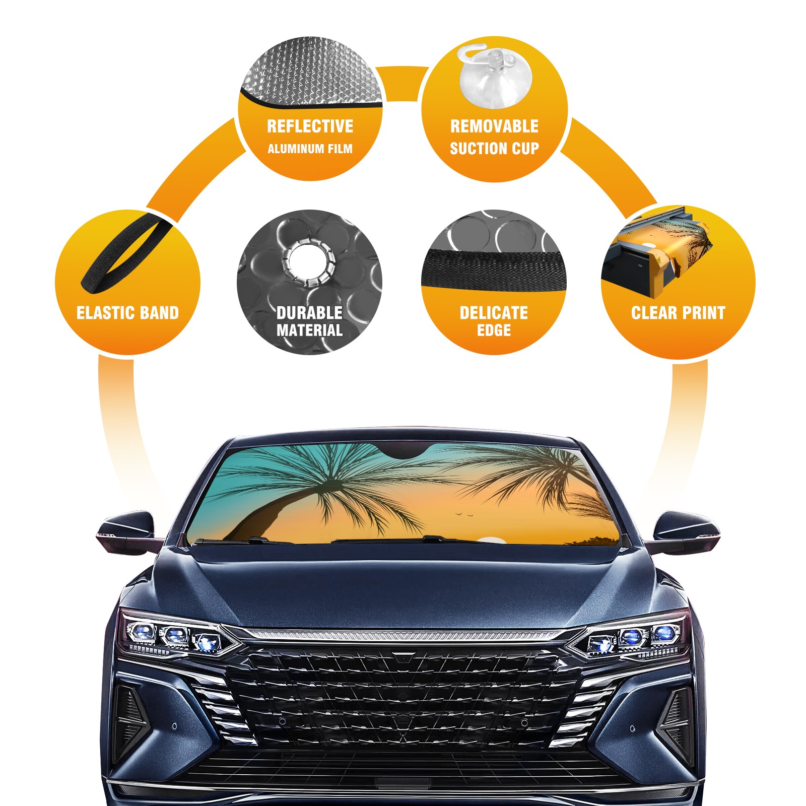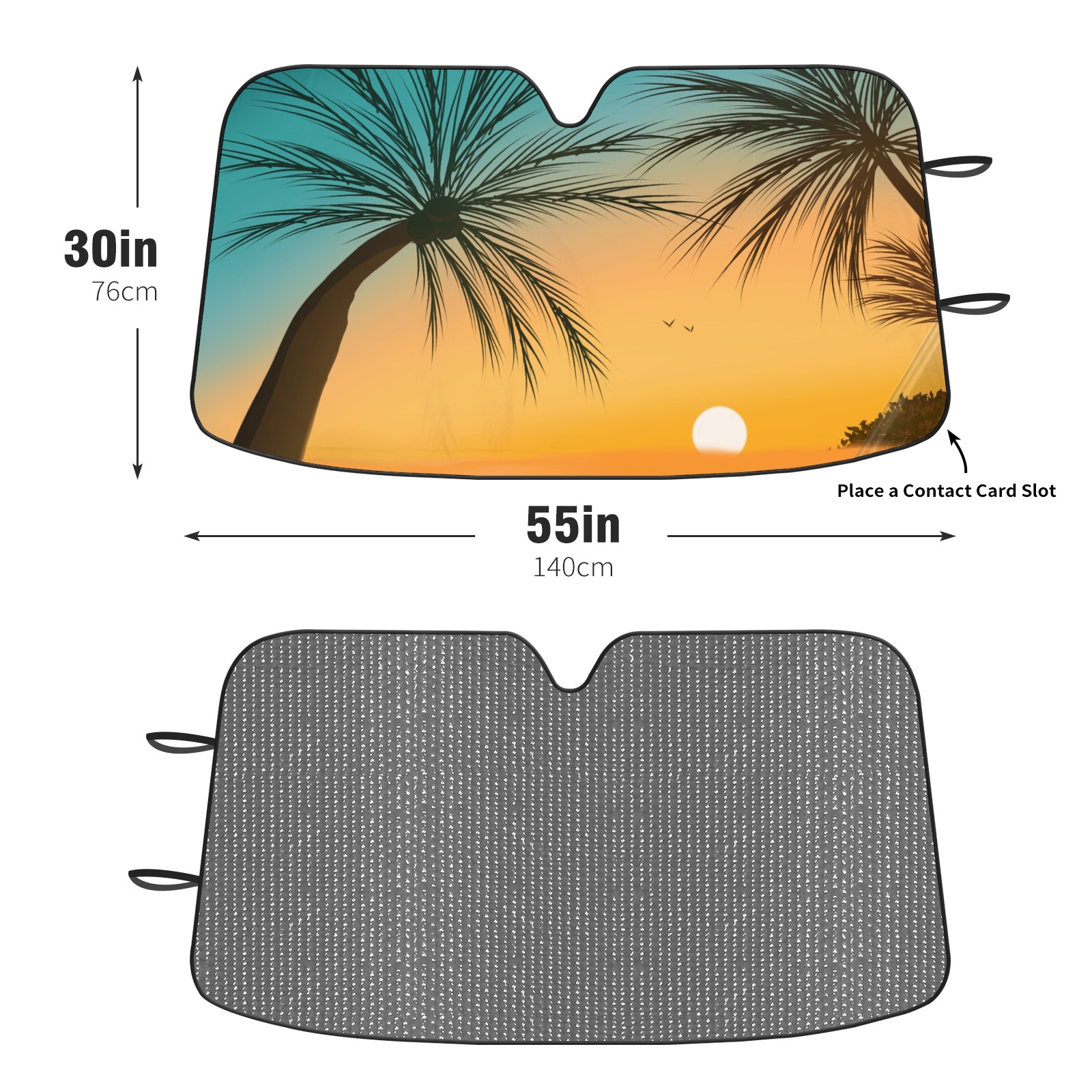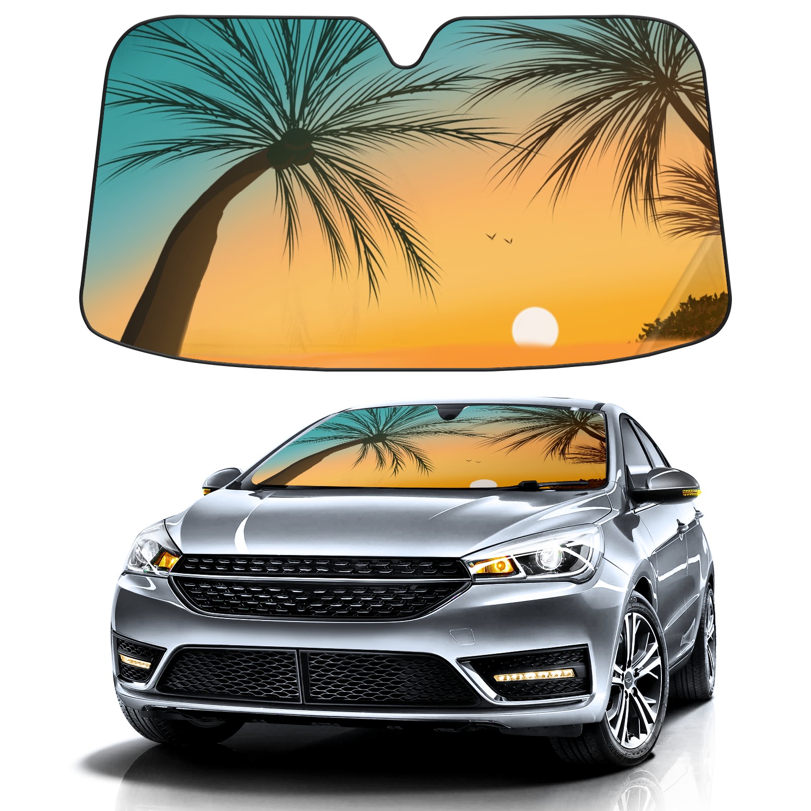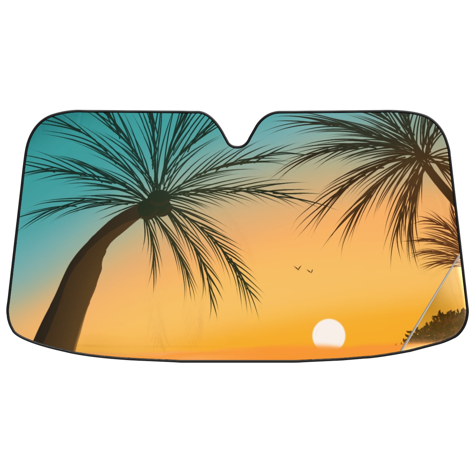Car Windshield Sun Shade For Front Window Tree Sunset Palm Tree Tropical Sun Sky Foldable Vehicle Windshield Car Sun Visor Covers Automotive Window Protector Car Camping Privacy Sun Blocker