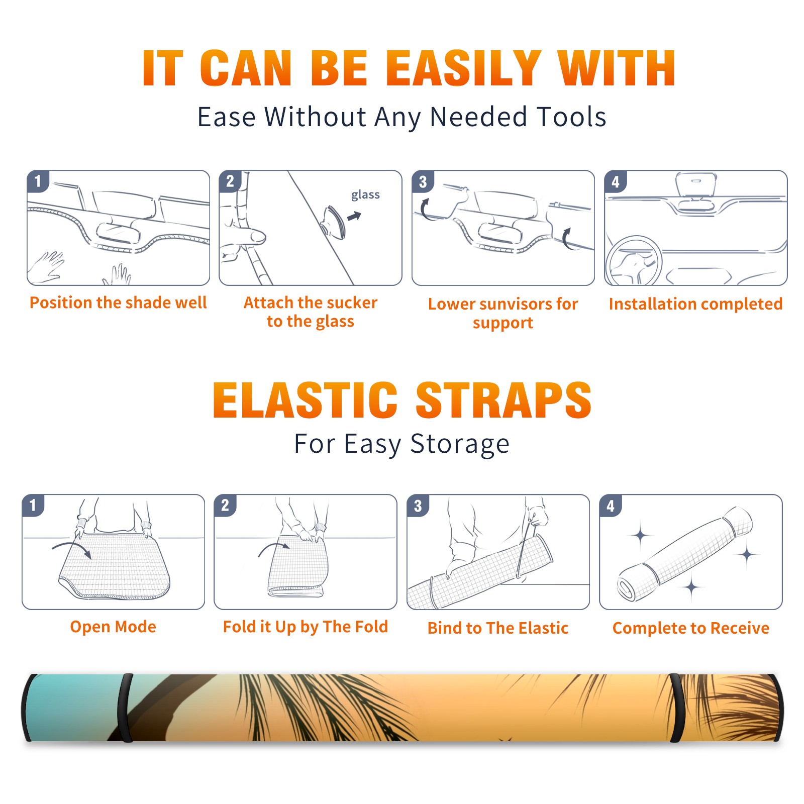 • Diameter /Size 63"L x 33.5"W Made from excellent materials which makes it sturdy and protects the car from the sun. Easy to use and pack. Makes the interior of the car cooler.You can easily stash the sunshade in the storage bag or store long term.It open and closes easy. Also the leather storage bag is durable and easy to put the umbrella back into.This windshield sunshade provides complete coverage and keeps your car interior cool under direct sun. It is easy to open and position under the windshield and around the rear-view mirror. Makes Your Car Easy To Identify, Perfect For Finding Your Car In Crowded Parking Lots And Garages.Great Choice: It Is A Great Gift For Dad, Boyfriend, Brother, Brother And Uncle, Friends, Classmates, Family And So On. Notice: Due To Difference Computer Monitors, The Color Maybe Slightly Different From Picture. As Different Measurement Methods, Measurement Data Will Float Within 2%.I Hope You Understand. If You Have Any Question About The Item Please Do Not Hesitate To Contact Us Immediately And We Will Give You A Satisfactory Reply Within 24 Hours.