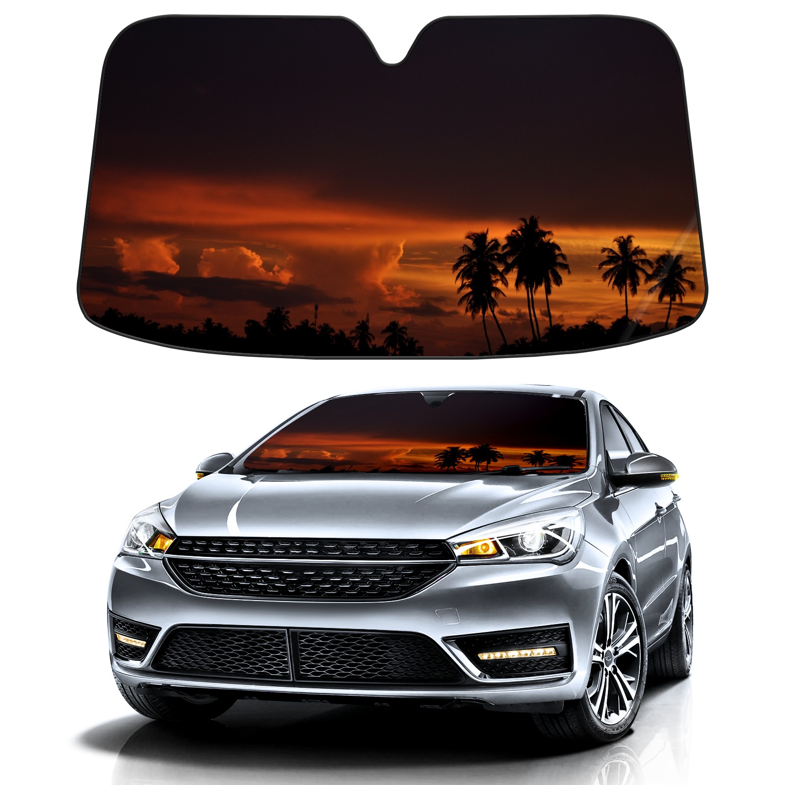 Car Windshield Sun Shade For Front Window Sunset Tree Sky Romantic Summer Tree Nature Cloud Sun Forest Foldable Vehicle Windshield Car Sun Visor Covers Automotive Window Protector Car Camping Privacy Sun Blocker