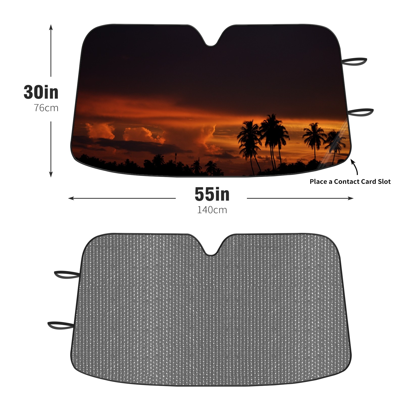 Diameter /Size 63"L x 33.5"W Made from excellent materials which makes it sturdy and protects the car from the sun. Easy to use and pack. Makes the interior of the car cooler.You can easily stash the sunshade in the storage bag or store long term.It open and closes easy. Also the leather storage bag is durable and easy to put the umbrella back into.This windshield sunshade provides complete coverage and keeps your car interior cool under direct sun. It is easy to open and position under the windshield and around the rear-view mirror. Makes Your Car Easy To Identify, Perfect For Finding Your Car In Crowded Parking Lots And Garages.Great Choice: It Is A Great Gift For Dad, Boyfriend, Brother, Brother And Uncle, Friends, Classmates, Family And So On. Notice: Due To Difference Computer Monitors, The Color Maybe Slightly Different From Picture. As Different Measurement Methods, Measurement Data Will Float Within 2%.I Hope You Understand. If You Have Any Question About The Item Please Do Not Hesitate To Contact Us Immediately And We Will Give You A Satisfactory Reply Within 24 Hours.