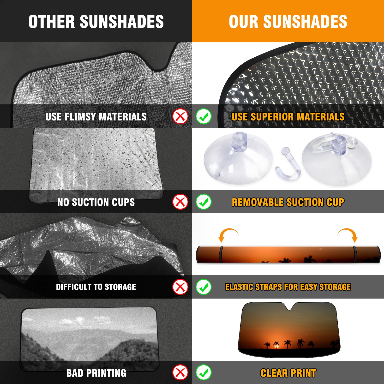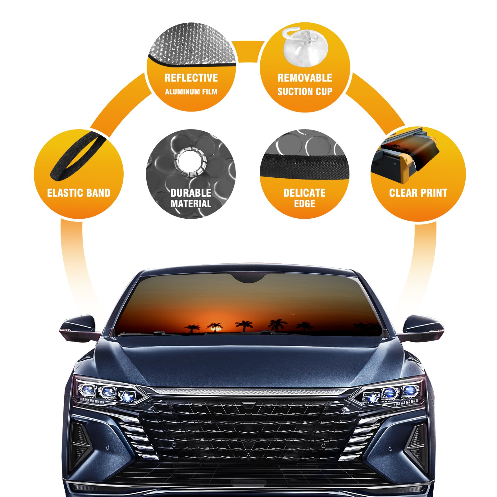 • Diameter /Size 63"L x 33.5"W Made from excellent materials which makes it sturdy and protects the car from the sun. Easy to use and pack. Makes the interior of the car cooler.You can easily stash the sunshade in the storage bag or store long term.It open and closes easy. Also the leather storage bag is durable and easy to put the umbrella back into.This windshield sunshade provides complete coverage and keeps your car interior cool under direct sun. It is easy to open and position under the windshield and around the rear-view mirror. Makes Your Car Easy To Identify, Perfect For Finding Your Car In Crowded Parking Lots And Garages.Great Choice: It Is A Great Gift For Dad, Boyfriend, Brother, Brother And Uncle, Friends, Classmates, Family And So On. Notice: Due To Difference Computer Monitors, The Color Maybe Slightly Different From Picture. As Different Measurement Methods, Measurement Data Will Float Within 2%.I Hope You Understand. If You Have Any Question About The Item Please Do Not Hesitate To Contact Us Immediately And We Will Give You A Satisfactory Reply Within 24 Hours.