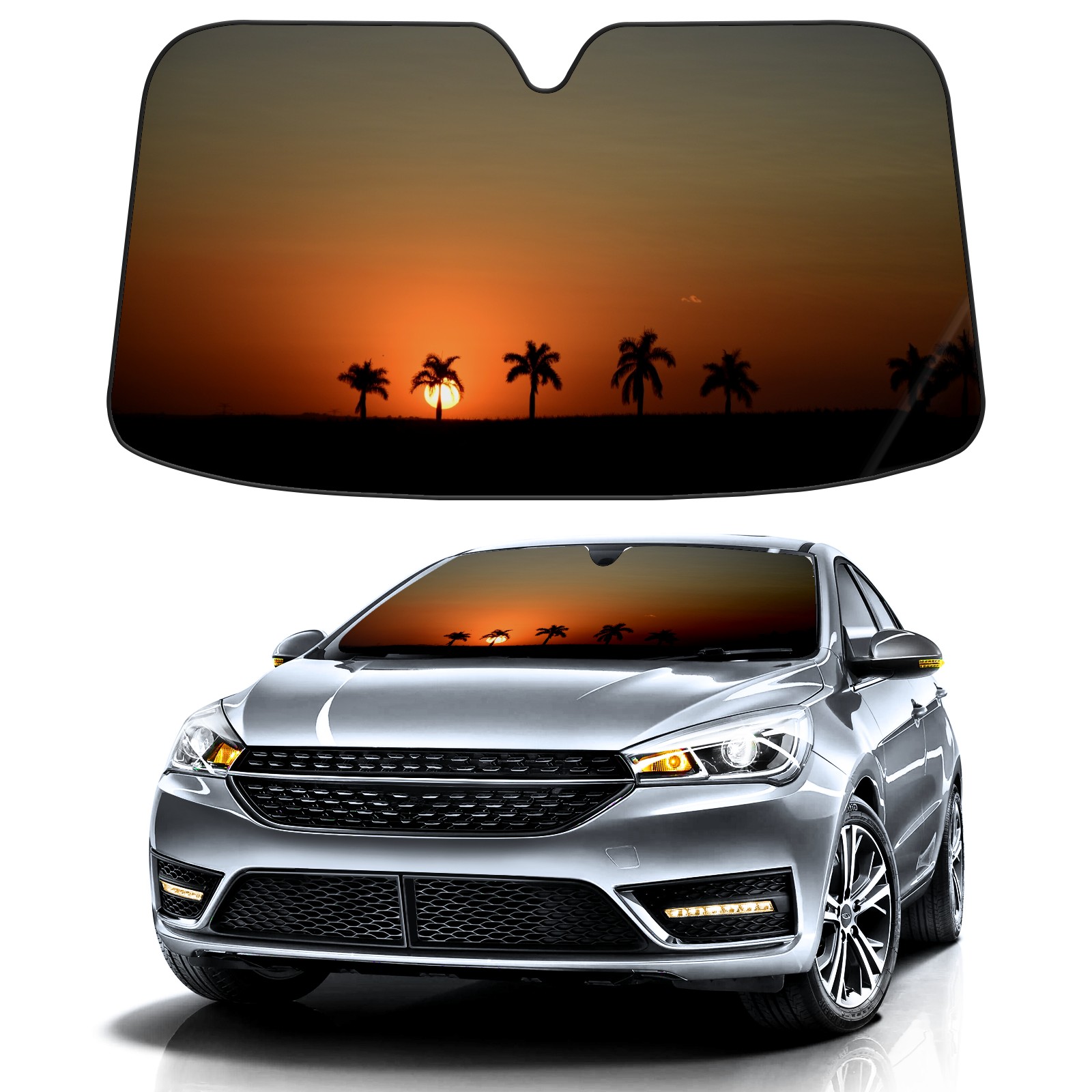 Car Windshield Sun Shade For Front Window Sunset Silhouette Horizon Tree Afternoon Sky Dusk Tree Foldable Vehicle Windshield Car Sun Visor Covers Automotive Window Protector Car Camping Privacy Sun Blocker