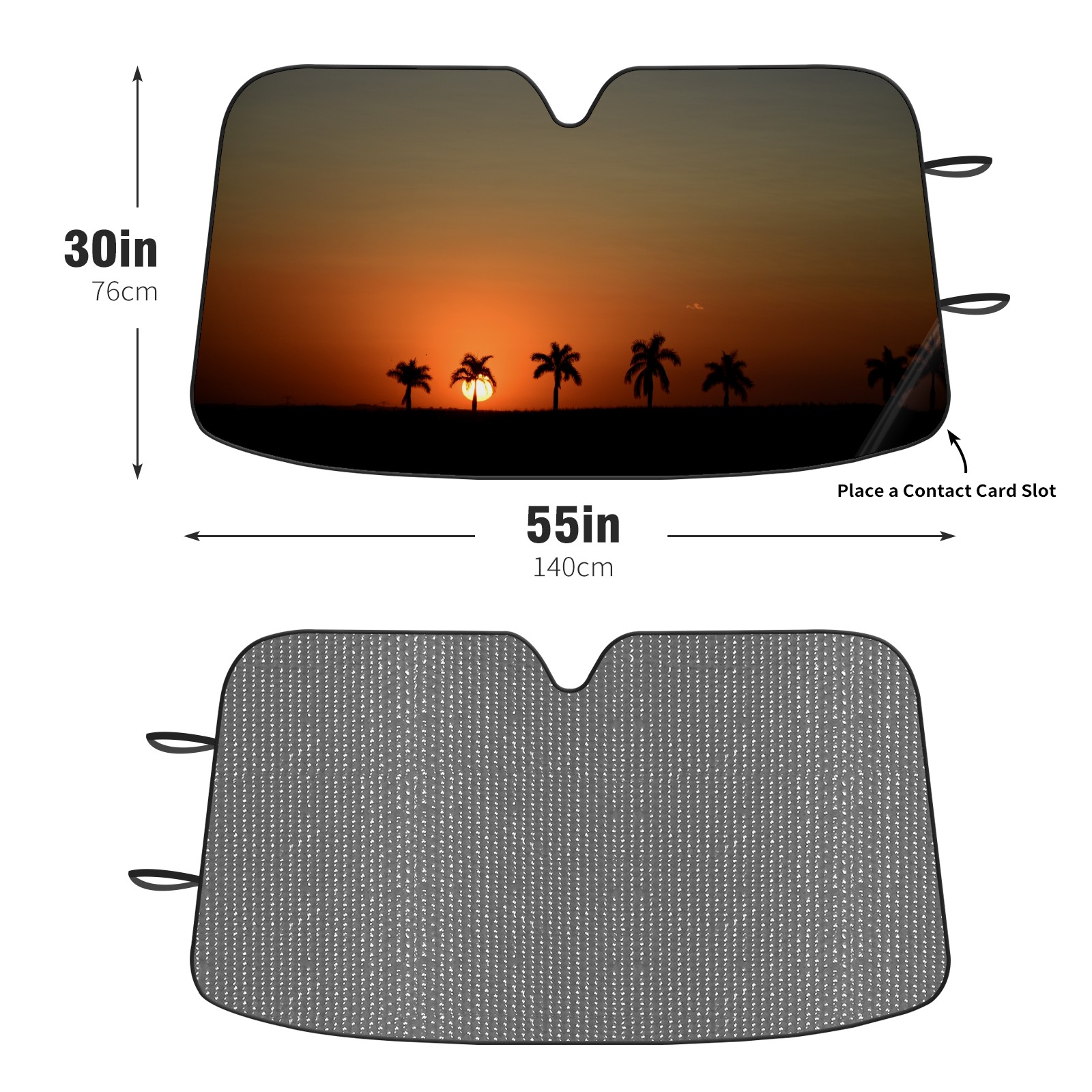 Diameter /Size 63"L x 33.5"W Made from excellent materials which makes it sturdy and protects the car from the sun. Easy to use and pack. Makes the interior of the car cooler.You can easily stash the sunshade in the storage bag or store long term.It open and closes easy. Also the leather storage bag is durable and easy to put the umbrella back into.This windshield sunshade provides complete coverage and keeps your car interior cool under direct sun. It is easy to open and position under the windshield and around the rear-view mirror. Makes Your Car Easy To Identify, Perfect For Finding Your Car In Crowded Parking Lots And Garages.Great Choice: It Is A Great Gift For Dad, Boyfriend, Brother, Brother And Uncle, Friends, Classmates, Family And So On. Notice: Due To Difference Computer Monitors, The Color Maybe Slightly Different From Picture. As Different Measurement Methods, Measurement Data Will Float Within 2%.I Hope You Understand. If You Have Any Question About The Item Please Do Not Hesitate To Contact Us Immediately And We Will Give You A Satisfactory Reply Within 24 Hours.