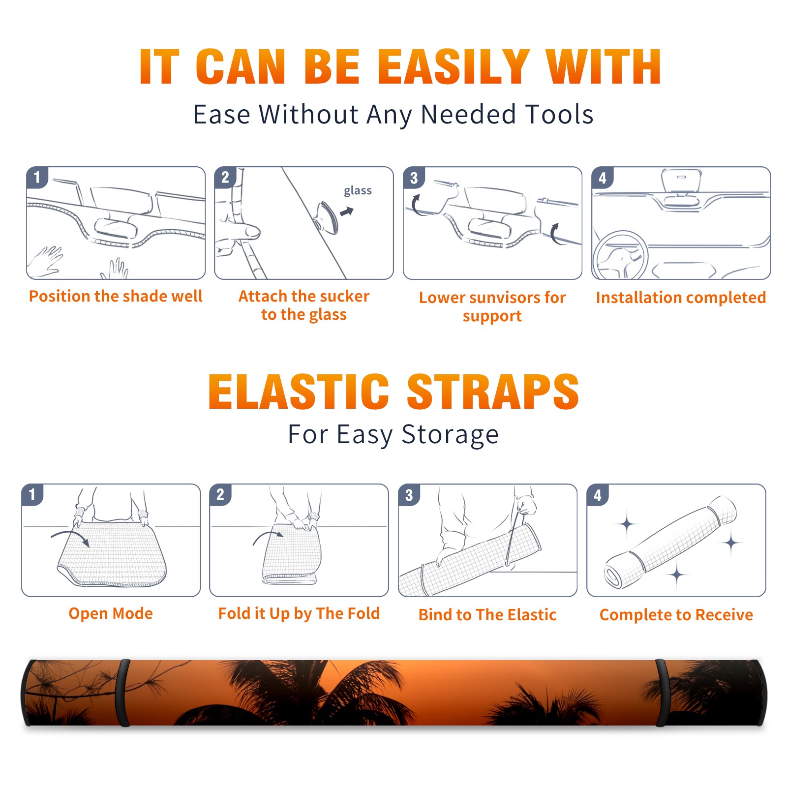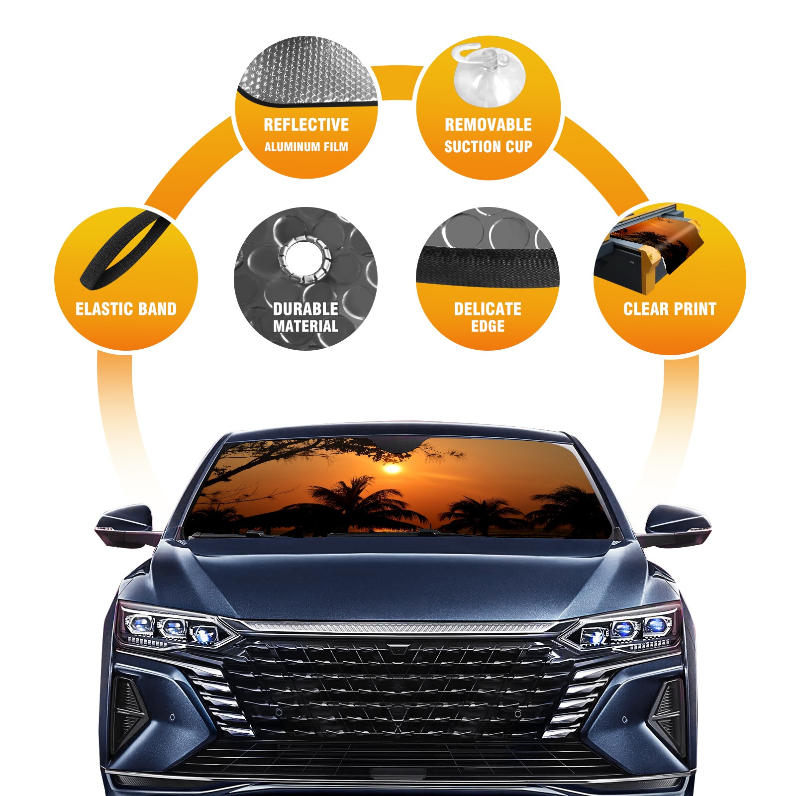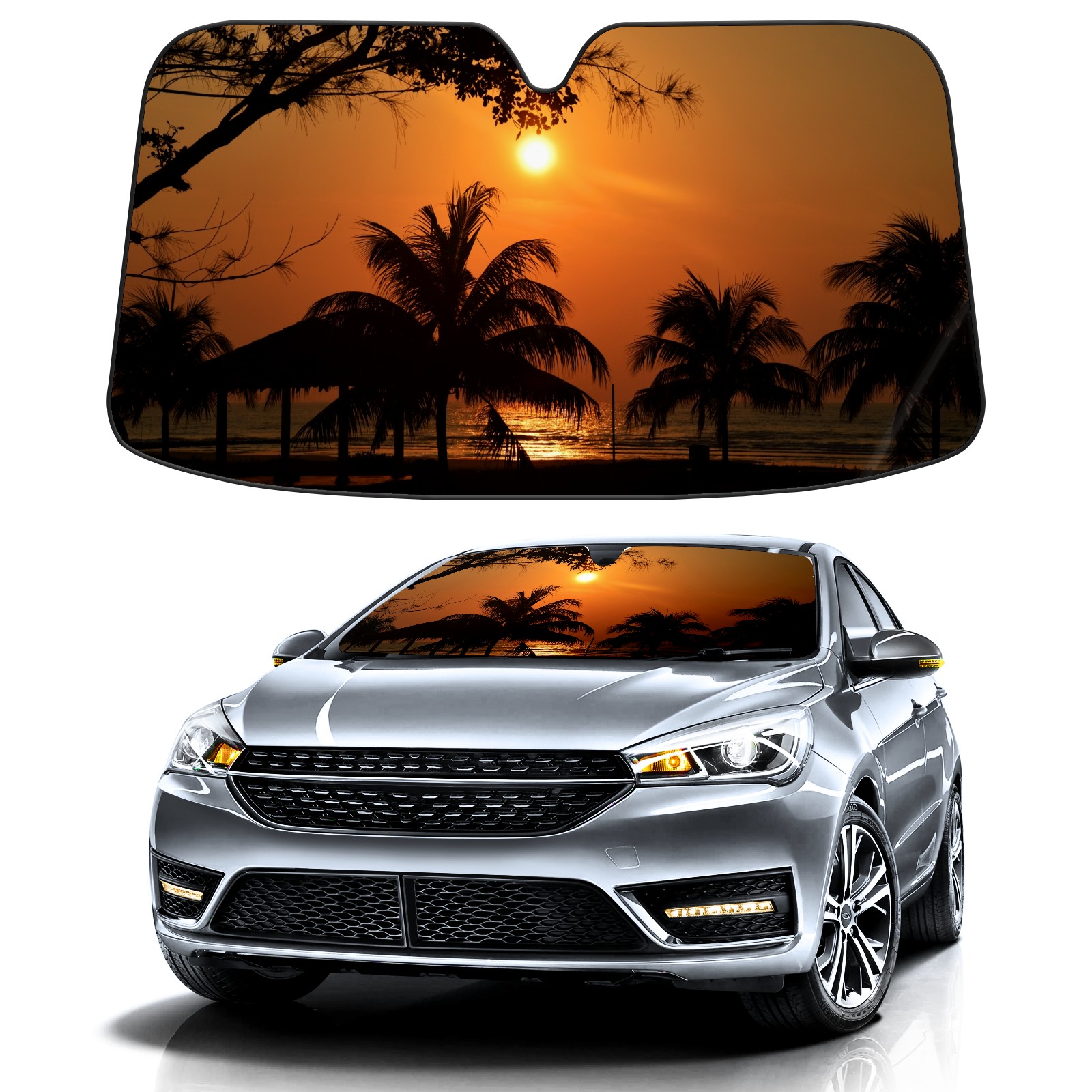Car Windshield Sun Shade For Front Window Sunset Palm Tree Sun Tropical Nature Summer Sky Yellow Foldable Vehicle Windshield Car Sun Visor Covers Automotive Window Protector Car Camping Privacy Sun Blocker