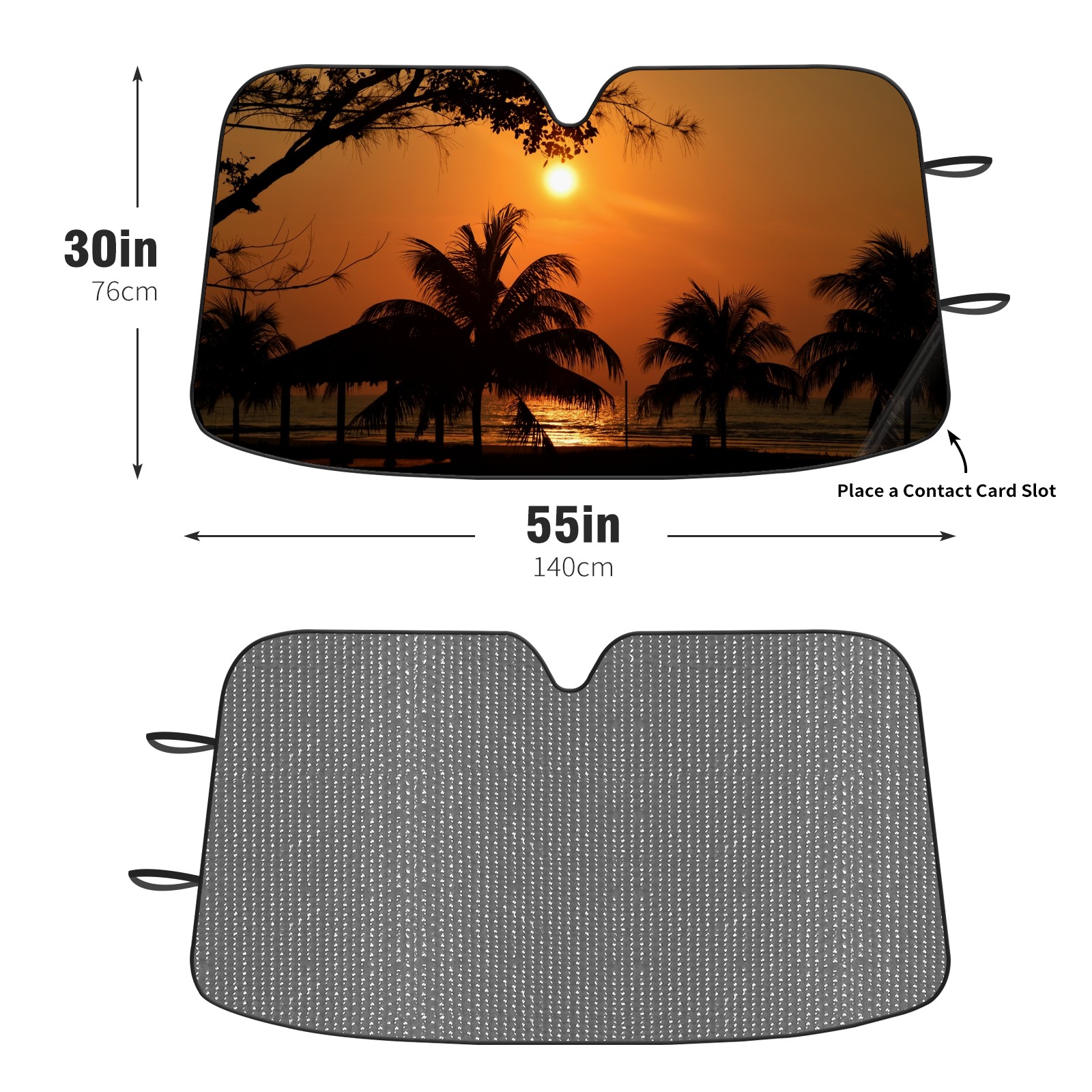 Diameter /Size 63"L x 33.5"W Made from excellent materials which makes it sturdy and protects the car from the sun. Easy to use and pack. Makes the interior of the car cooler.You can easily stash the sunshade in the storage bag or store long term.It open and closes easy. Also the leather storage bag is durable and easy to put the umbrella back into.This windshield sunshade provides complete coverage and keeps your car interior cool under direct sun. It is easy to open and position under the windshield and around the rear-view mirror. Makes Your Car Easy To Identify, Perfect For Finding Your Car In Crowded Parking Lots And Garages.Great Choice: It Is A Great Gift For Dad, Boyfriend, Brother, Brother And Uncle, Friends, Classmates, Family And So On. Notice: Due To Difference Computer Monitors, The Color Maybe Slightly Different From Picture. As Different Measurement Methods, Measurement Data Will Float Within 2%.I Hope You Understand. If You Have Any Question About The Item Please Do Not Hesitate To Contact Us Immediately And We Will Give You A Satisfactory Reply Within 24 Hours.