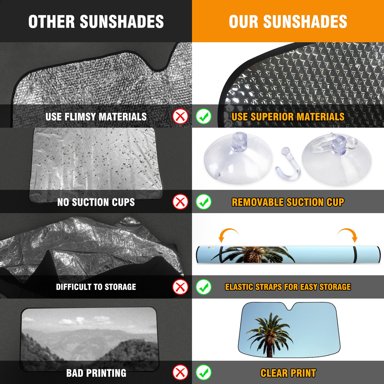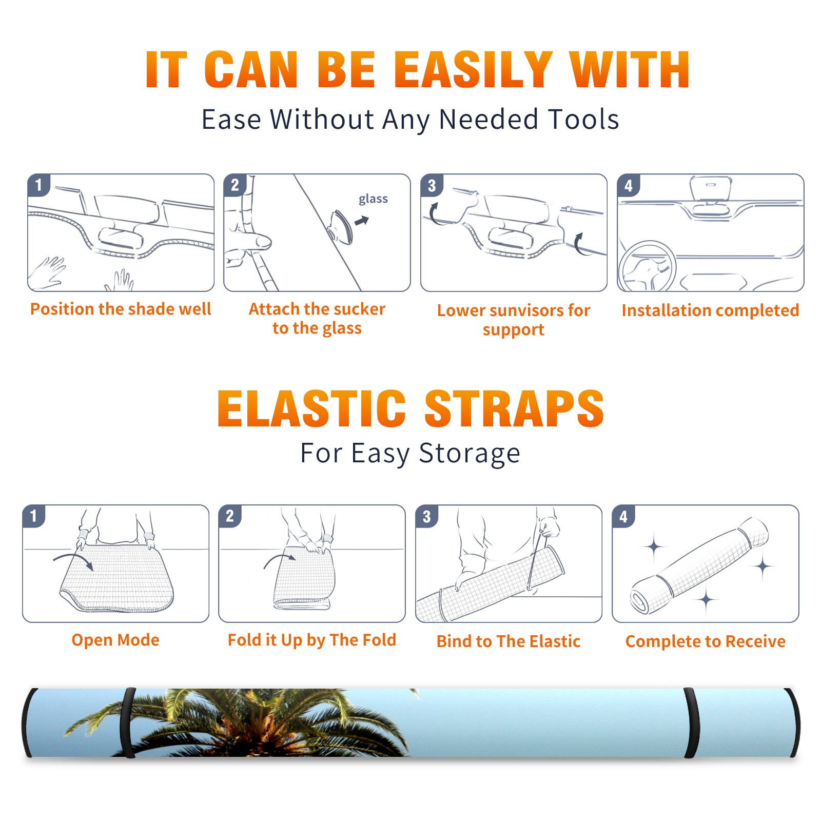 • Diameter /Size 63"L x 33.5"W Made from excellent materials which makes it sturdy and protects the car from the sun. Easy to use and pack. Makes the interior of the car cooler.You can easily stash the sunshade in the storage bag or store long term.It open and closes easy. Also the leather storage bag is durable and easy to put the umbrella back into.This windshield sunshade provides complete coverage and keeps your car interior cool under direct sun. It is easy to open and position under the windshield and around the rear-view mirror. Makes Your Car Easy To Identify, Perfect For Finding Your Car In Crowded Parking Lots And Garages.Great Choice: It Is A Great Gift For Dad, Boyfriend, Brother, Brother And Uncle, Friends, Classmates, Family And So On. Notice: Due To Difference Computer Monitors, The Color Maybe Slightly Different From Picture. As Different Measurement Methods, Measurement Data Will Float Within 2%.I Hope You Understand. If You Have Any Question About The Item Please Do Not Hesitate To Contact Us Immediately And We Will Give You A Satisfactory Reply Within 24 Hours.