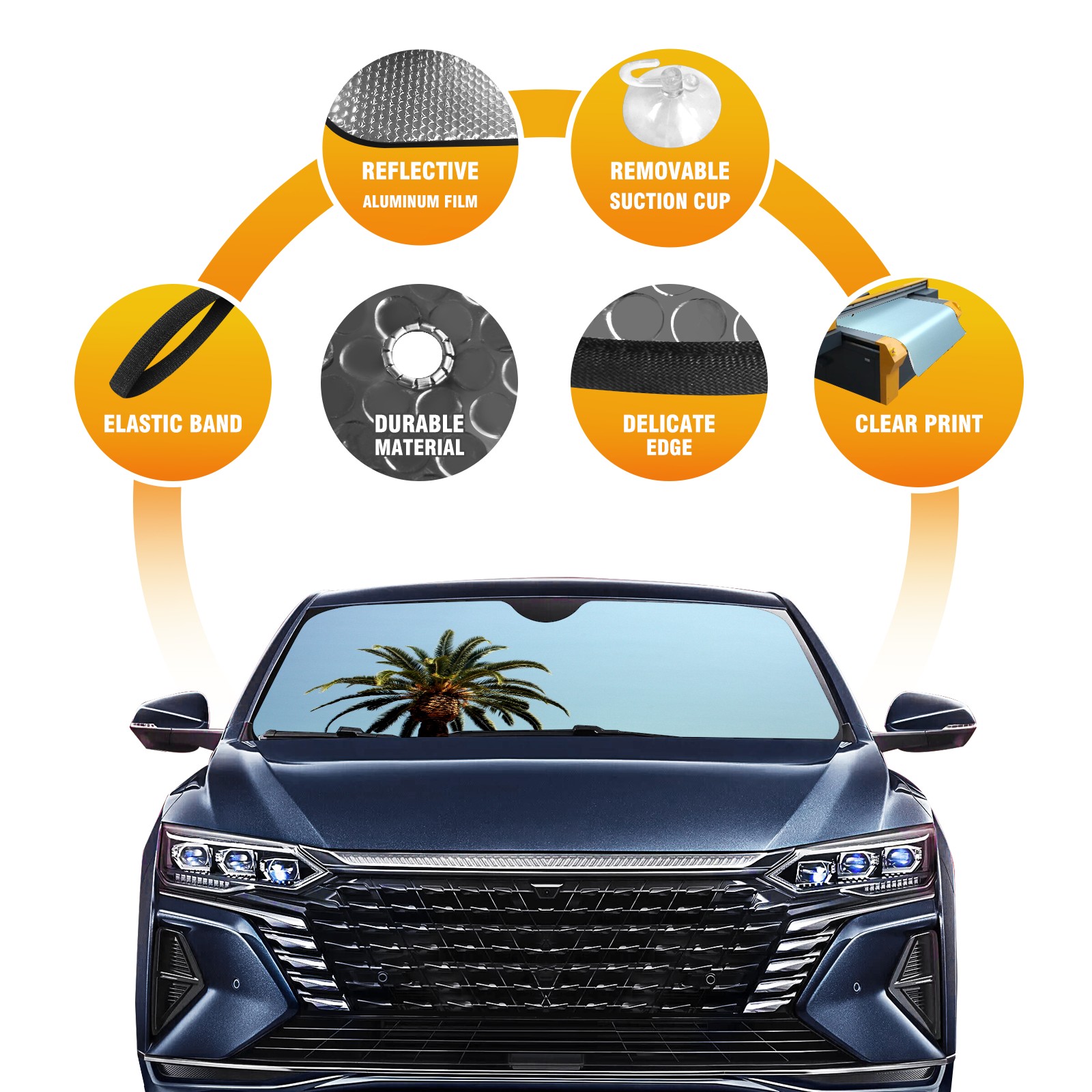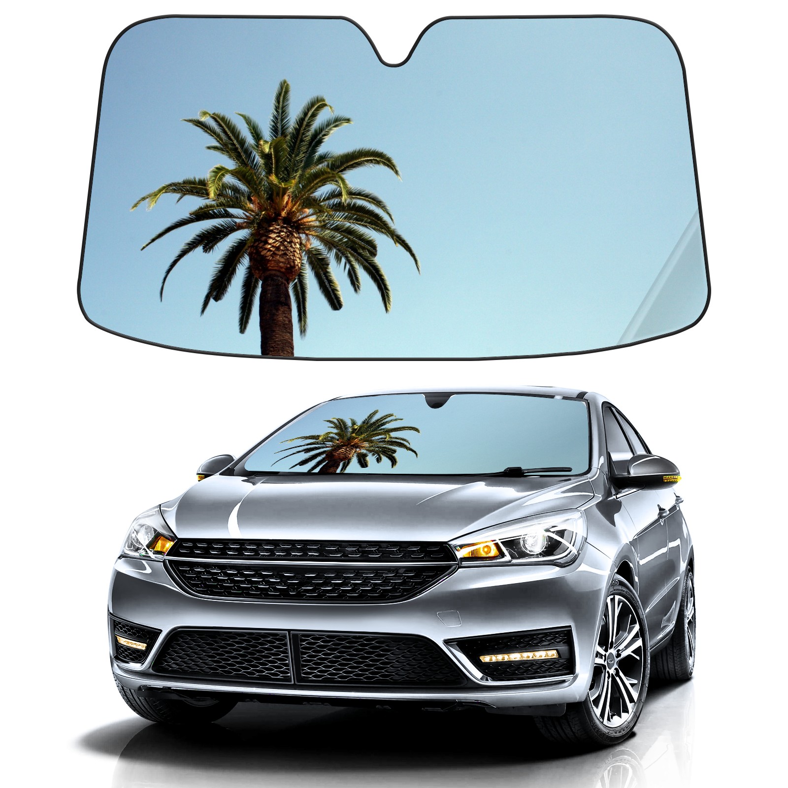 Car Windshield Sun Shade For Front Window Sky Blue Palm Tree Nature Green Plant Vacation Exotic Coconut Foldable Vehicle Windshield Car Sun Visor Covers Automotive Window Protector Car Camping Privacy Sun Blocker