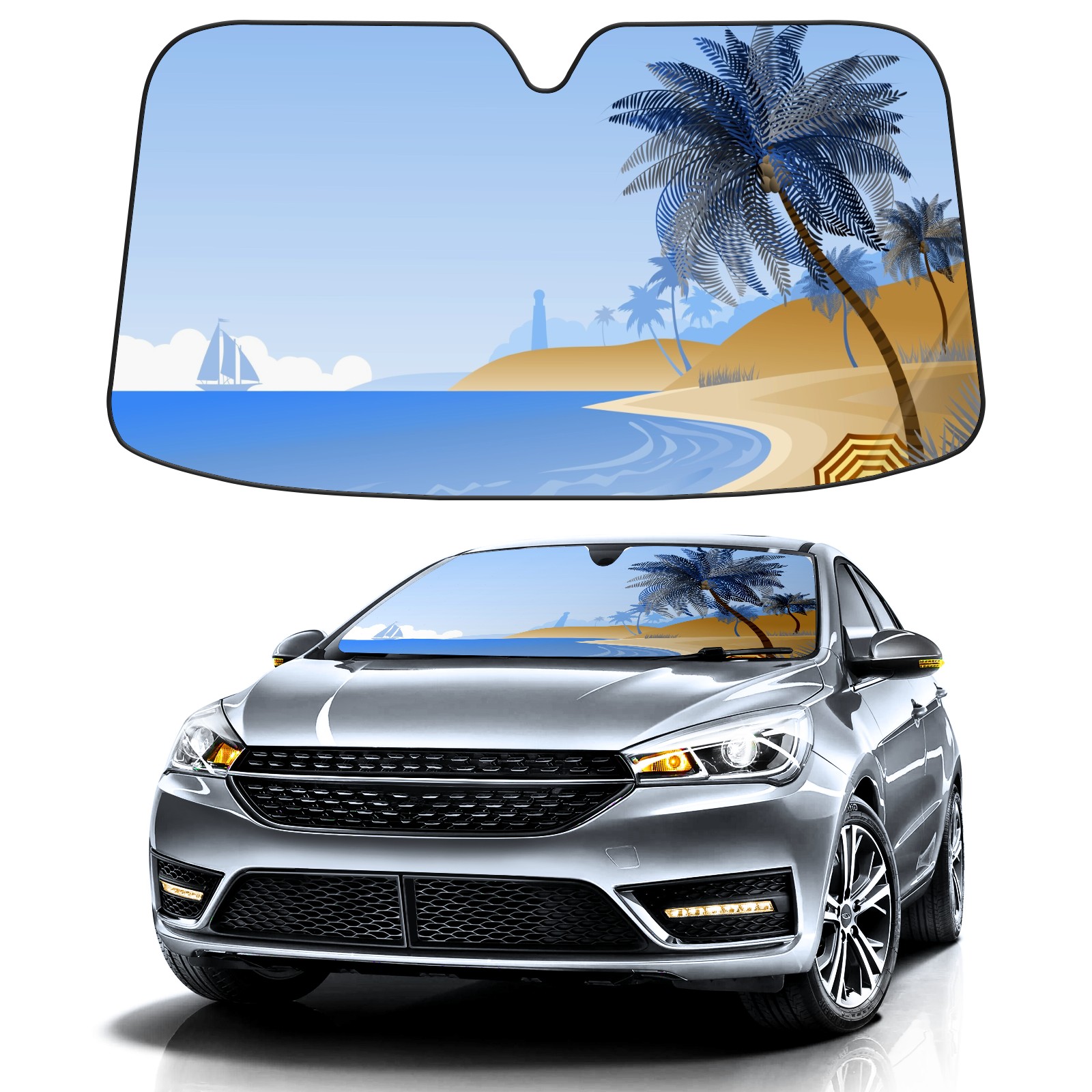Car Windshield Sun Shade For Front Window Palm Tree Trees Tropical Sky Blue Foldable Vehicle Windshield Car Sun Visor Covers Automotive Window Protector Car Camping Privacy Sun Blocker