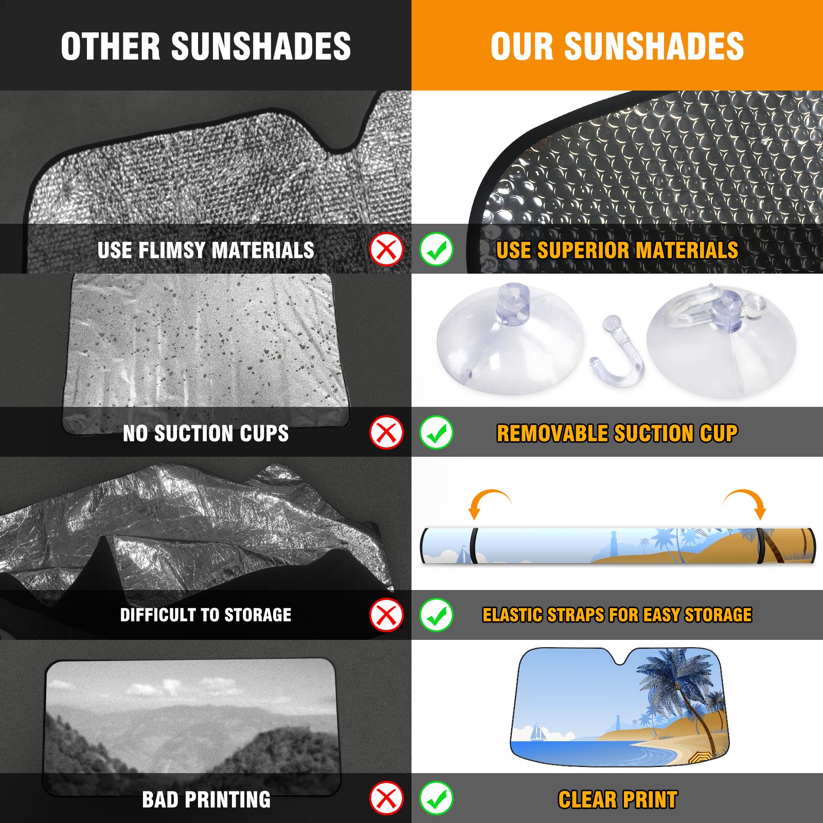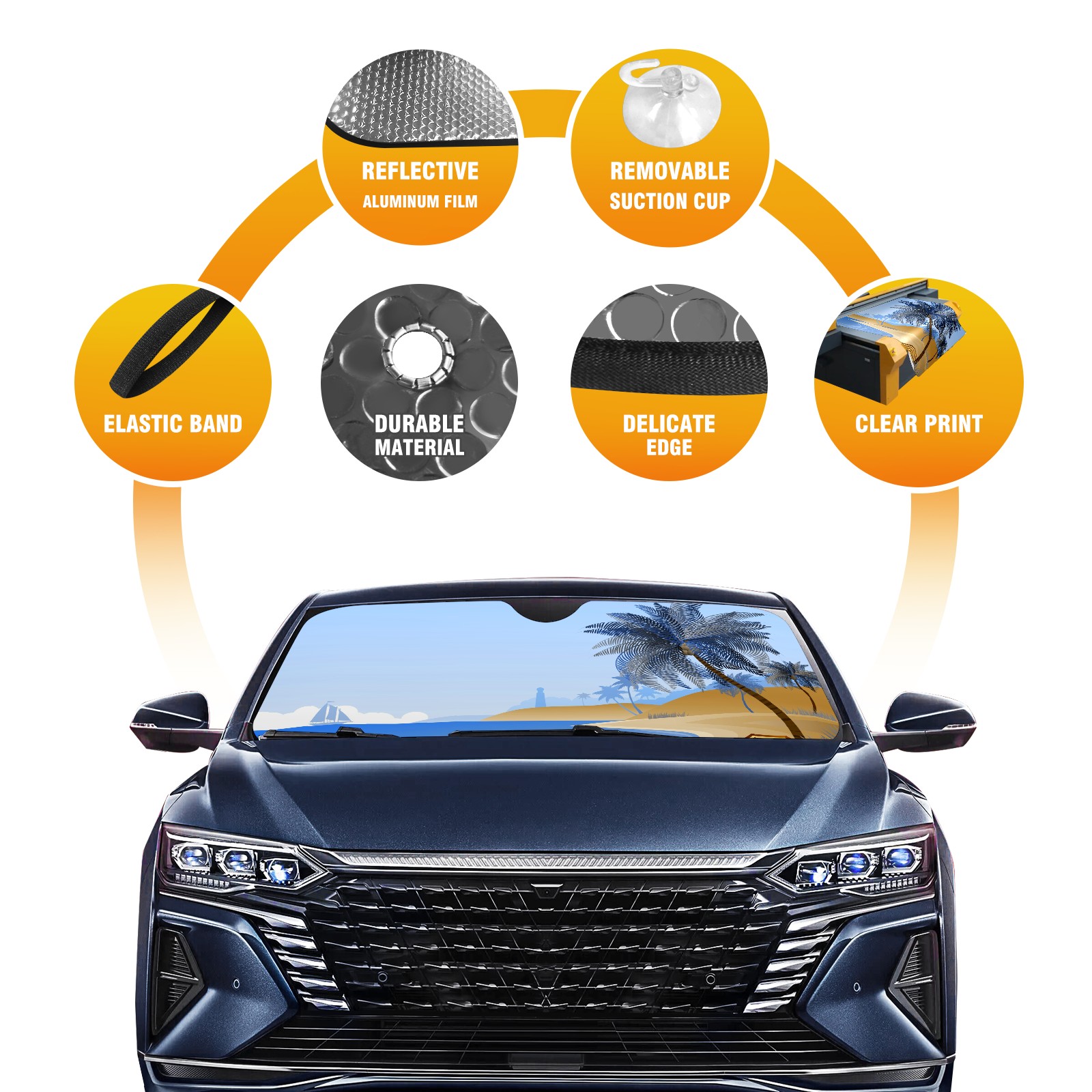 • Diameter /Size 63"L x 33.5"W Made from excellent materials which makes it sturdy and protects the car from the sun. Easy to use and pack. Makes the interior of the car cooler.You can easily stash the sunshade in the storage bag or store long term.It open and closes easy. Also the leather storage bag is durable and easy to put the umbrella back into.This windshield sunshade provides complete coverage and keeps your car interior cool under direct sun. It is easy to open and position under the windshield and around the rear-view mirror. Makes Your Car Easy To Identify, Perfect For Finding Your Car In Crowded Parking Lots And Garages.Great Choice: It Is A Great Gift For Dad, Boyfriend, Brother, Brother And Uncle, Friends, Classmates, Family And So On. Notice: Due To Difference Computer Monitors, The Color Maybe Slightly Different From Picture. As Different Measurement Methods, Measurement Data Will Float Within 2%.I Hope You Understand. If You Have Any Question About The Item Please Do Not Hesitate To Contact Us Immediately And We Will Give You A Satisfactory Reply Within 24 Hours.