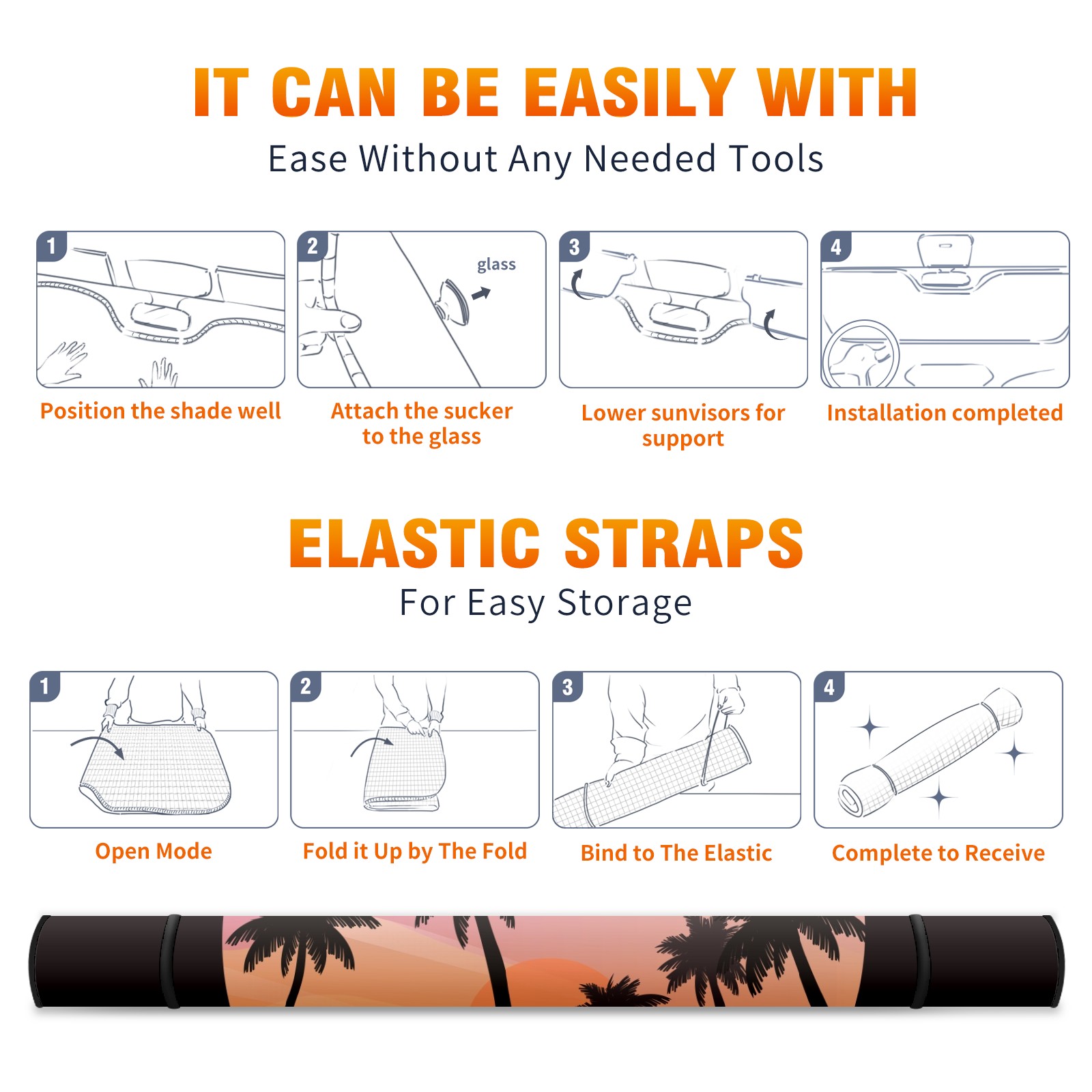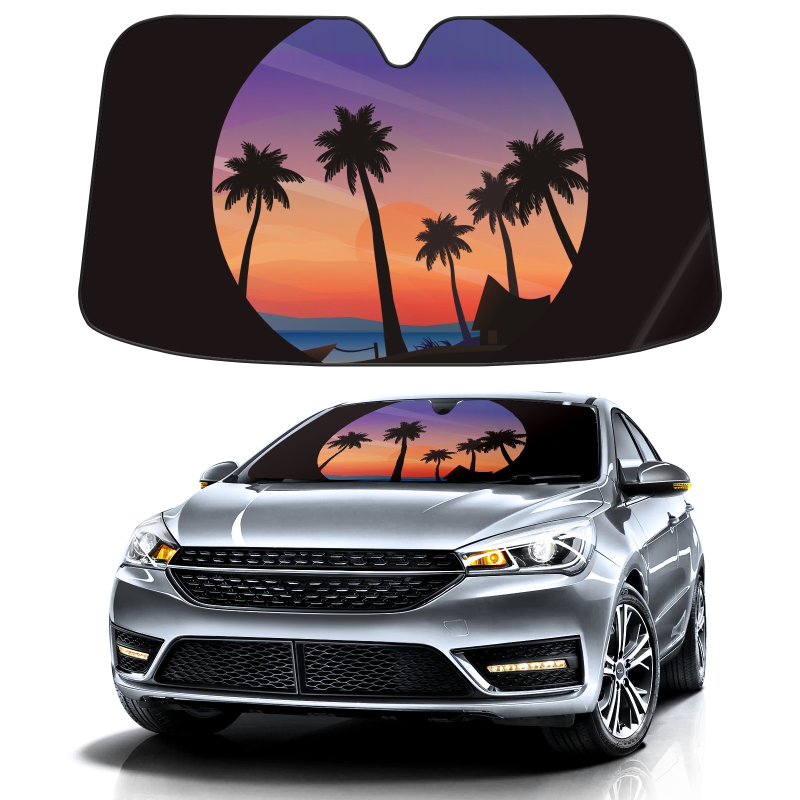 Car Windshield Sun Shade For Front Window Nature Sunset Sky Moon Summer Tropical Blue Foldable Vehicle Windshield Car Sun Visor Covers Automotive Window Protector Car Camping Privacy Sun Blocker