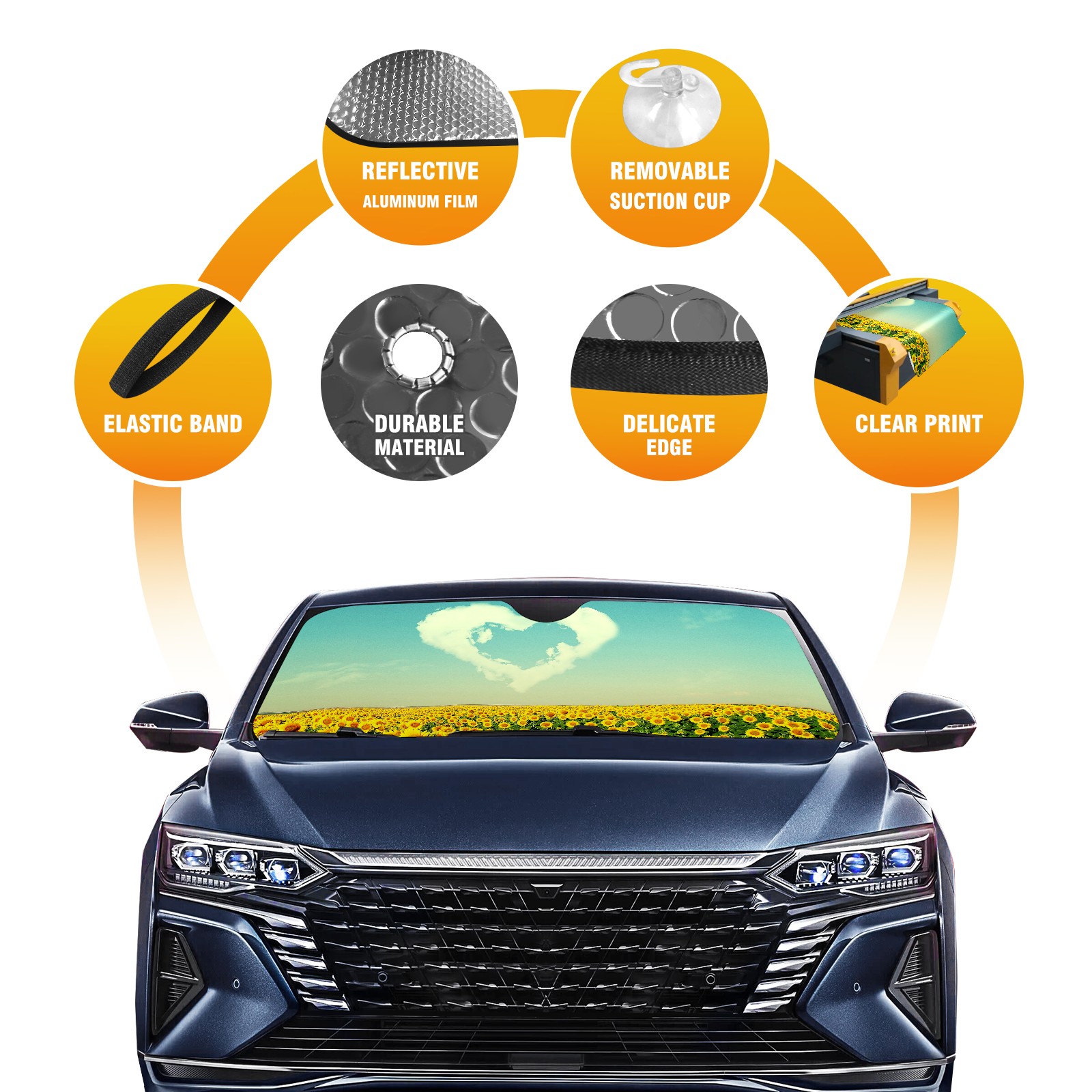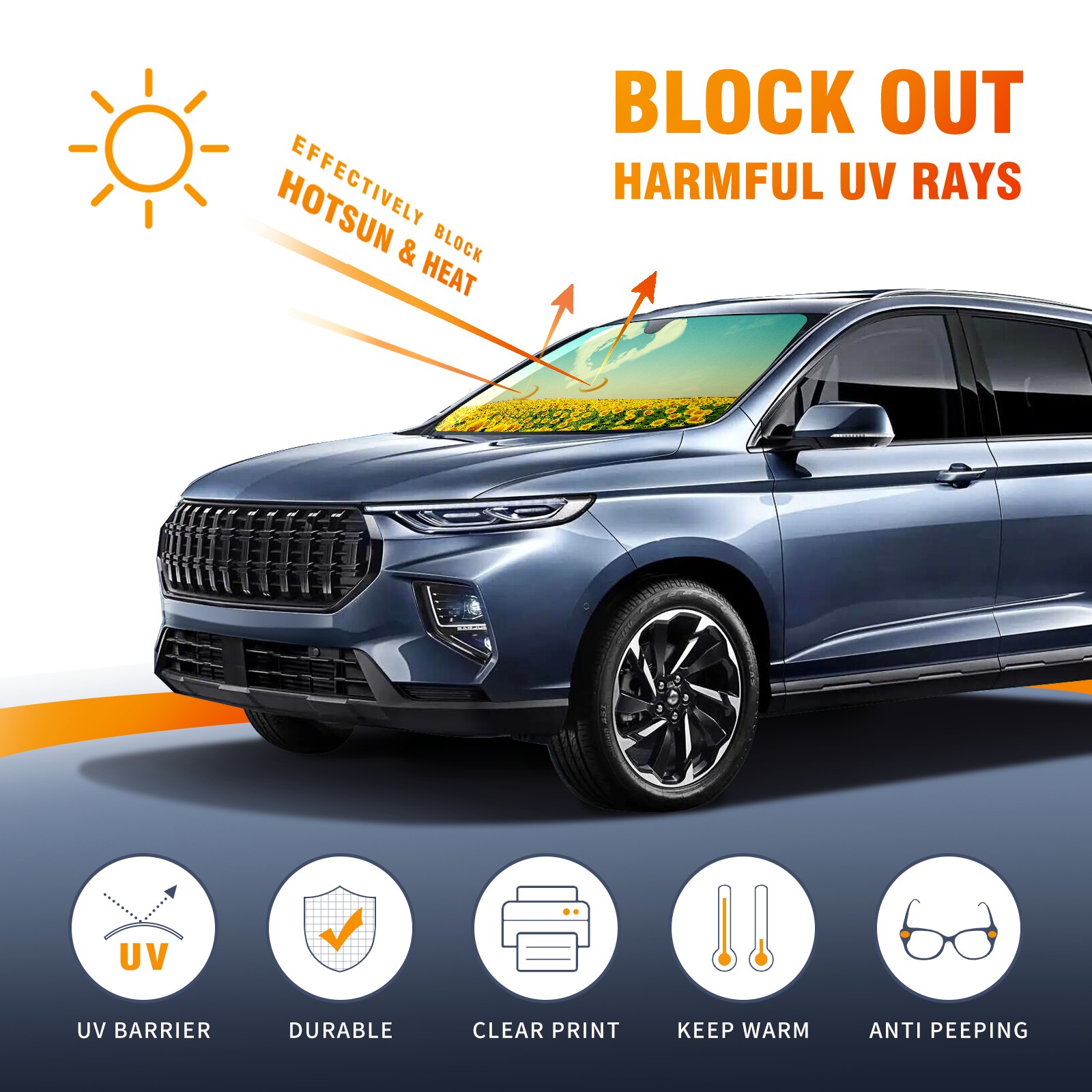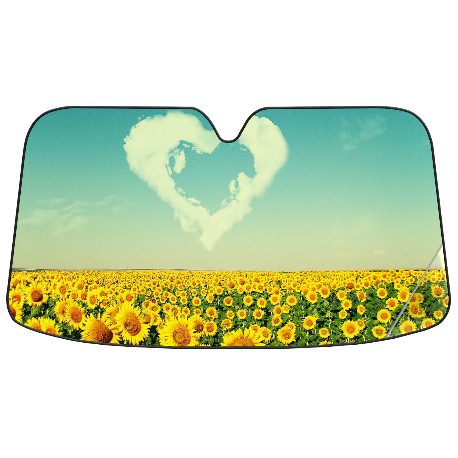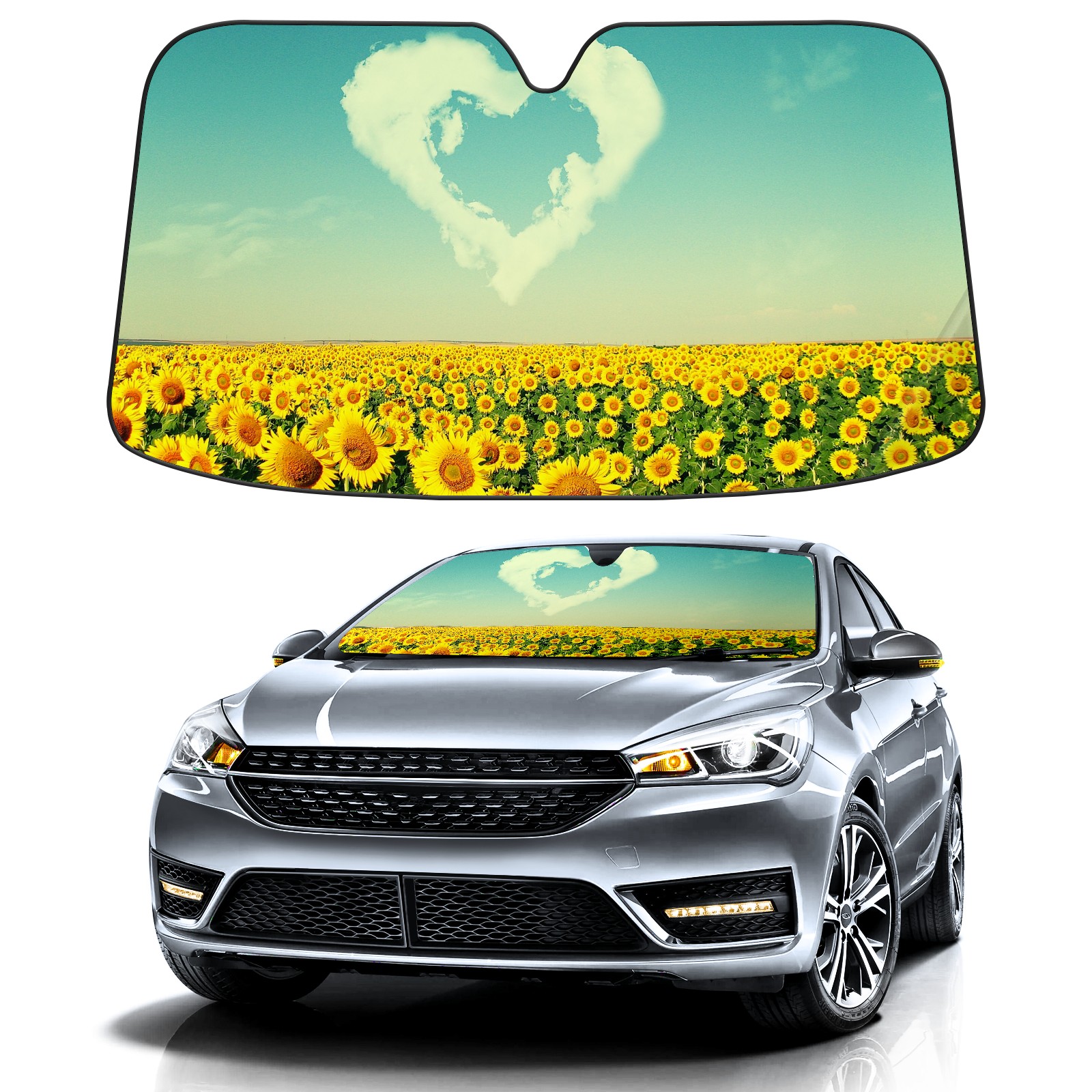 Car Windshield Sun Shade For Front Window Sunflowers Blue Sky Foldable Vehicle Windshield Car Sun Visor Covers Automotive Window Protector Car Camping Privacy Sun Blocker