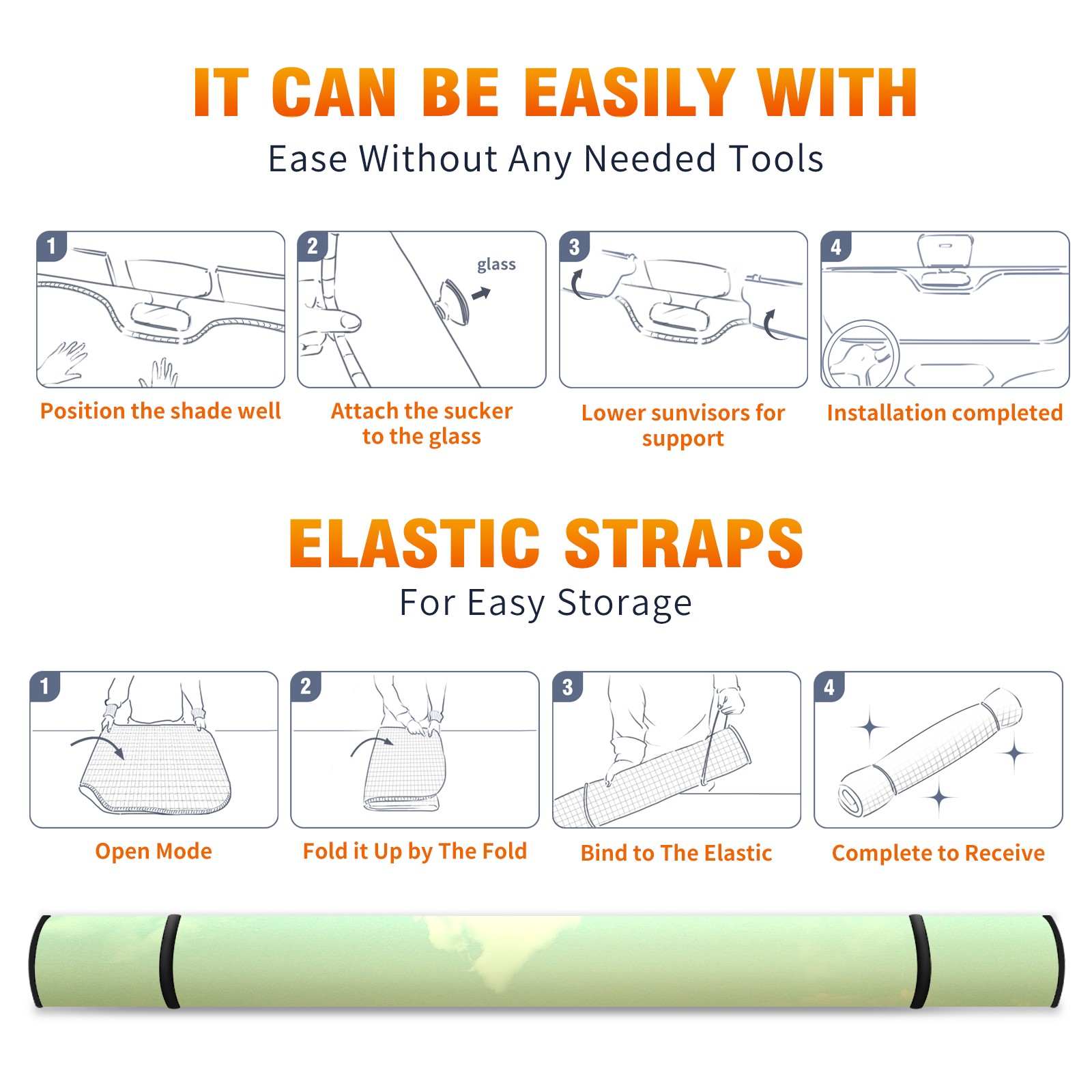 • Diameter /Size 63"L x 33.5"W Made from excellent materials which makes it sturdy and protects the car from the sun. Easy to use and pack. Makes the interior of the car cooler.You can easily stash the sunshade in the storage bag or store long term.It open and closes easy. Also the leather storage bag is durable and easy to put the umbrella back into.This windshield sunshade provides complete coverage and keeps your car interior cool under direct sun. It is easy to open and position under the windshield and around the rear-view mirror. Makes Your Car Easy To Identify, Perfect For Finding Your Car In Crowded Parking Lots And Garages.Great Choice: It Is A Great Gift For Dad, Boyfriend, Brother, Brother And Uncle, Friends, Classmates, Family And So On. Notice: Due To Difference Computer Monitors, The Color Maybe Slightly Different From Picture. As Different Measurement Methods, Measurement Data Will Float Within 2%.I Hope You Understand. If You Have Any Question About The Item Please Do Not Hesitate To Contact Us Immediately And We Will Give You A Satisfactory Reply Within 24 Hours.