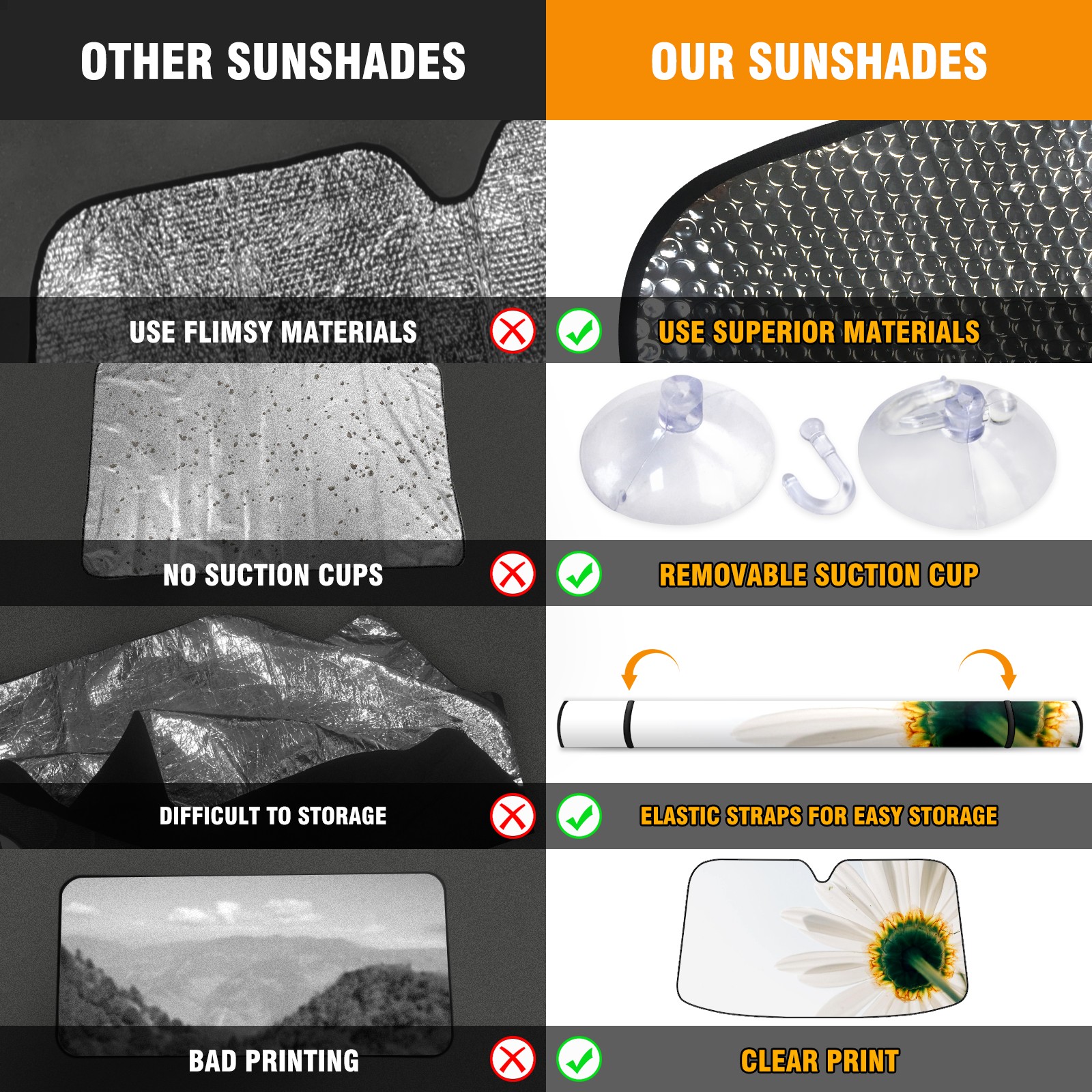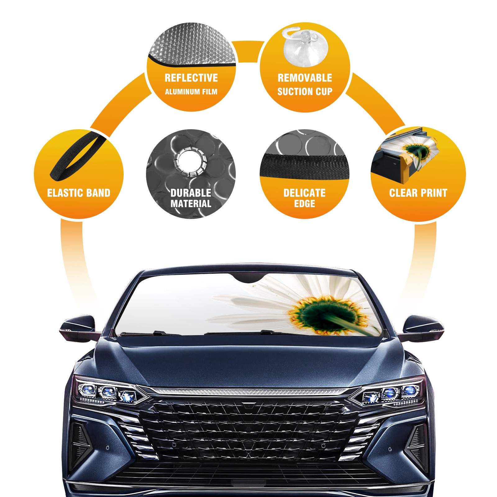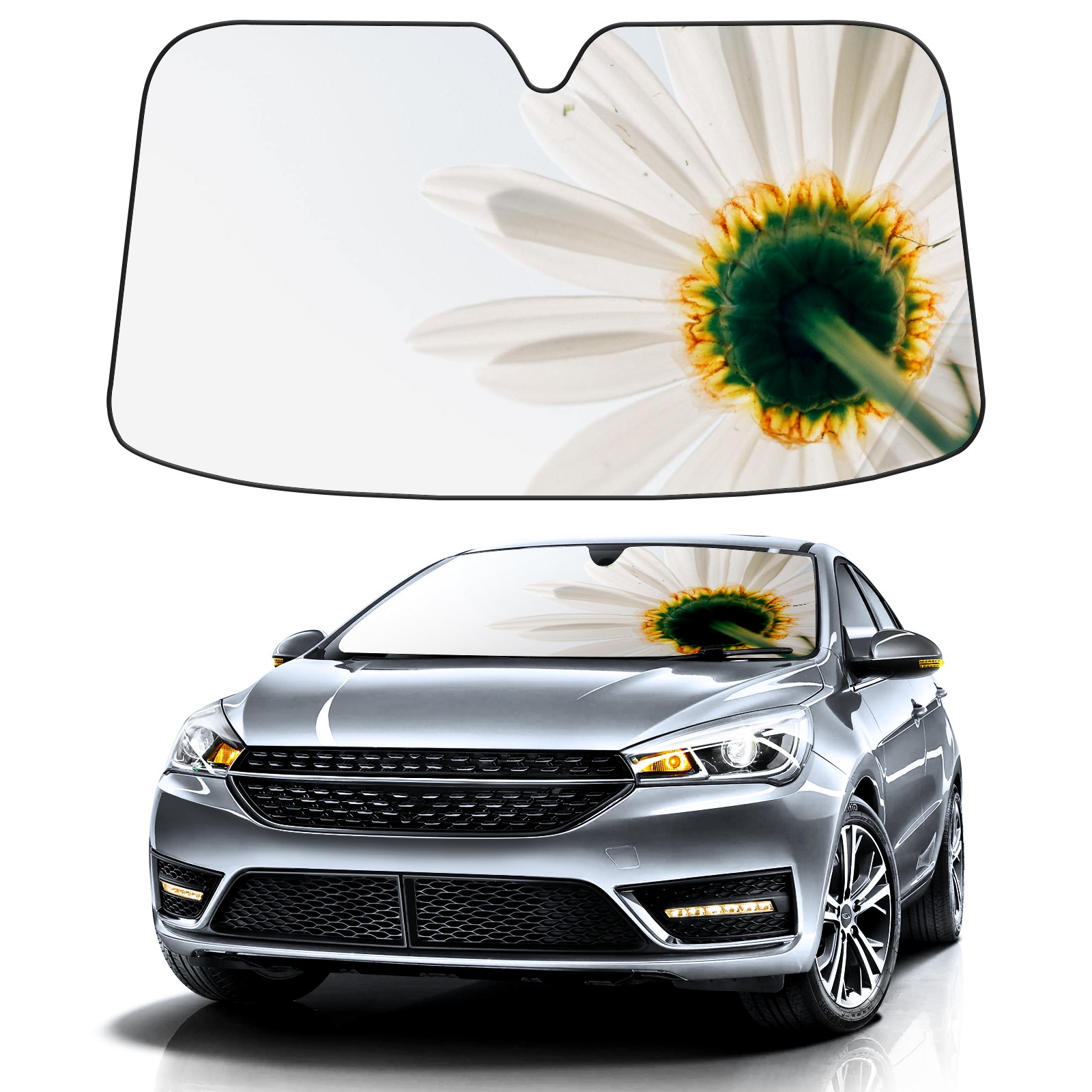 Car Windshield Sun Shade For Front Window Blue Sky White Daisy Foldable Vehicle Windshield Car Sun Visor Covers Automotive Window Protector Car Camping Privacy Sun Blocker