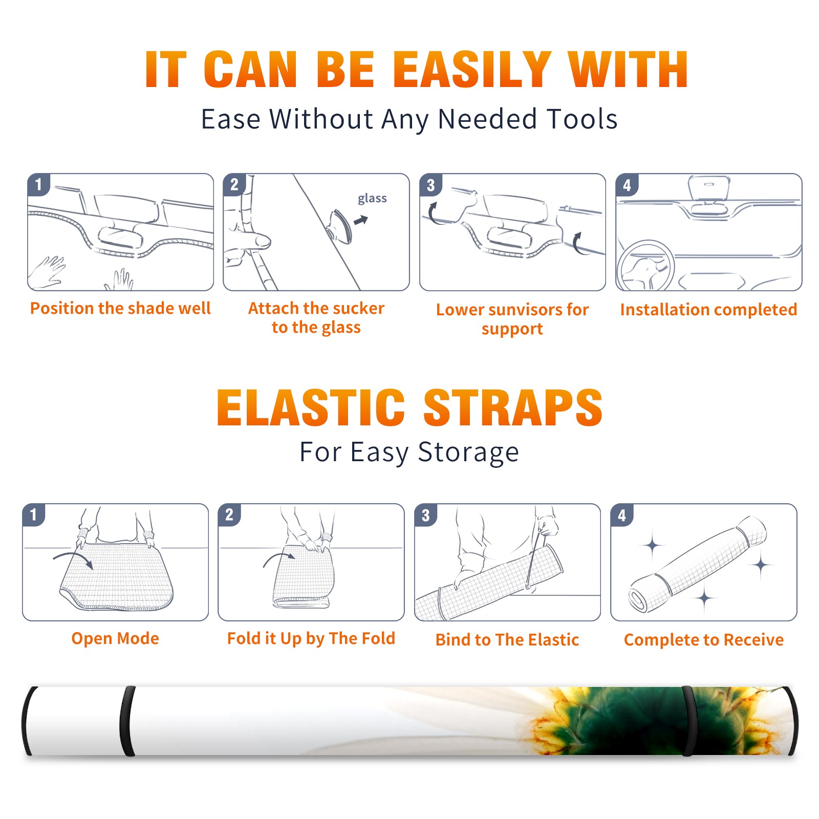 • Diameter /Size 63"L x 33.5"W Made from excellent materials which makes it sturdy and protects the car from the sun. Easy to use and pack. Makes the interior of the car cooler.You can easily stash the sunshade in the storage bag or store long term.It open and closes easy. Also the leather storage bag is durable and easy to put the umbrella back into.This windshield sunshade provides complete coverage and keeps your car interior cool under direct sun. It is easy to open and position under the windshield and around the rear-view mirror. Makes Your Car Easy To Identify, Perfect For Finding Your Car In Crowded Parking Lots And Garages.Great Choice: It Is A Great Gift For Dad, Boyfriend, Brother, Brother And Uncle, Friends, Classmates, Family And So On. Notice: Due To Difference Computer Monitors, The Color Maybe Slightly Different From Picture. As Different Measurement Methods, Measurement Data Will Float Within 2%.I Hope You Understand. If You Have Any Question About The Item Please Do Not Hesitate To Contact Us Immediately And We Will Give You A Satisfactory Reply Within 24 Hours.