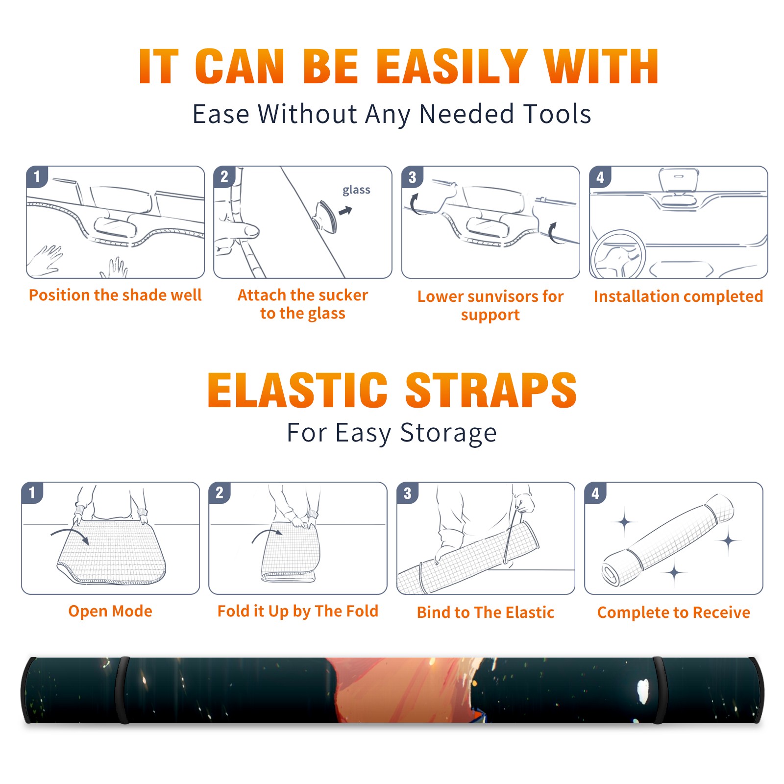 • Diameter /Size 63"L x 33.5"W Made from excellent materials which makes it sturdy and protects the car from the sun. Easy to use and pack. Makes the interior of the car cooler.You can easily stash the sunshade in the storage bag or store long term.It open and closes easy. Also the leather storage bag is durable and easy to put the umbrella back into.This windshield sunshade provides complete coverage and keeps your car interior cool under direct sun. It is easy to open and position under the windshield and around the rear-view mirror. Makes Your Car Easy To Identify, Perfect For Finding Your Car In Crowded Parking Lots And Garages.Great Choice: It Is A Great Gift For Dad, Boyfriend, Brother, Brother And Uncle, Friends, Classmates, Family And So On. Notice: Due To Difference Computer Monitors, The Color Maybe Slightly Different From Picture. As Different Measurement Methods, Measurement Data Will Float Within 2%.I Hope You Understand. If You Have Any Question About The Item Please Do Not Hesitate To Contact Us Immediately And We Will Give You A Satisfactory Reply Within 24 Hours.