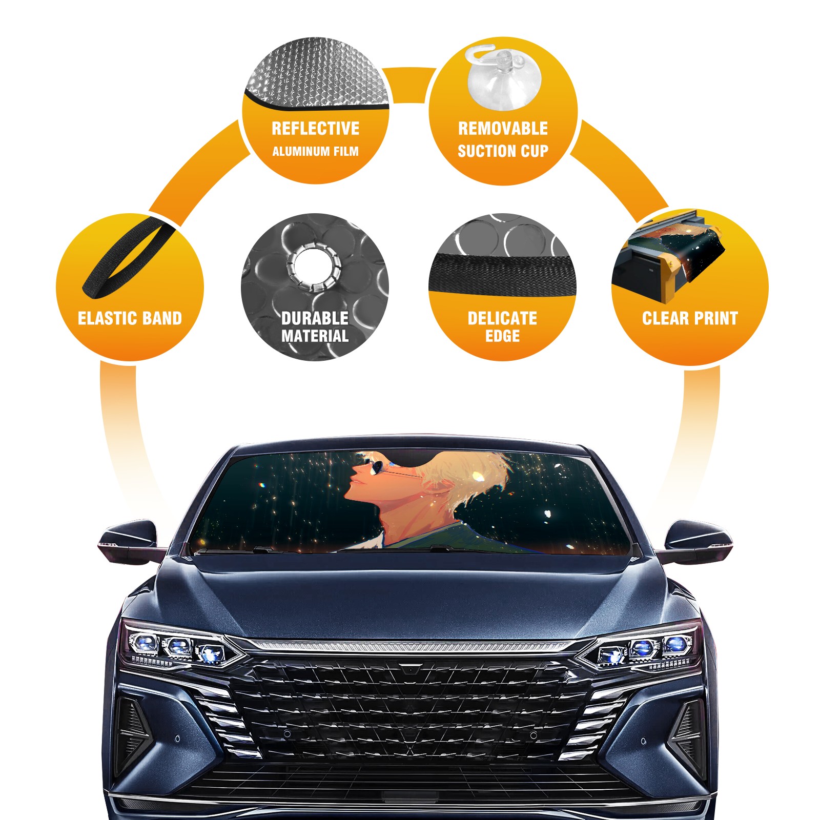 Car Windshield Sun Shade For Front Window Sa-toru-Gojo Watching Sky Foldable Vehicle Windshield Car Sun Visor Covers Automotive Window Protector Car Camping Privacy Sun Blocker