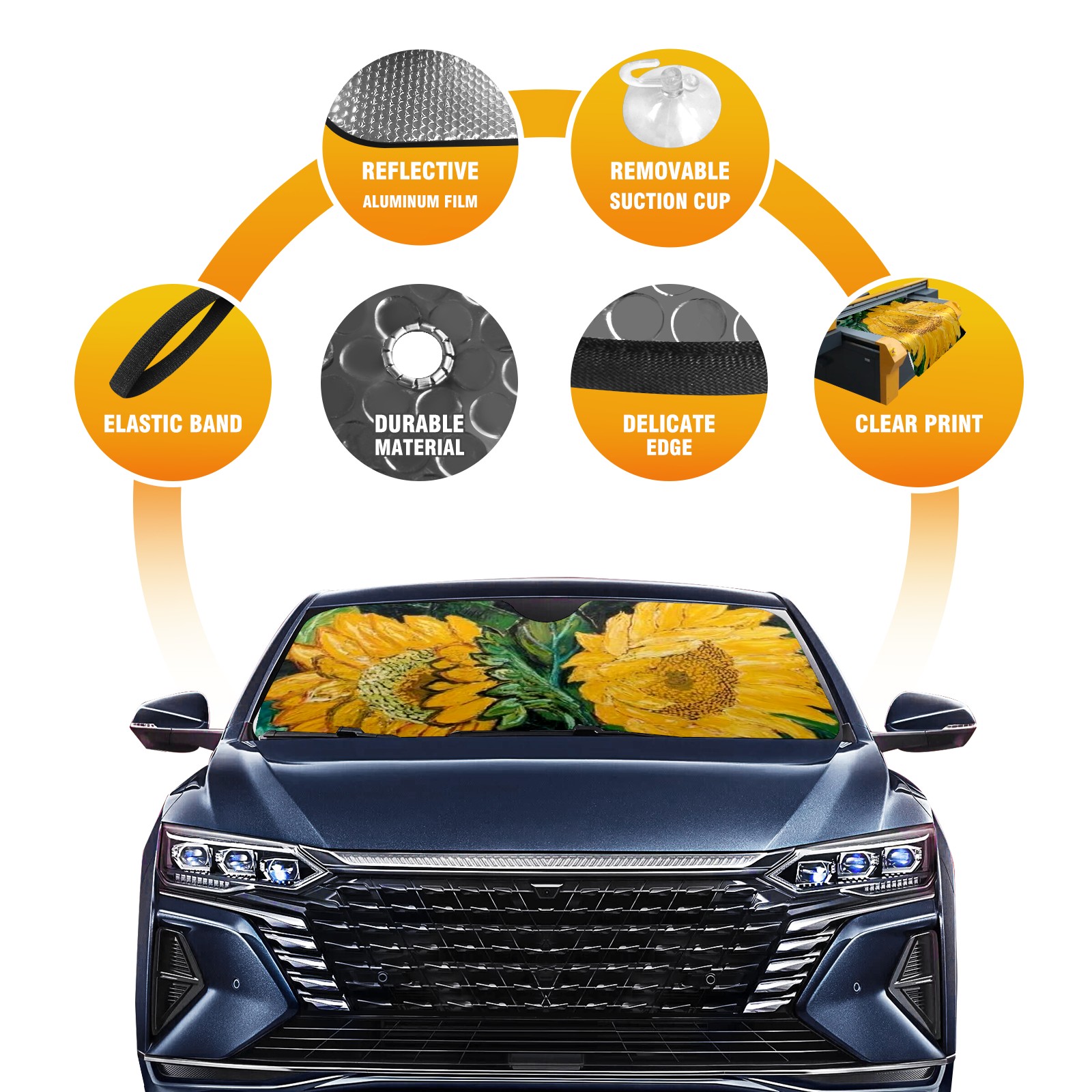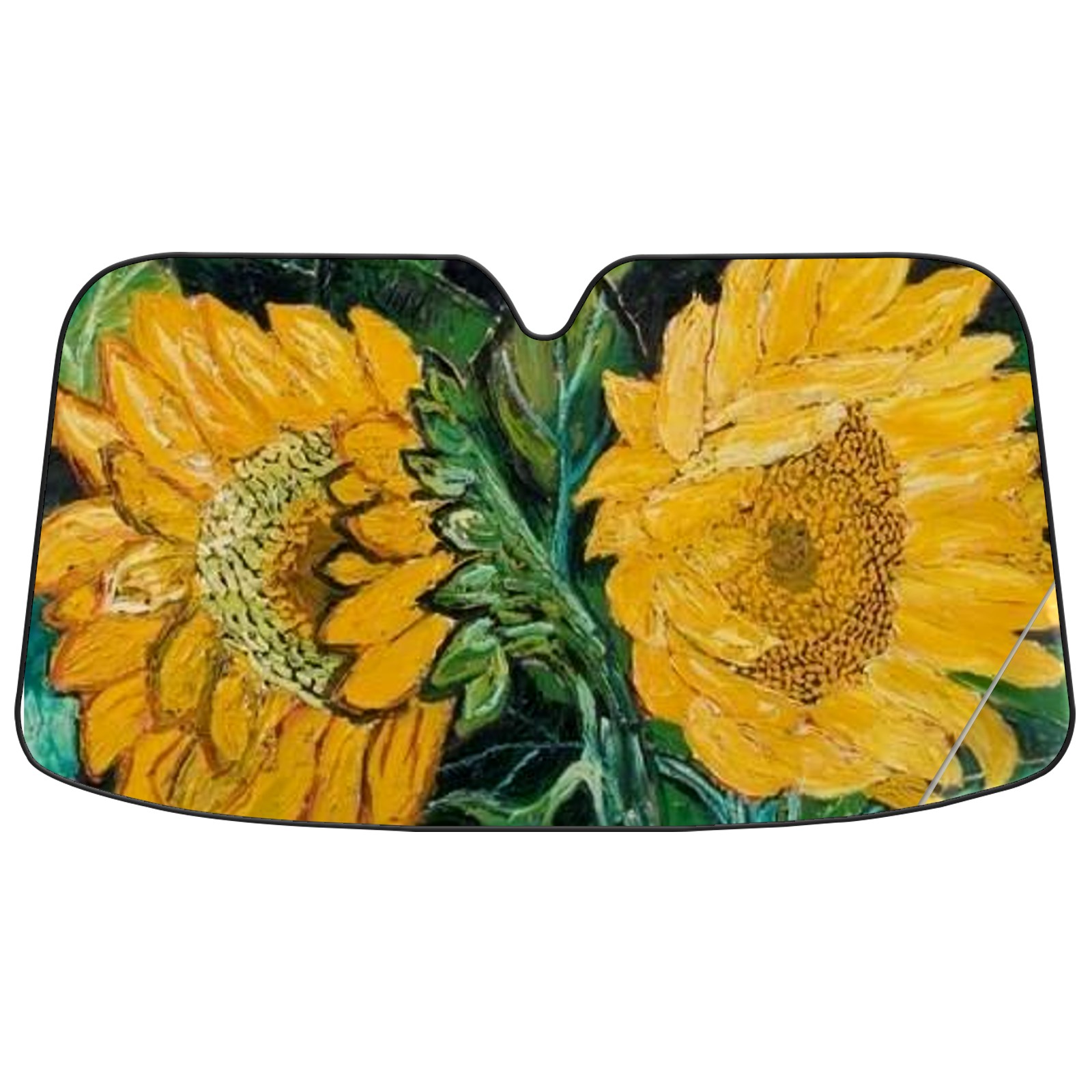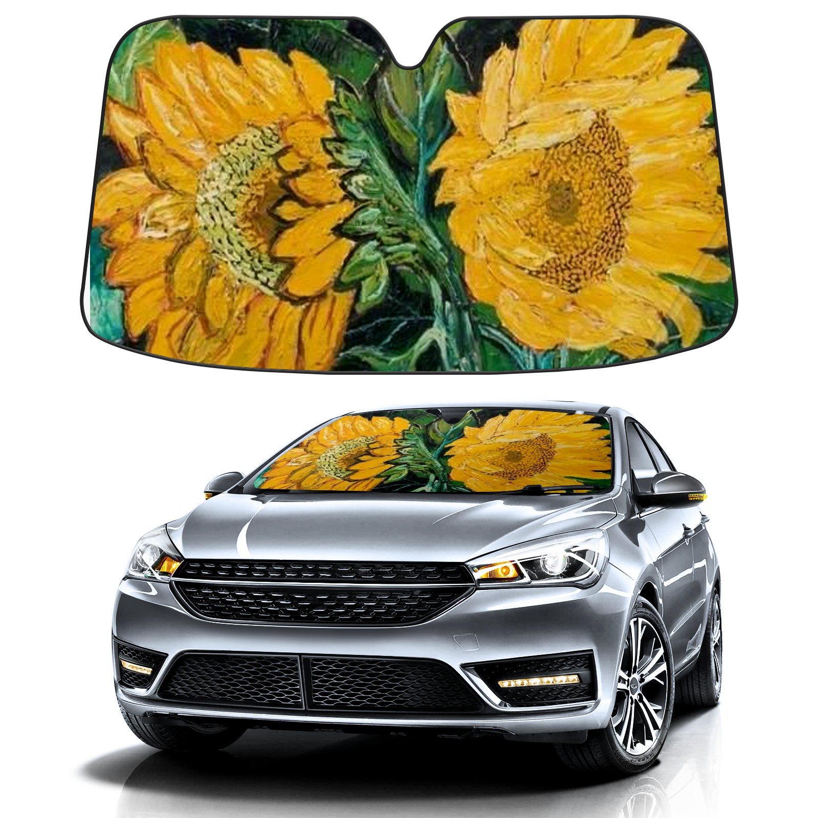 Car Windshield Sun Shade For Front Window Sunflowers And Sun-Crossed Sky In Summer Foldable Vehicle Windshield Car Sun Visor Covers Automotive Window Protector Car Camping Privacy Sun Blocker