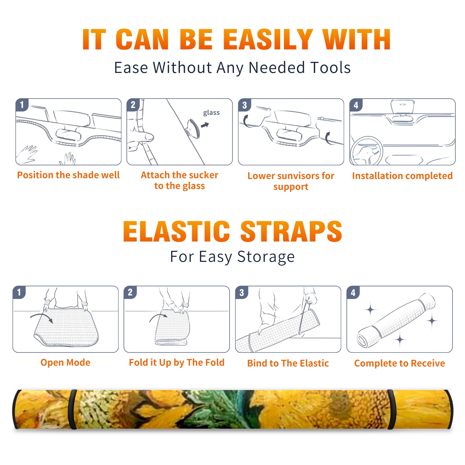 • Diameter /Size 63"L x 33.5"W Made from excellent materials which makes it sturdy and protects the car from the sun. Easy to use and pack. Makes the interior of the car cooler.You can easily stash the sunshade in the storage bag or store long term.It open and closes easy. Also the leather storage bag is durable and easy to put the umbrella back into.This windshield sunshade provides complete coverage and keeps your car interior cool under direct sun. It is easy to open and position under the windshield and around the rear-view mirror. Makes Your Car Easy To Identify, Perfect For Finding Your Car In Crowded Parking Lots And Garages.Great Choice: It Is A Great Gift For Dad, Boyfriend, Brother, Brother And Uncle, Friends, Classmates, Family And So On. Notice: Due To Difference Computer Monitors, The Color Maybe Slightly Different From Picture. As Different Measurement Methods, Measurement Data Will Float Within 2%.I Hope You Understand. If You Have Any Question About The Item Please Do Not Hesitate To Contact Us Immediately And We Will Give You A Satisfactory Reply Within 24 Hours.