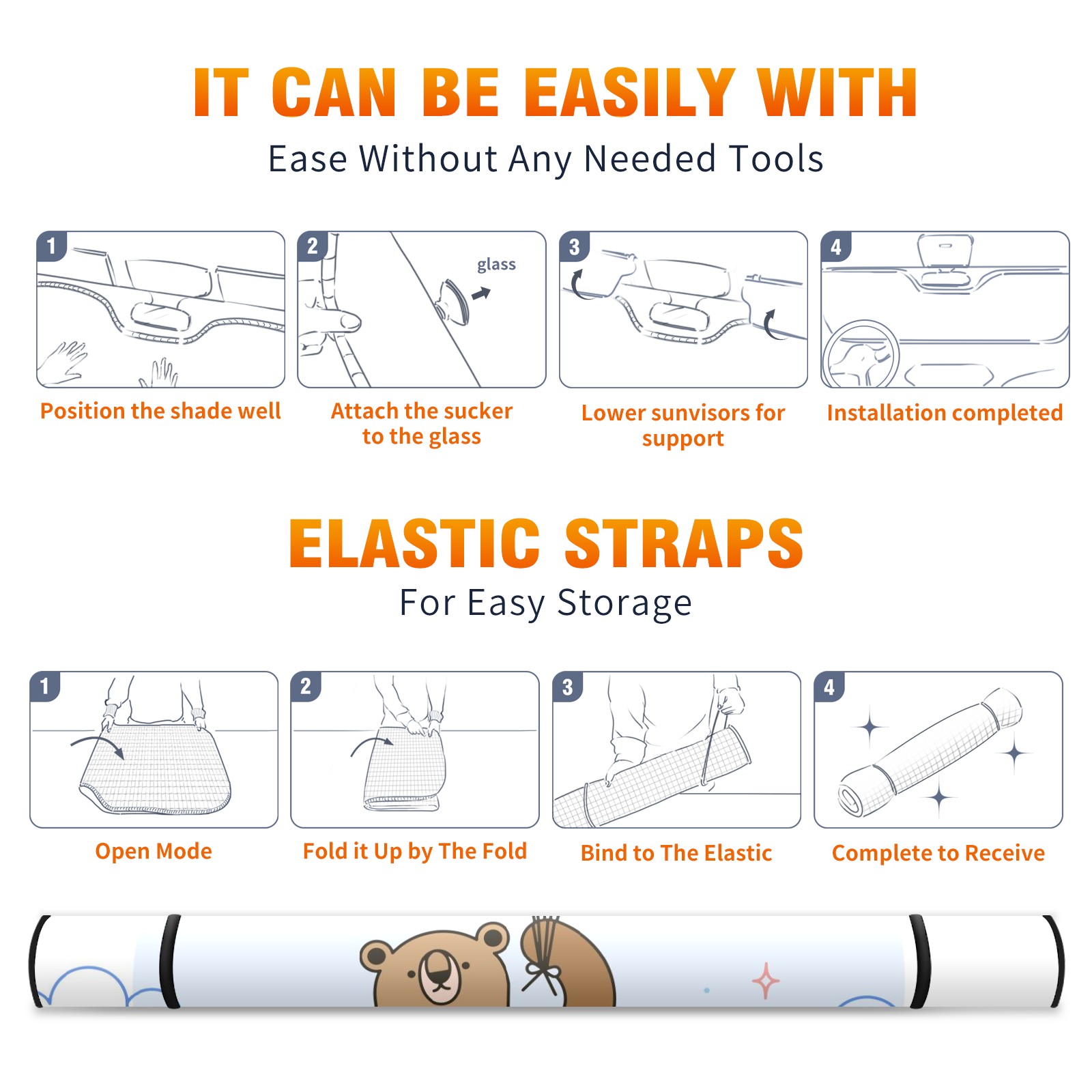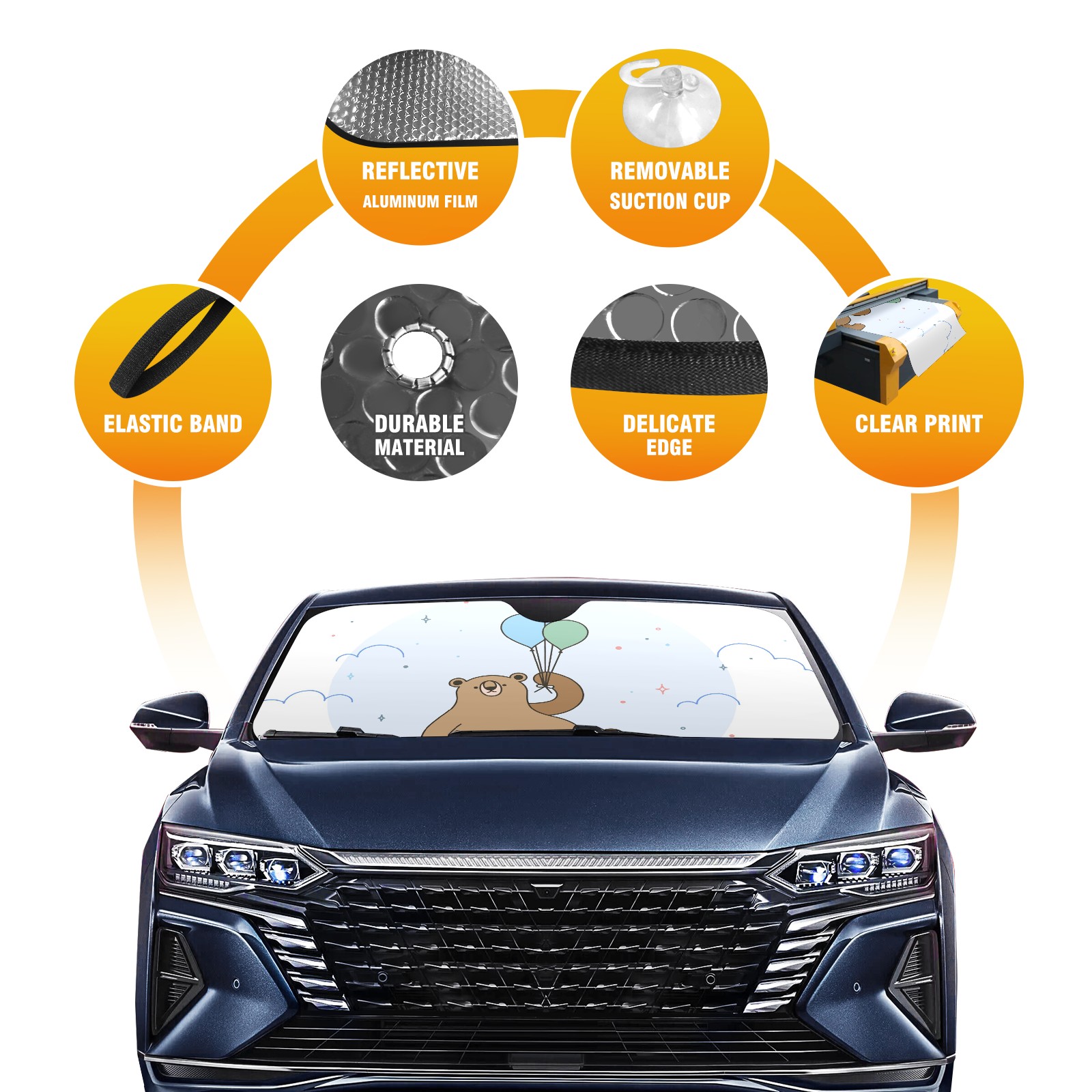 Car Windshield Sun Shade For Front Window Flying Bear Sky Foldable Vehicle Windshield Car Sun Visor Covers Automotive Window Protector Car Camping Privacy Sun Blocker