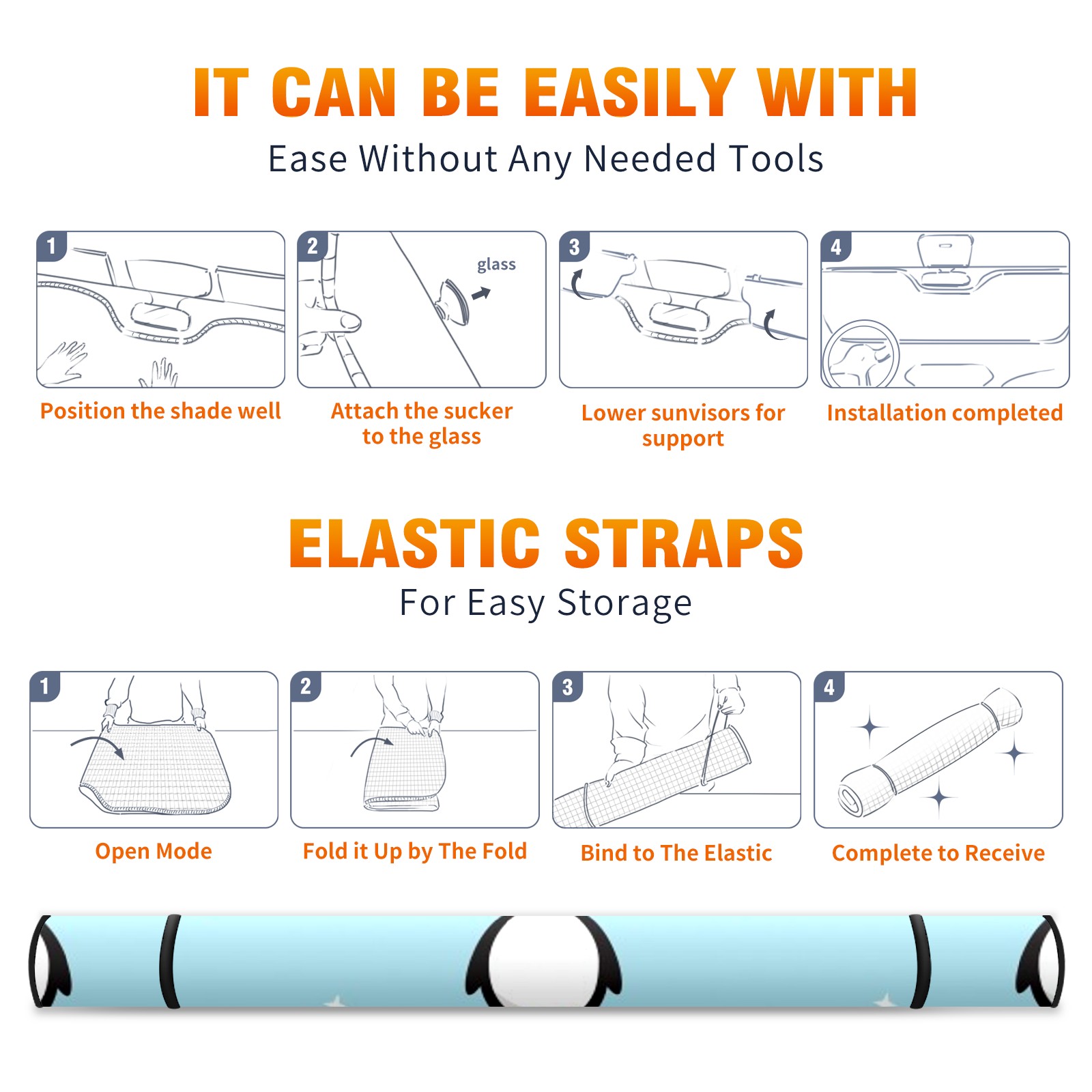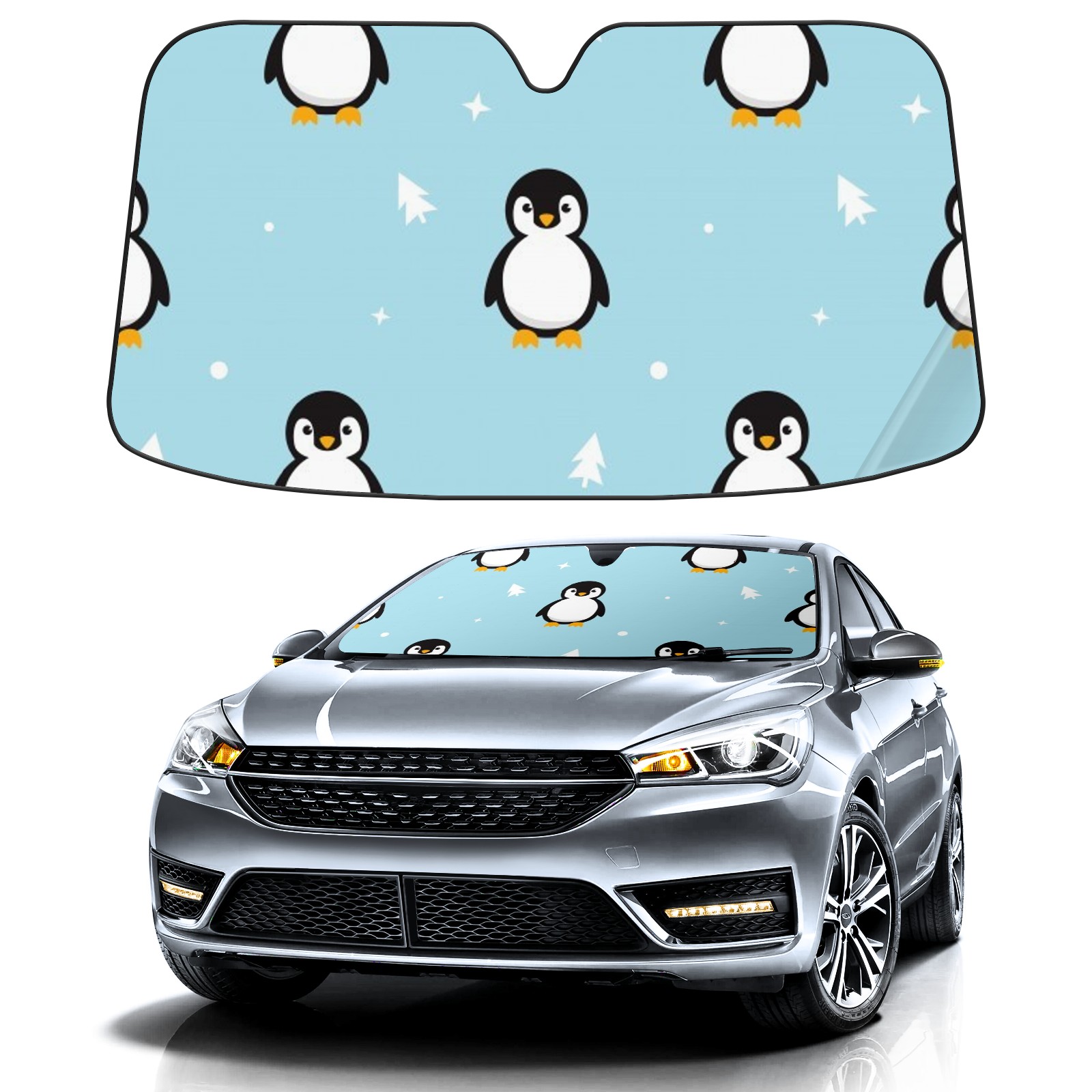 Car Windshield Sun Shade For Front Window Baby Penguin Standing Sky Blue Foldable Vehicle Windshield Car Sun Visor Covers Automotive Window Protector Car Camping Privacy Sun Blocker