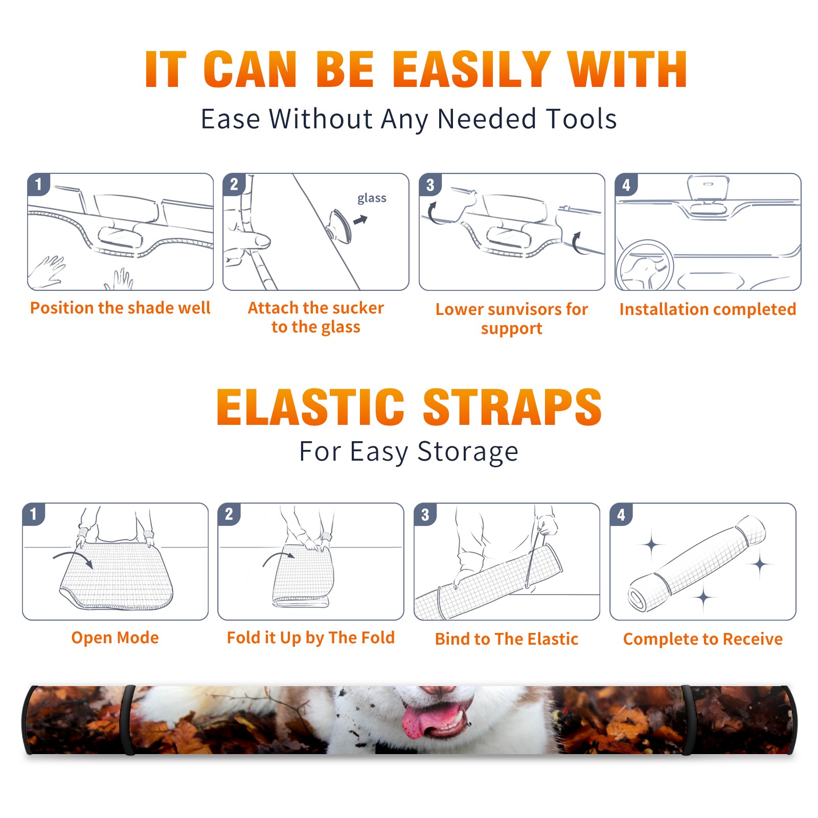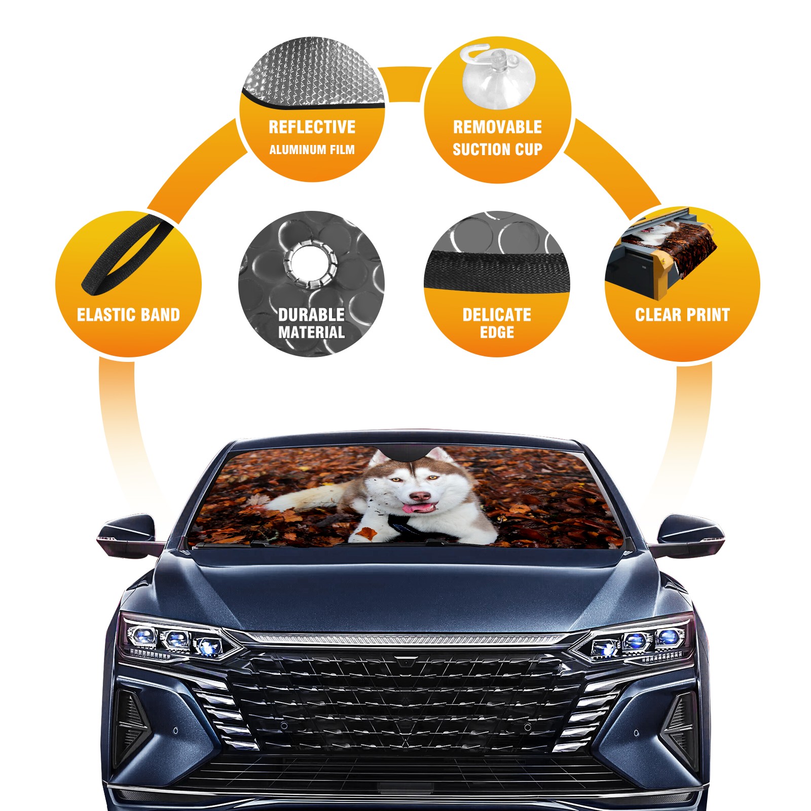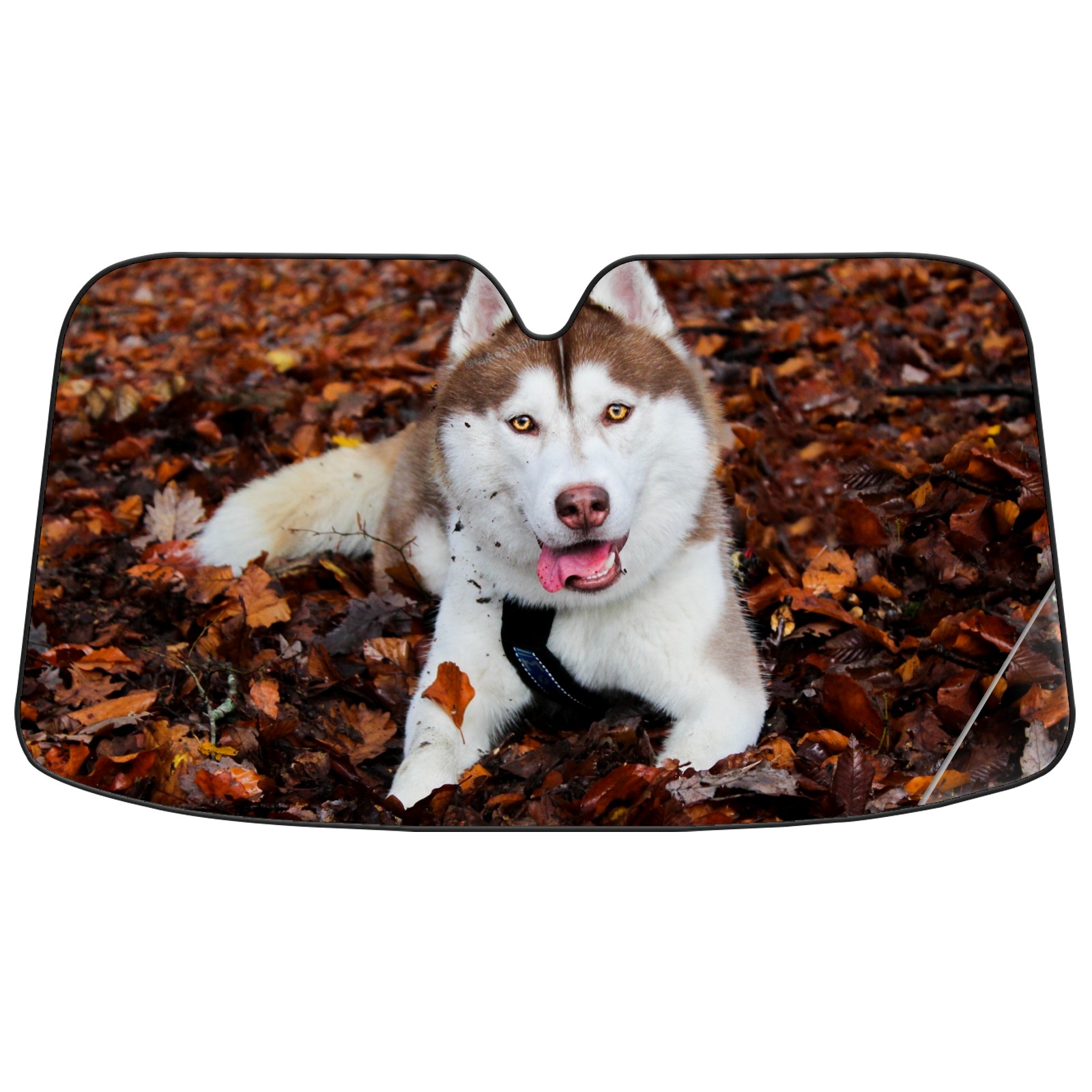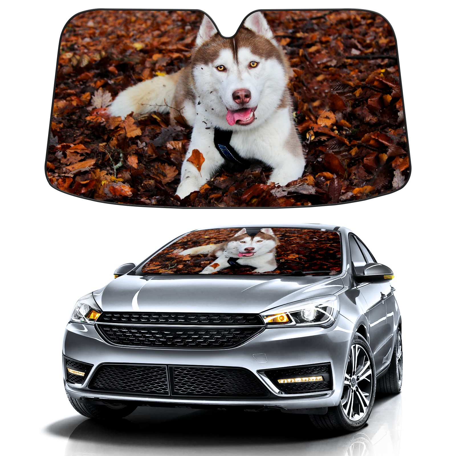 Car Windshield Sun Shade For Front Window Siberien Husky Lying On Maple Leaves Foldable Vehicle Windshield Car Sun Visor Covers Automotive Window Protector Car Camping Privacy Sun Blocker