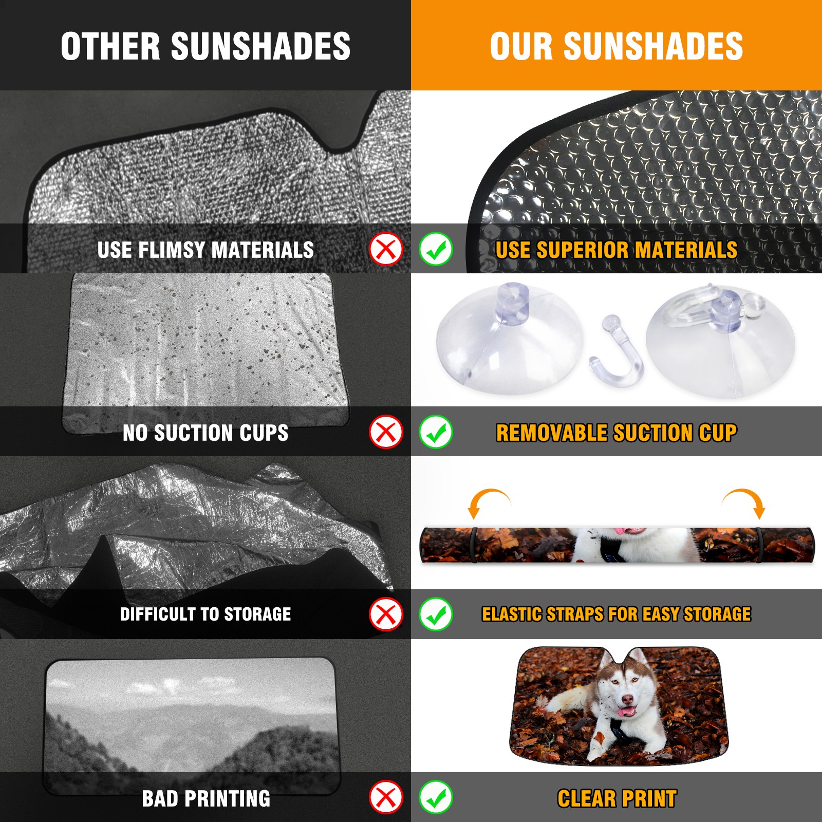 • Diameter /Size 63"L x 33.5"W Made from excellent materials which makes it sturdy and protects the car from the sun. Easy to use and pack. Makes the interior of the car cooler.You can easily stash the sunshade in the storage bag or store long term.It open and closes easy. Also the leather storage bag is durable and easy to put the umbrella back into.This windshield sunshade provides complete coverage and keeps your car interior cool under direct sun. It is easy to open and position under the windshield and around the rear-view mirror. Makes Your Car Easy To Identify, Perfect For Finding Your Car In Crowded Parking Lots And Garages.Great Choice: It Is A Great Gift For Dad, Boyfriend, Brother, Brother And Uncle, Friends, Classmates, Family And So On. Notice: Due To Difference Computer Monitors, The Color Maybe Slightly Different From Picture. As Different Measurement Methods, Measurement Data Will Float Within 2%.I Hope You Understand. If You Have Any Question About The Item Please Do Not Hesitate To Contact Us Immediately And We Will Give You A Satisfactory Reply Within 24 Hours.