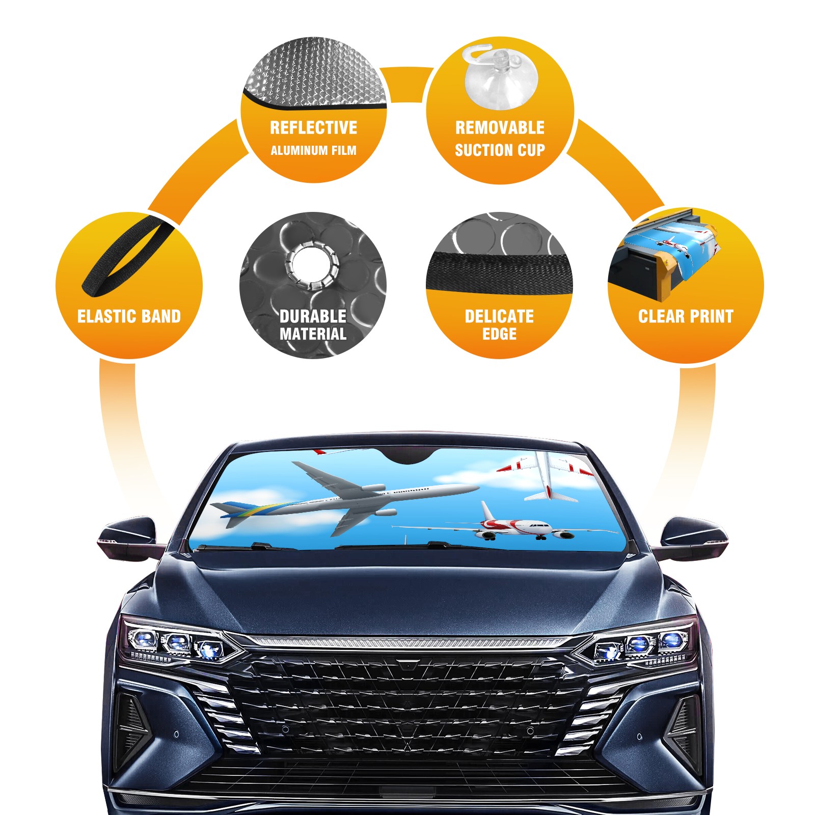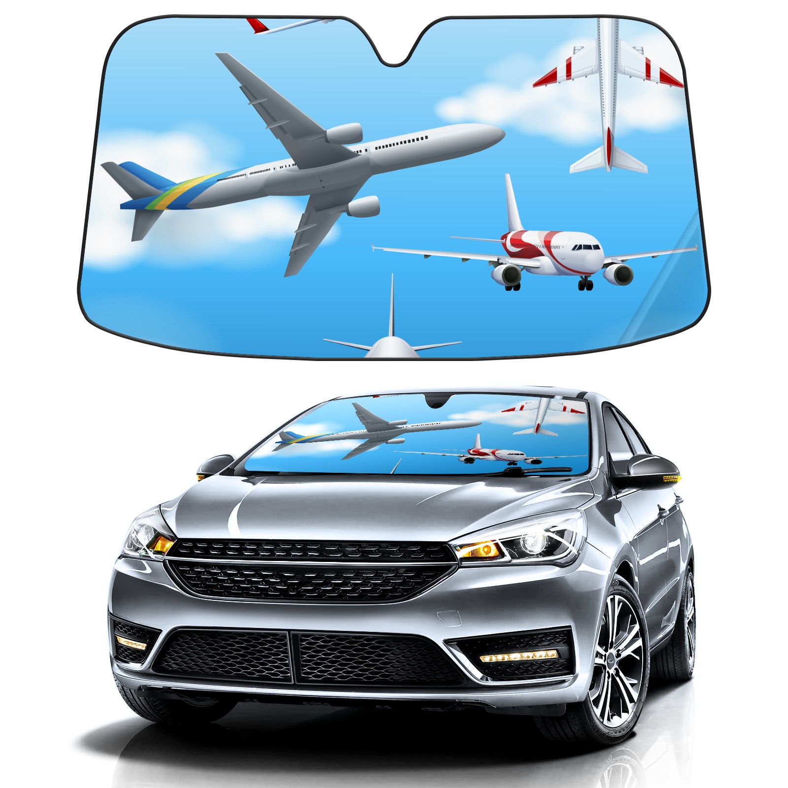 Car Windshield Sun Shade For Front Window Airplane Aircraft Flying Sky Foldable Vehicle Windshield Car Sun Visor Covers Automotive Window Protector Car Camping Privacy Sun Blocker