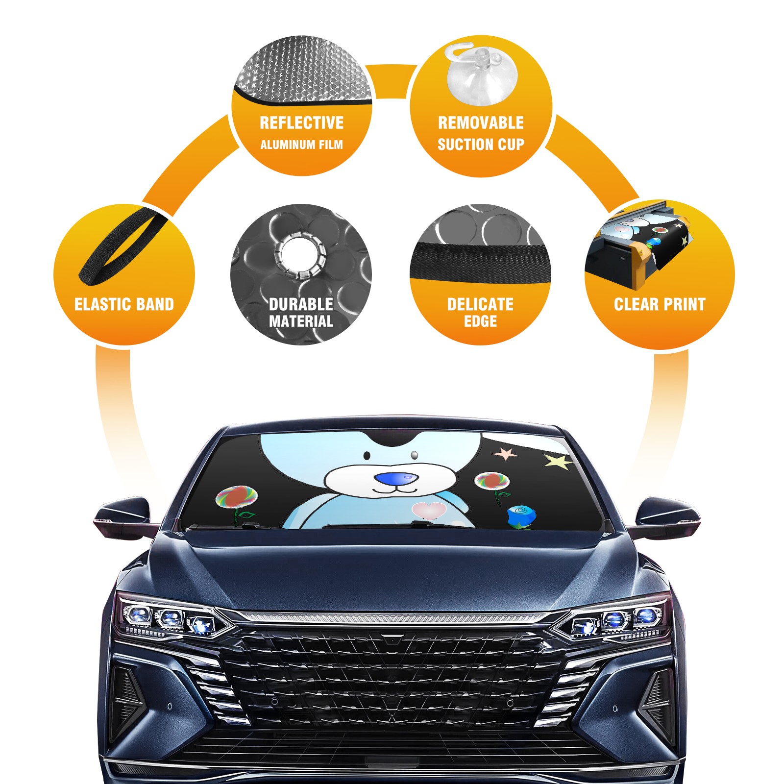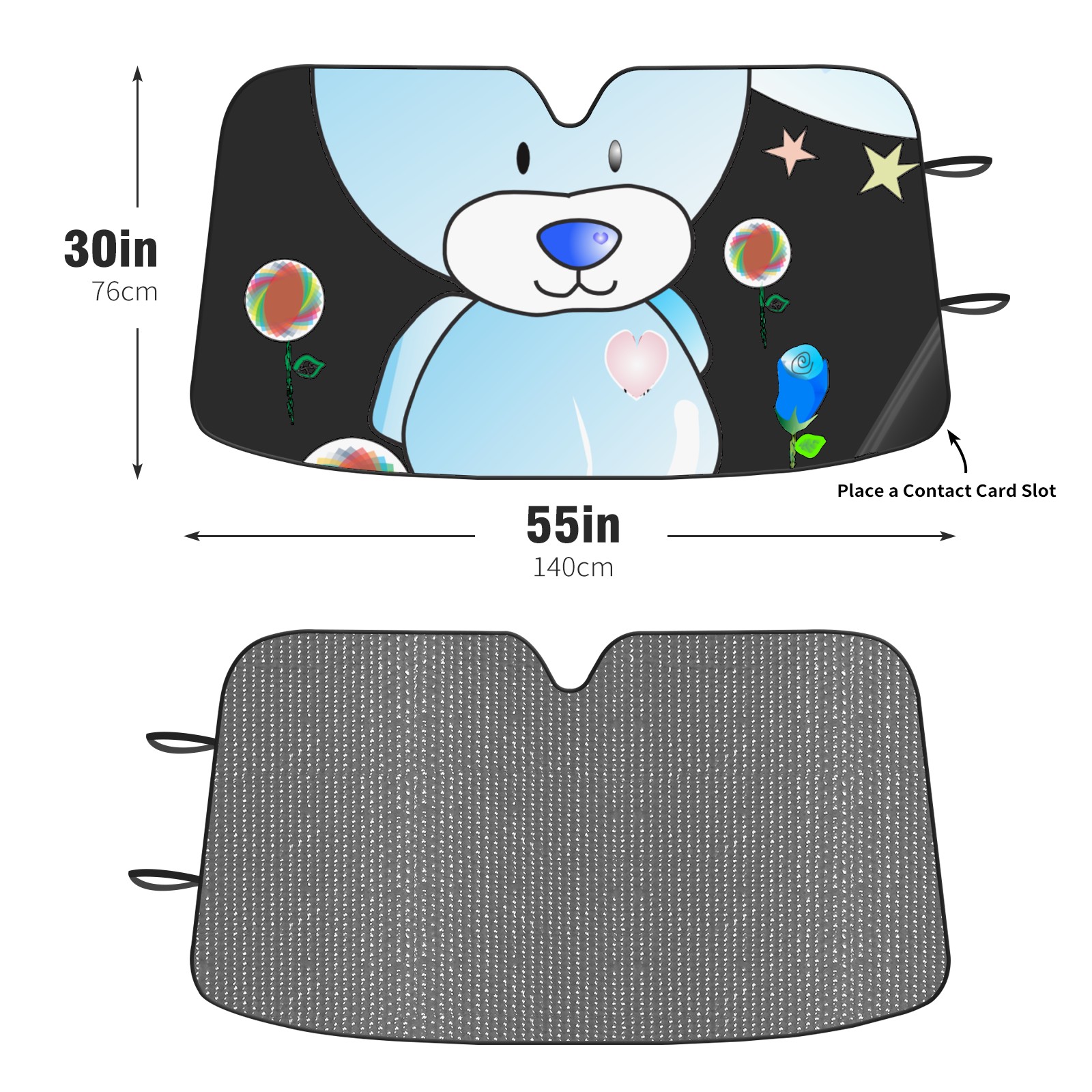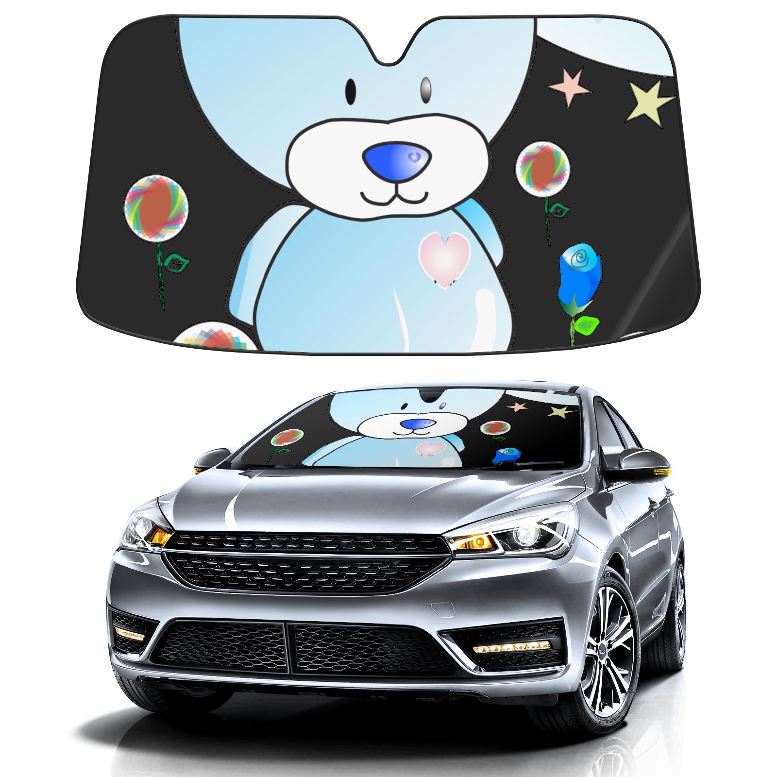 Car Windshield Sun Shade For Front Window Cartoon Bear Stars Blue Sky Foldable Vehicle Windshield Car Sun Visor Covers Automotive Window Protector Car Camping Privacy Sun Blocker