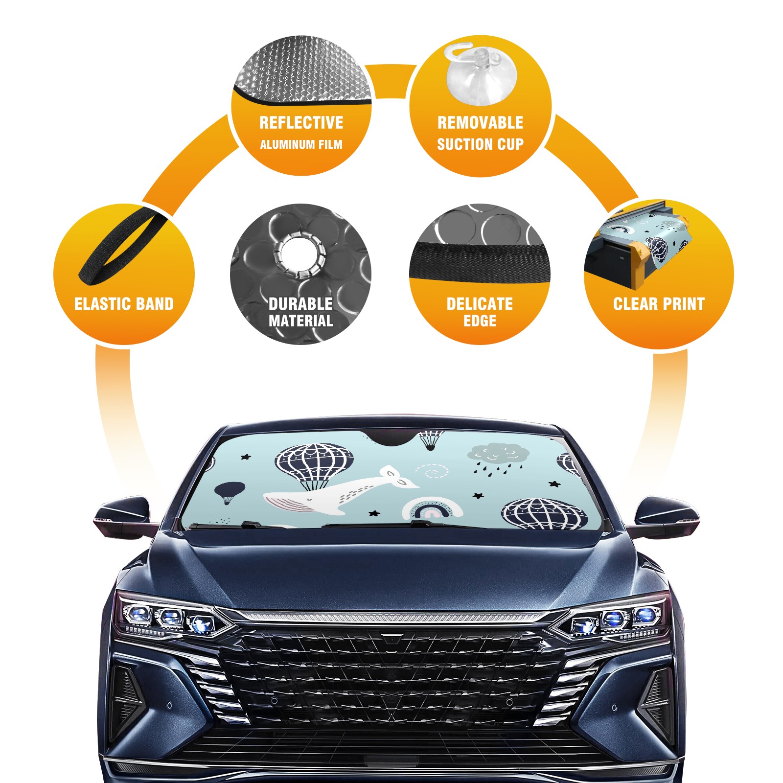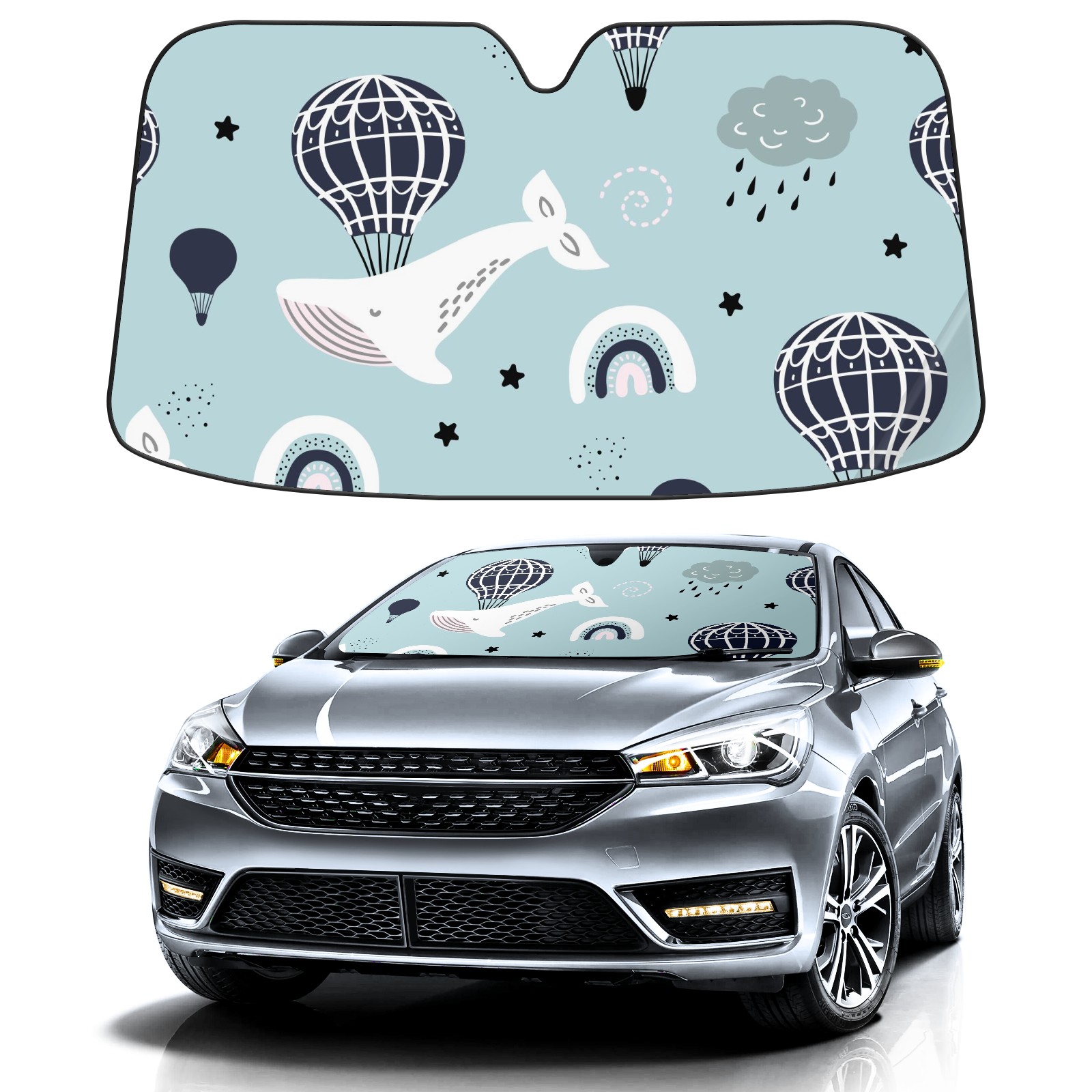 Car Windshield Sun Shade For Front Window Whale Balloon Cloud Sky Foldable Vehicle Windshield Car Sun Visor Covers Automotive Window Protector Car Camping Privacy Sun Blocker