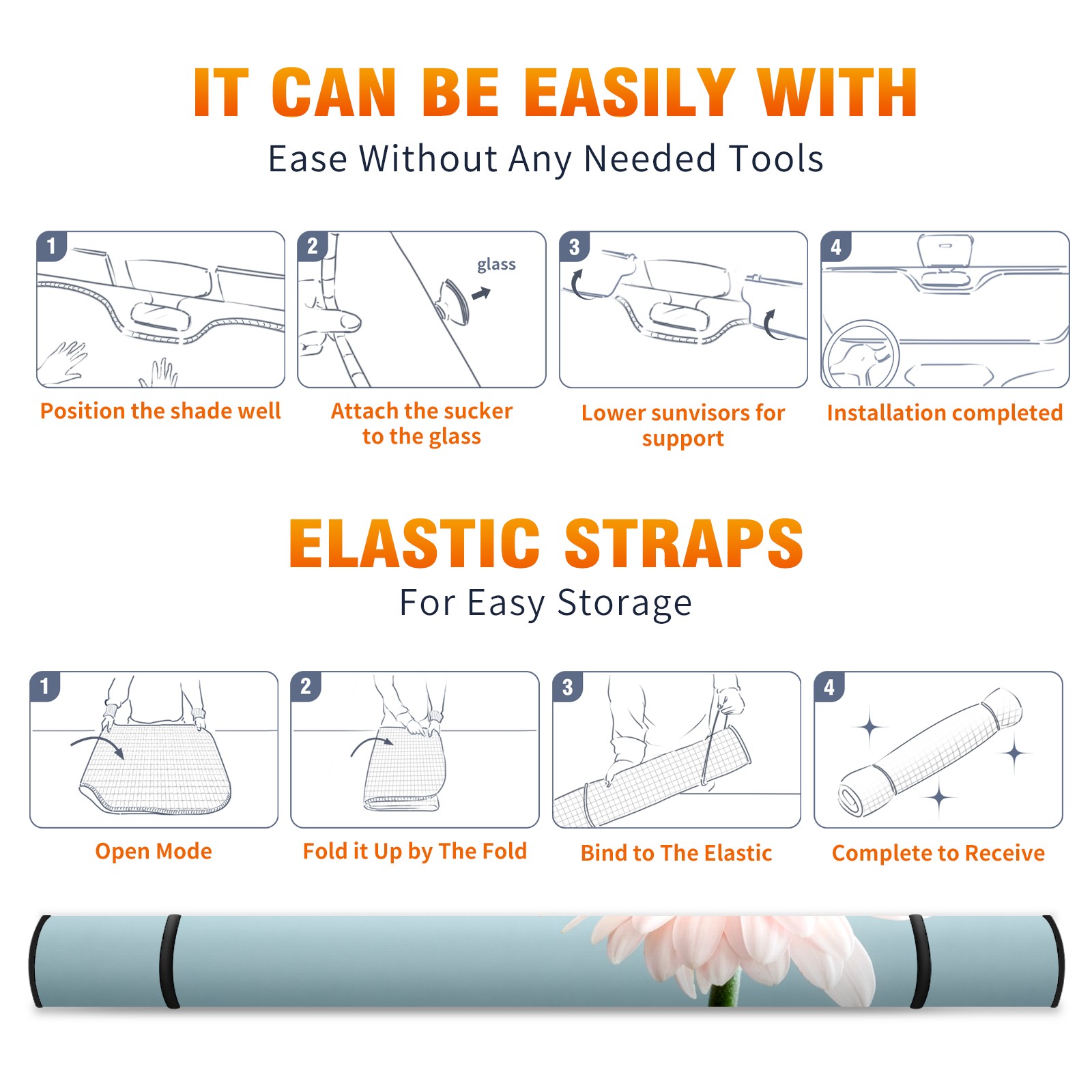 • Diameter /Size 63"L x 33.5"W Made from excellent materials which makes it sturdy and protects the car from the sun. Easy to use and pack. Makes the interior of the car cooler.You can easily stash the sunshade in the storage bag or store long term.It open and closes easy. Also the leather storage bag is durable and easy to put the umbrella back into.This windshield sunshade provides complete coverage and keeps your car interior cool under direct sun. It is easy to open and position under the windshield and around the rear-view mirror. Makes Your Car Easy To Identify, Perfect For Finding Your Car In Crowded Parking Lots And Garages.Great Choice: It Is A Great Gift For Dad, Boyfriend, Brother, Brother And Uncle, Friends, Classmates, Family And So On. Notice: Due To Difference Computer Monitors, The Color Maybe Slightly Different From Picture. As Different Measurement Methods, Measurement Data Will Float Within 2%.I Hope You Understand. If You Have Any Question About The Item Please Do Not Hesitate To Contact Us Immediately And We Will Give You A Satisfactory Reply Within 24 Hours.