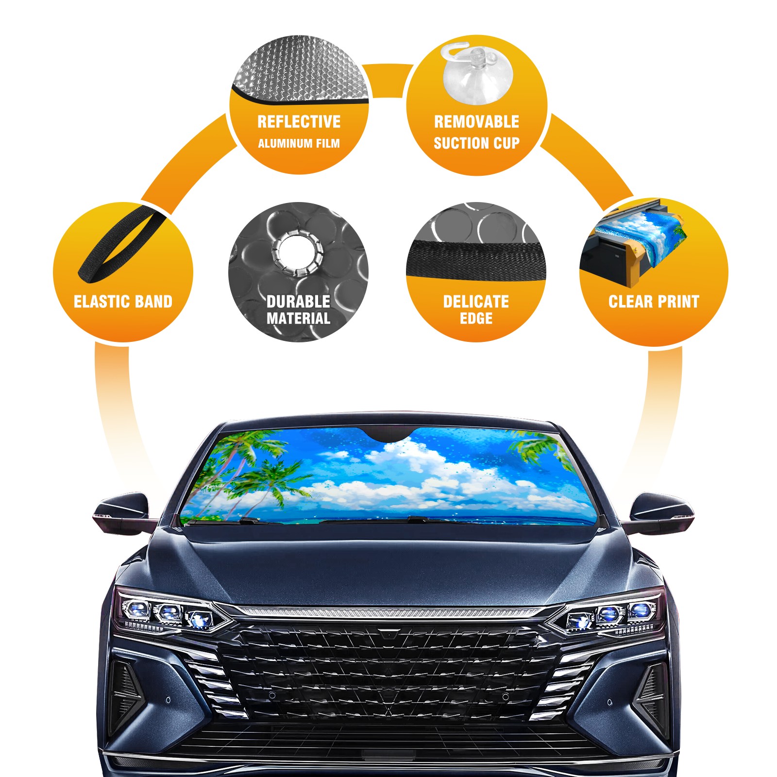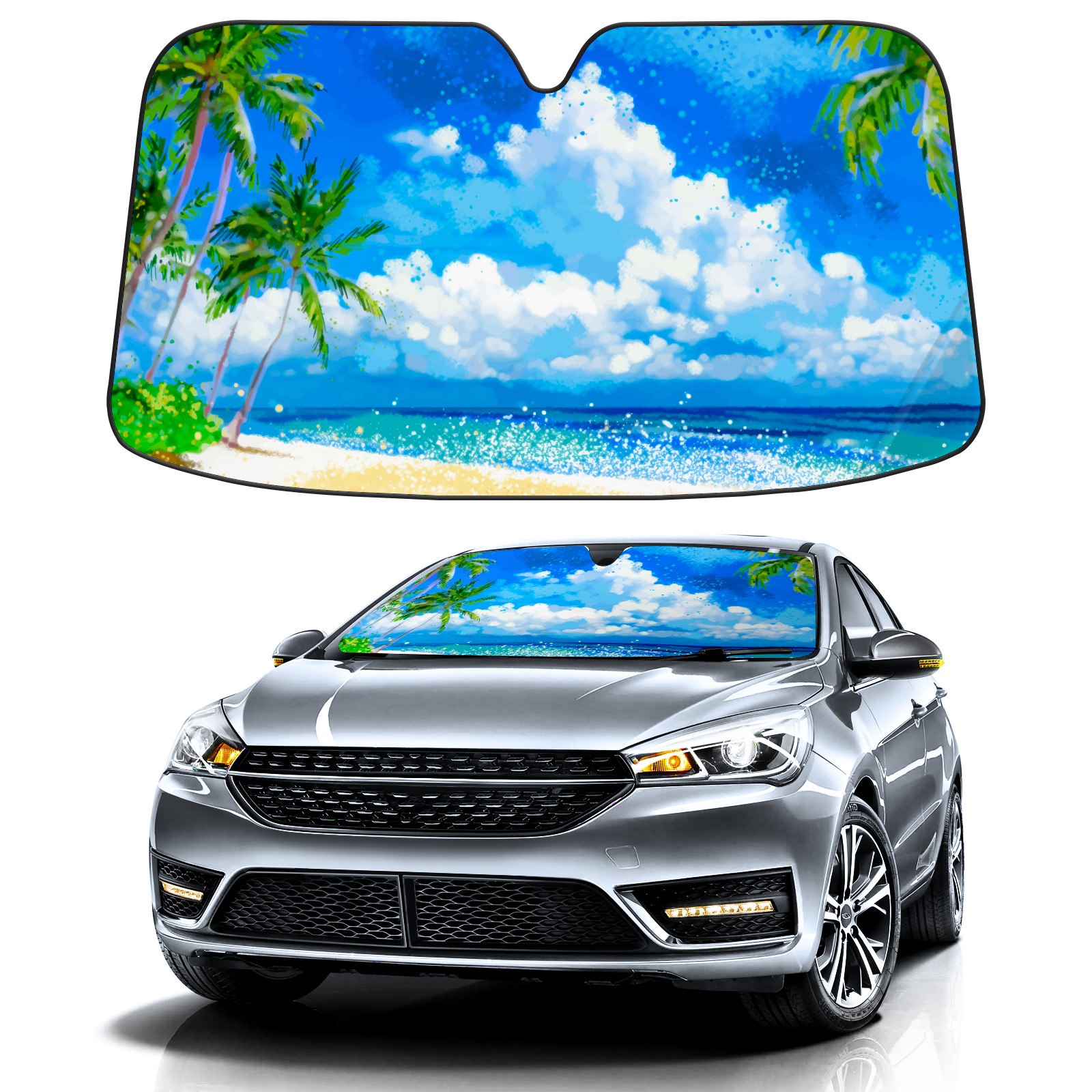 • Diameter /Size 63"L x 33.5"W Made from excellent materials which makes it sturdy and protects the car from the sun. Easy to use and pack. Makes the interior of the car cooler.You can easily stash the sunshade in the storage bag or store long term.It open and closes easy. Also the leather storage bag is durable and easy to put the umbrella back into.This windshield sunshade provides complete coverage and keeps your car interior cool under direct sun. It is easy to open and position under the windshield and around the rear-view mirror. Makes Your Car Easy To Identify, Perfect For Finding Your Car In Crowded Parking Lots And Garages.Great Choice: It Is A Great Gift For Dad, Boyfriend, Brother, Brother And Uncle, Friends, Classmates, Family And So On. Notice: Due To Difference Computer Monitors, The Color Maybe Slightly Different From Picture. As Different Measurement Methods, Measurement Data Will Float Within 2%.I Hope You Understand. If You Have Any Question About The Item Please Do Not Hesitate To Contact Us Immediately And We Will Give You A Satisfactory Reply Within 24 Hours.