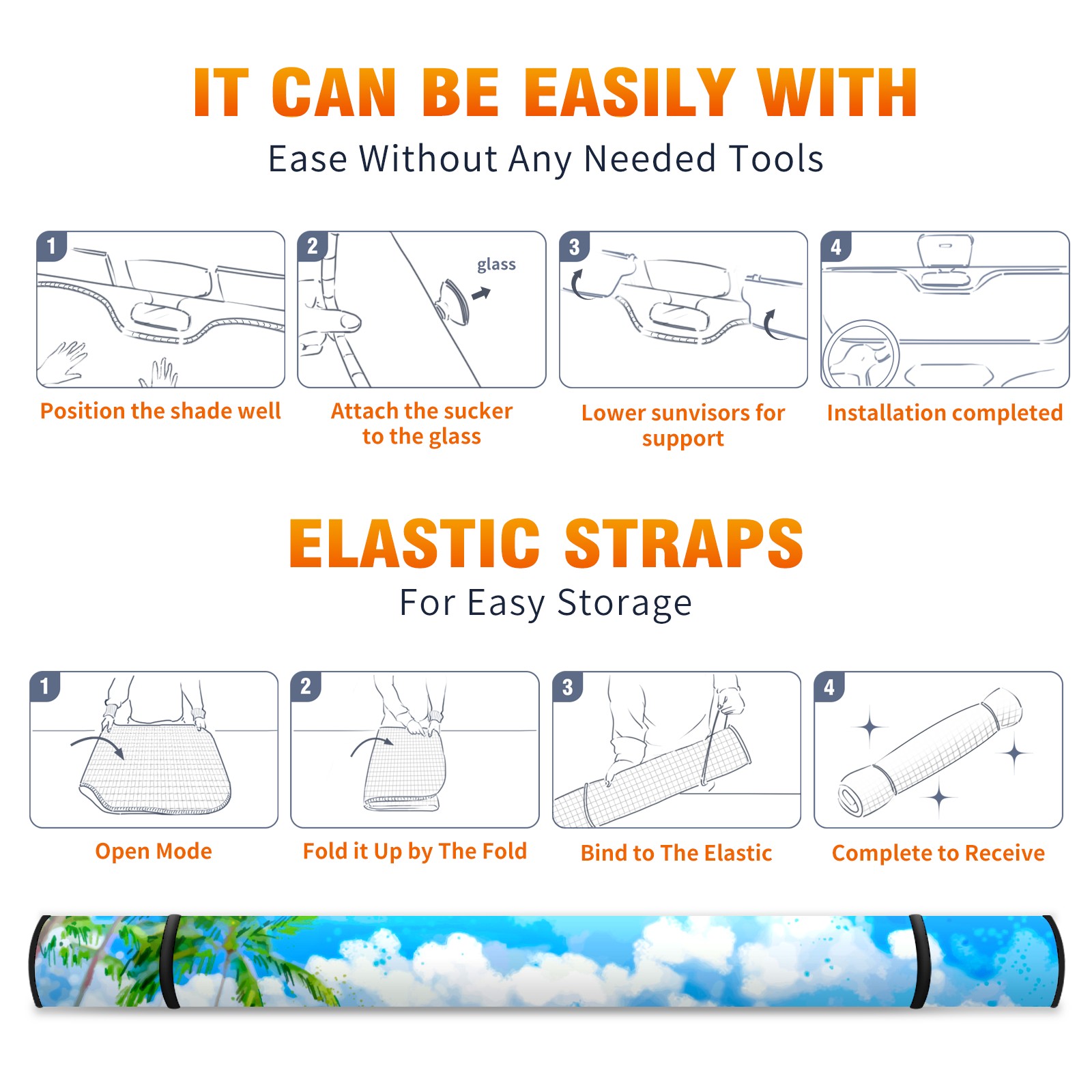 Car Windshield Sun Shade For Front Window Summer Landscape Blue Sky Foldable Vehicle Windshield Car Sun Visor Covers Automotive Window Protector Car Camping Privacy Sun Blocker