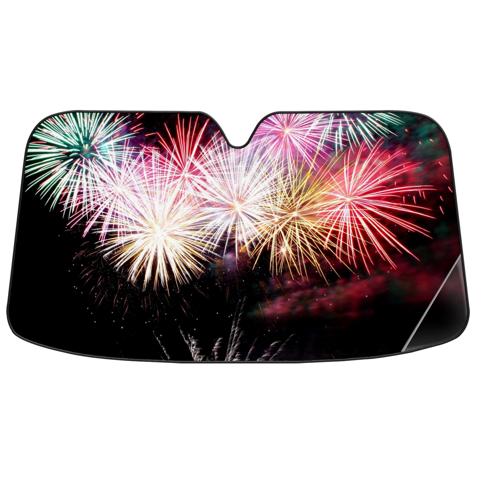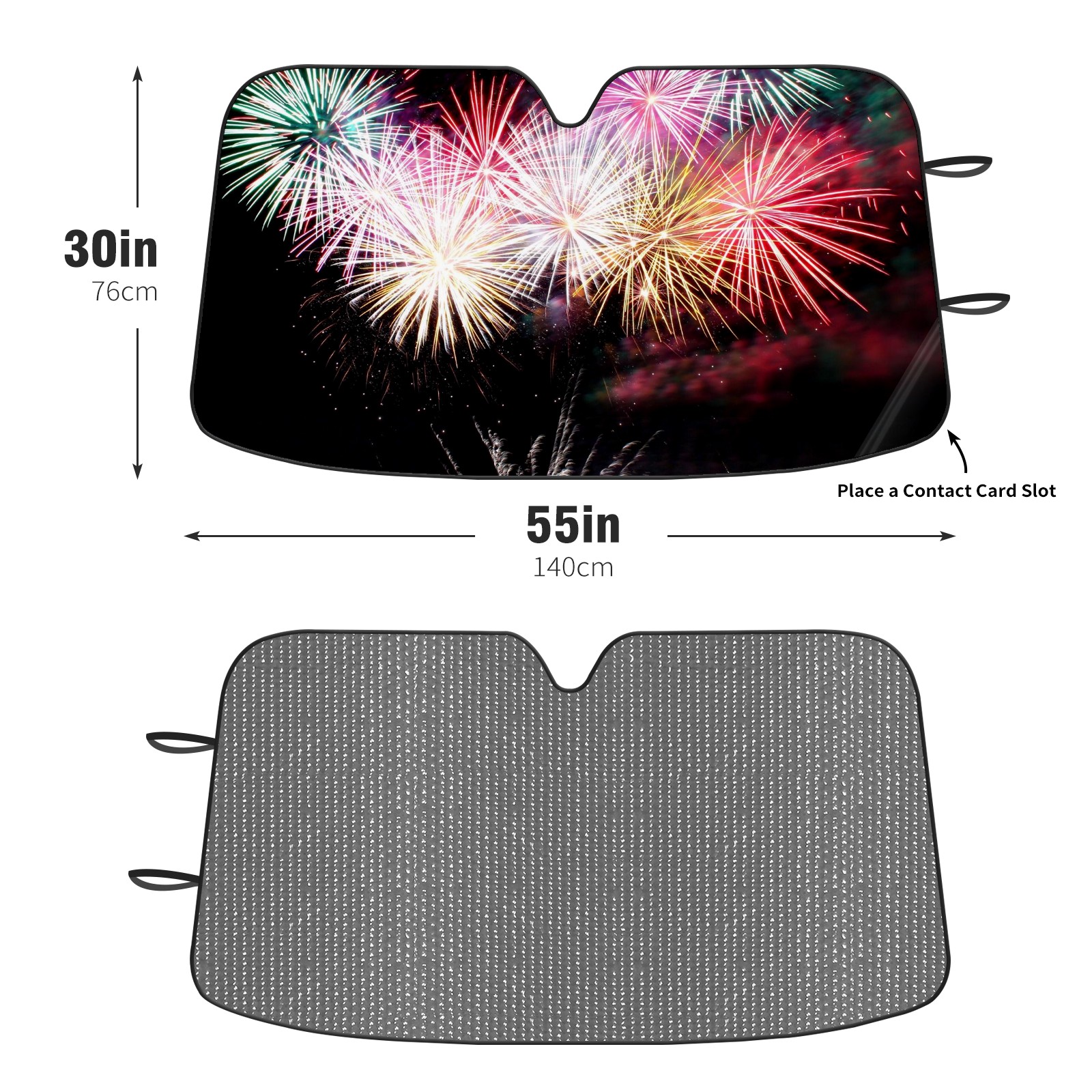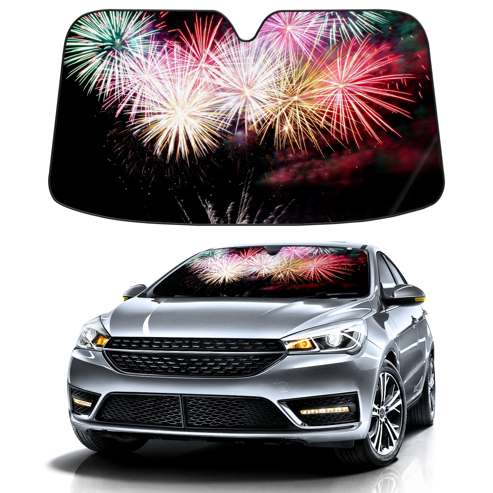 Car Windshield Sun Shade For Front Window Colorful Fireworks Sparkling Sky Foldable Vehicle Windshield Car Sun Visor Covers Automotive Window Protector Car Camping Privacy Sun Blocker