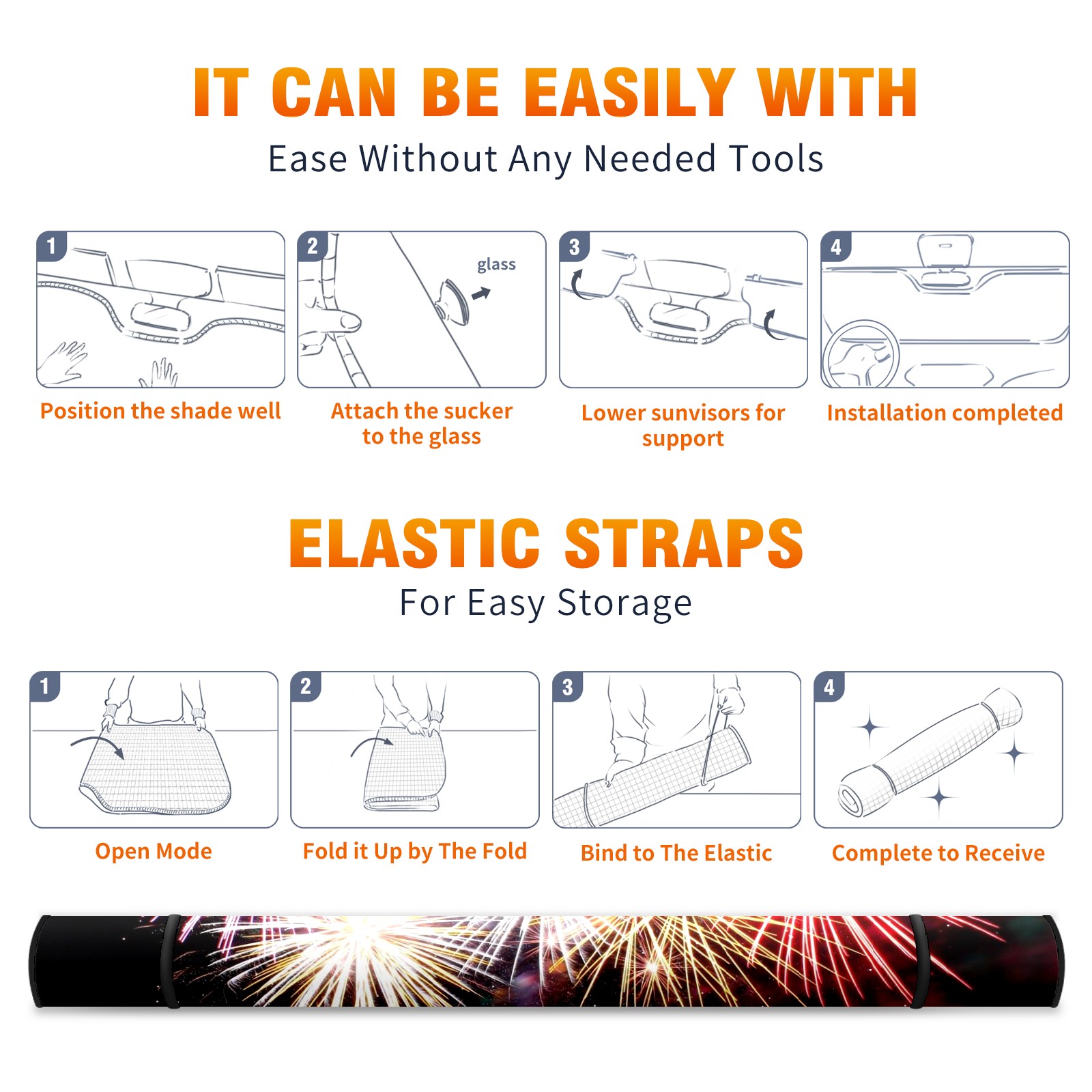 • Diameter /Size 63"L x 33.5"W Made from excellent materials which makes it sturdy and protects the car from the sun. Easy to use and pack. Makes the interior of the car cooler.You can easily stash the sunshade in the storage bag or store long term.It open and closes easy. Also the leather storage bag is durable and easy to put the umbrella back into.This windshield sunshade provides complete coverage and keeps your car interior cool under direct sun. It is easy to open and position under the windshield and around the rear-view mirror. Makes Your Car Easy To Identify, Perfect For Finding Your Car In Crowded Parking Lots And Garages.Great Choice: It Is A Great Gift For Dad, Boyfriend, Brother, Brother And Uncle, Friends, Classmates, Family And So On. Notice: Due To Difference Computer Monitors, The Color Maybe Slightly Different From Picture. As Different Measurement Methods, Measurement Data Will Float Within 2%.I Hope You Understand. If You Have Any Question About The Item Please Do Not Hesitate To Contact Us Immediately And We Will Give You A Satisfactory Reply Within 24 Hours.