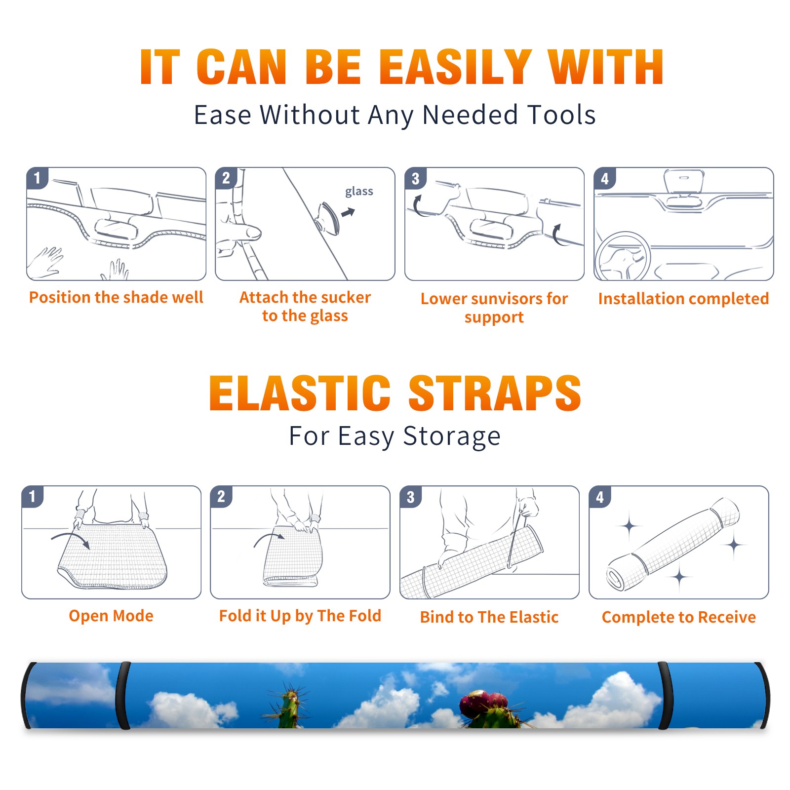 • Diameter /Size 63"L x 33.5"W Made from excellent materials which makes it sturdy and protects the car from the sun. Easy to use and pack. Makes the interior of the car cooler.You can easily stash the sunshade in the storage bag or store long term.It open and closes easy. Also the leather storage bag is durable and easy to put the umbrella back into.This windshield sunshade provides complete coverage and keeps your car interior cool under direct sun. It is easy to open and position under the windshield and around the rear-view mirror. Makes Your Car Easy To Identify, Perfect For Finding Your Car In Crowded Parking Lots And Garages.Great Choice: It Is A Great Gift For Dad, Boyfriend, Brother, Brother And Uncle, Friends, Classmates, Family And So On. Notice: Due To Difference Computer Monitors, The Color Maybe Slightly Different From Picture. As Different Measurement Methods, Measurement Data Will Float Within 2%.I Hope You Understand. If You Have Any Question About The Item Please Do Not Hesitate To Contact Us Immediately And We Will Give You A Satisfactory Reply Within 24 Hours.