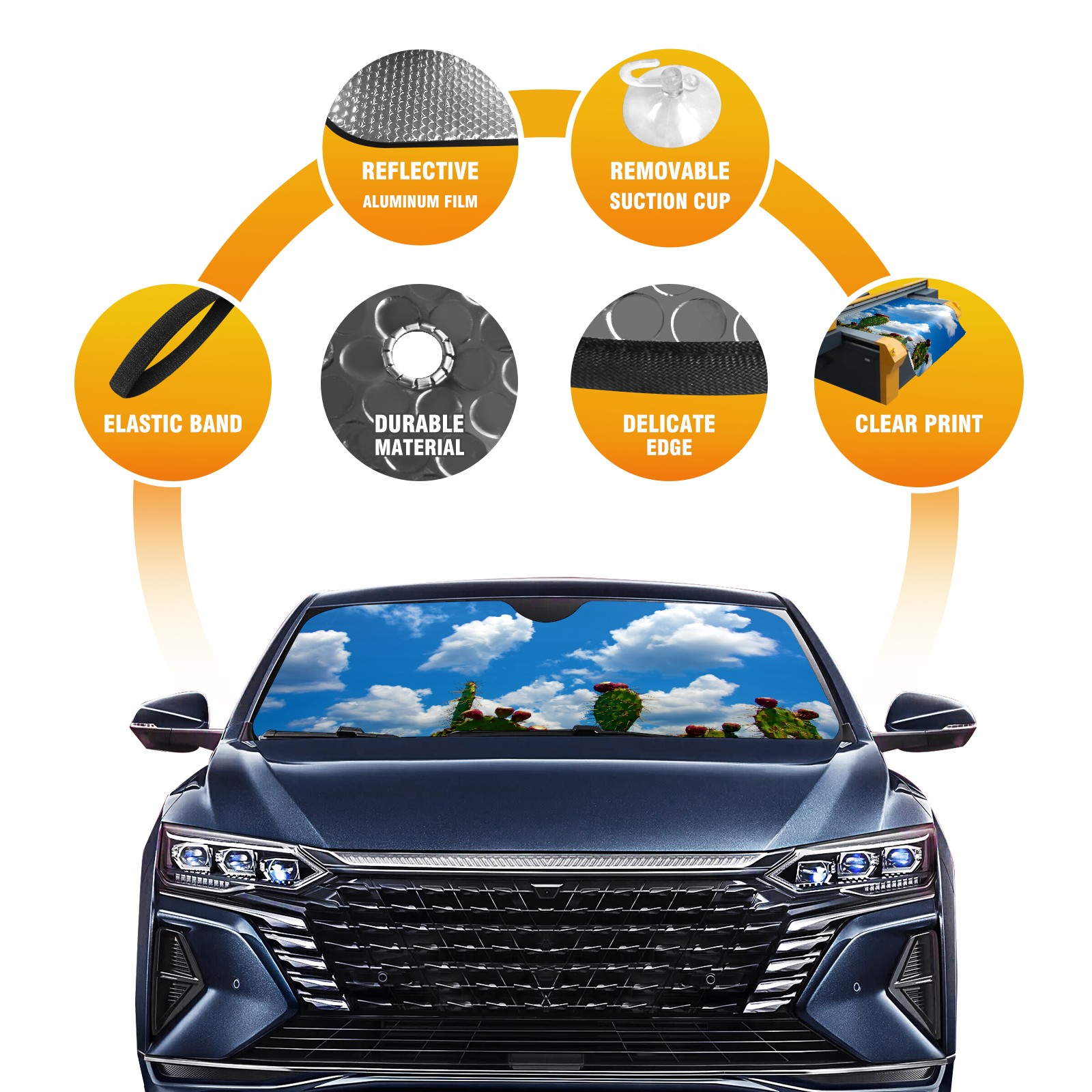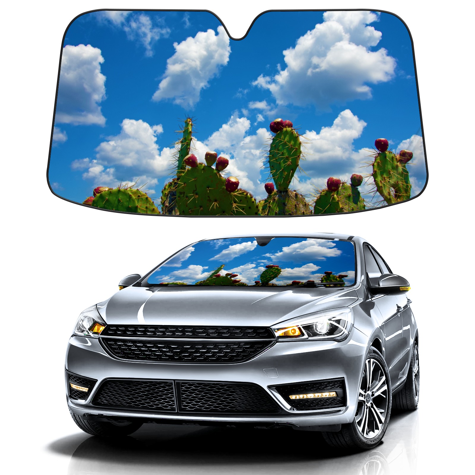Car Windshield Sun Shade For Front Window Sky Cloud Cactus Foldable Vehicle Windshield Car Sun Visor Covers Automotive Window Protector Car Camping Privacy Sun Blocker