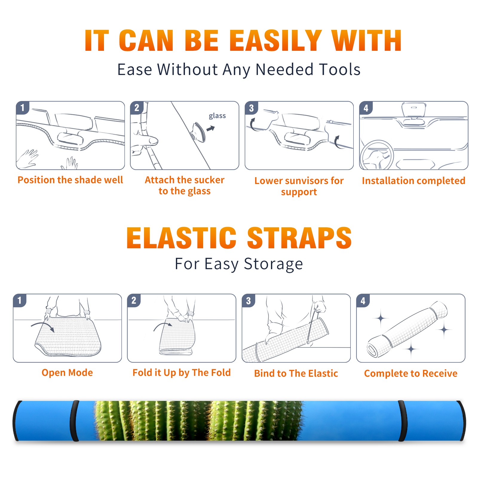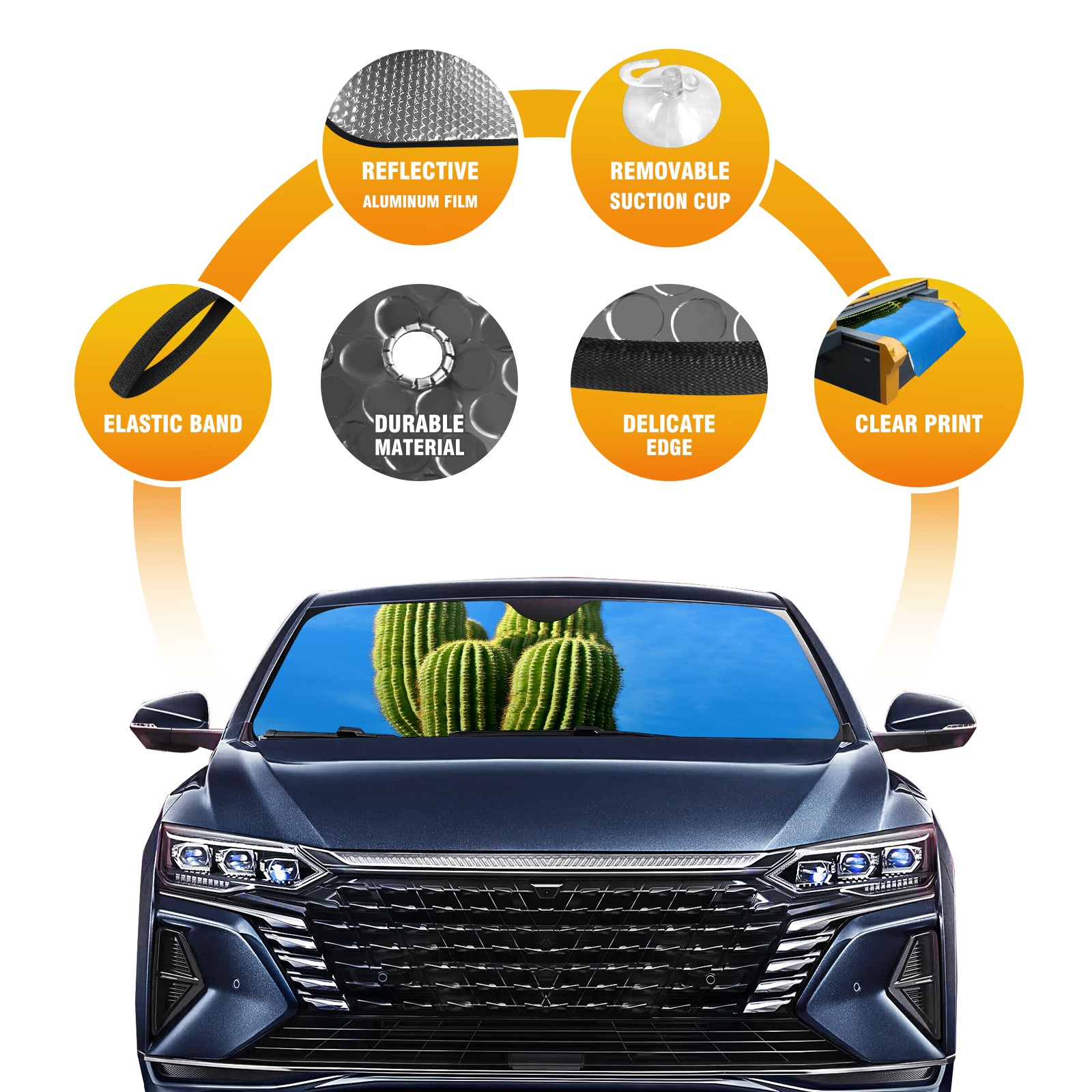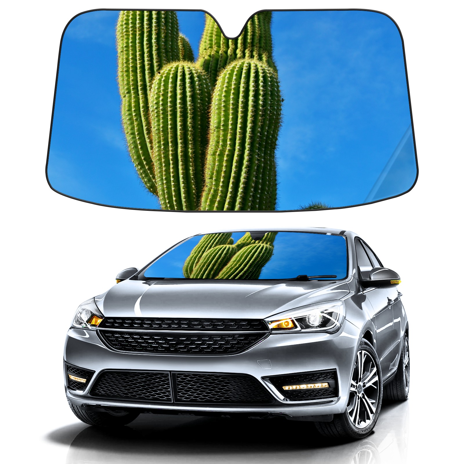 Car Windshield Sun Shade For Front Window Cactus Sky Nature Plant Foldable Vehicle Windshield Car Sun Visor Covers Automotive Window Protector Car Camping Privacy Sun Blocker