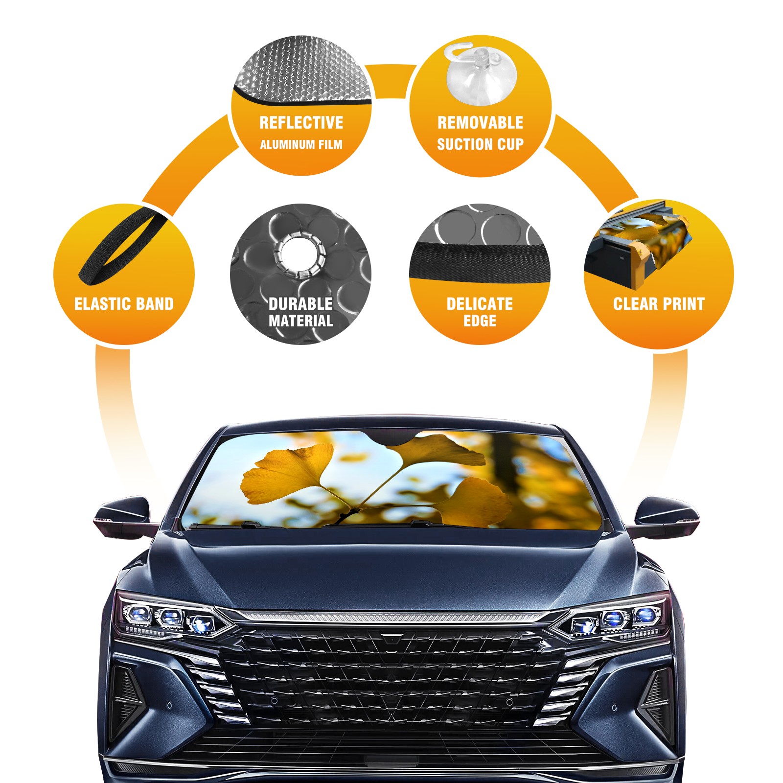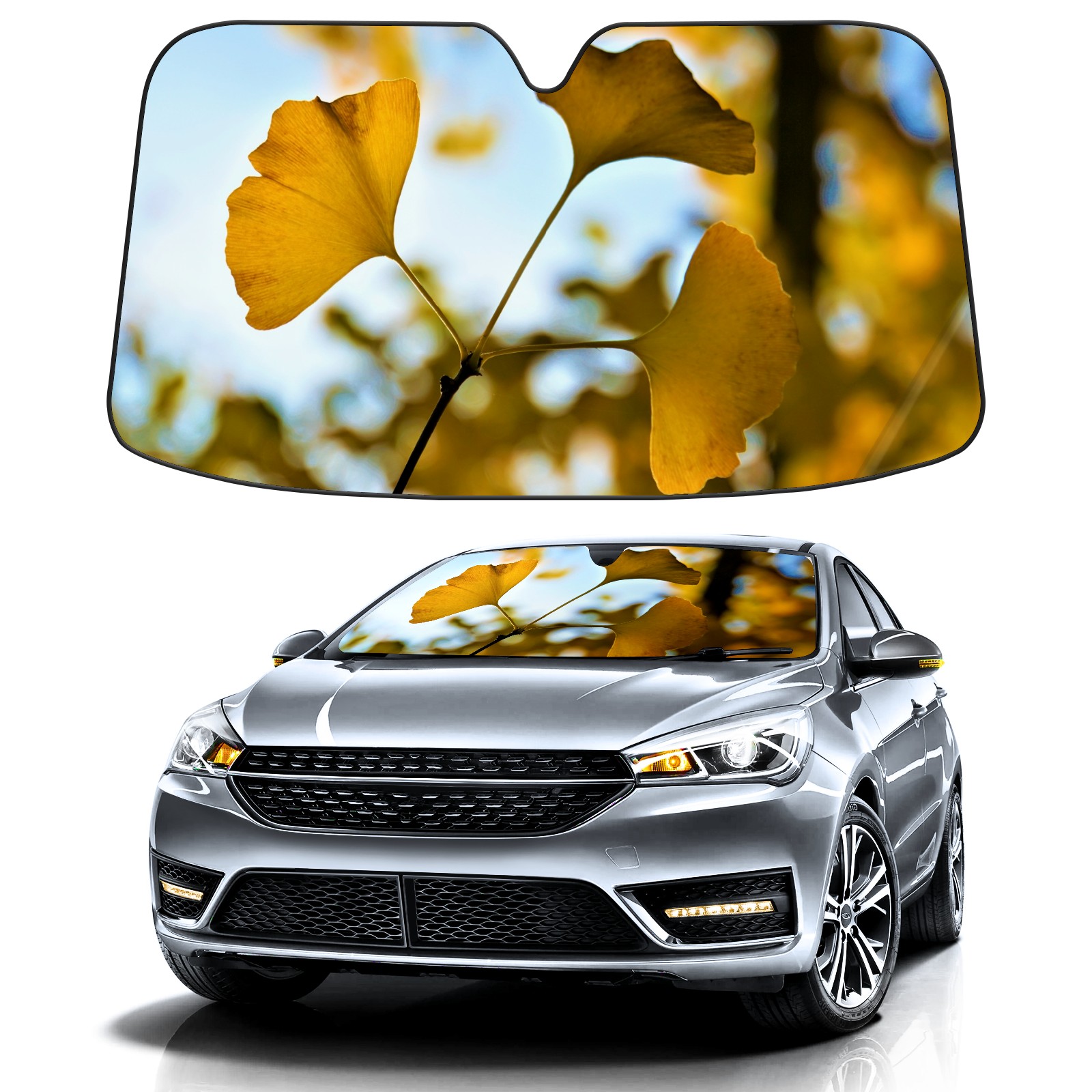 Car Windshield Sun Shade For Front Window Autumn Yellow Ginkgo Sky Foldable Vehicle Windshield Car Sun Visor Covers Automotive Window Protector Car Camping Privacy Sun Blocker