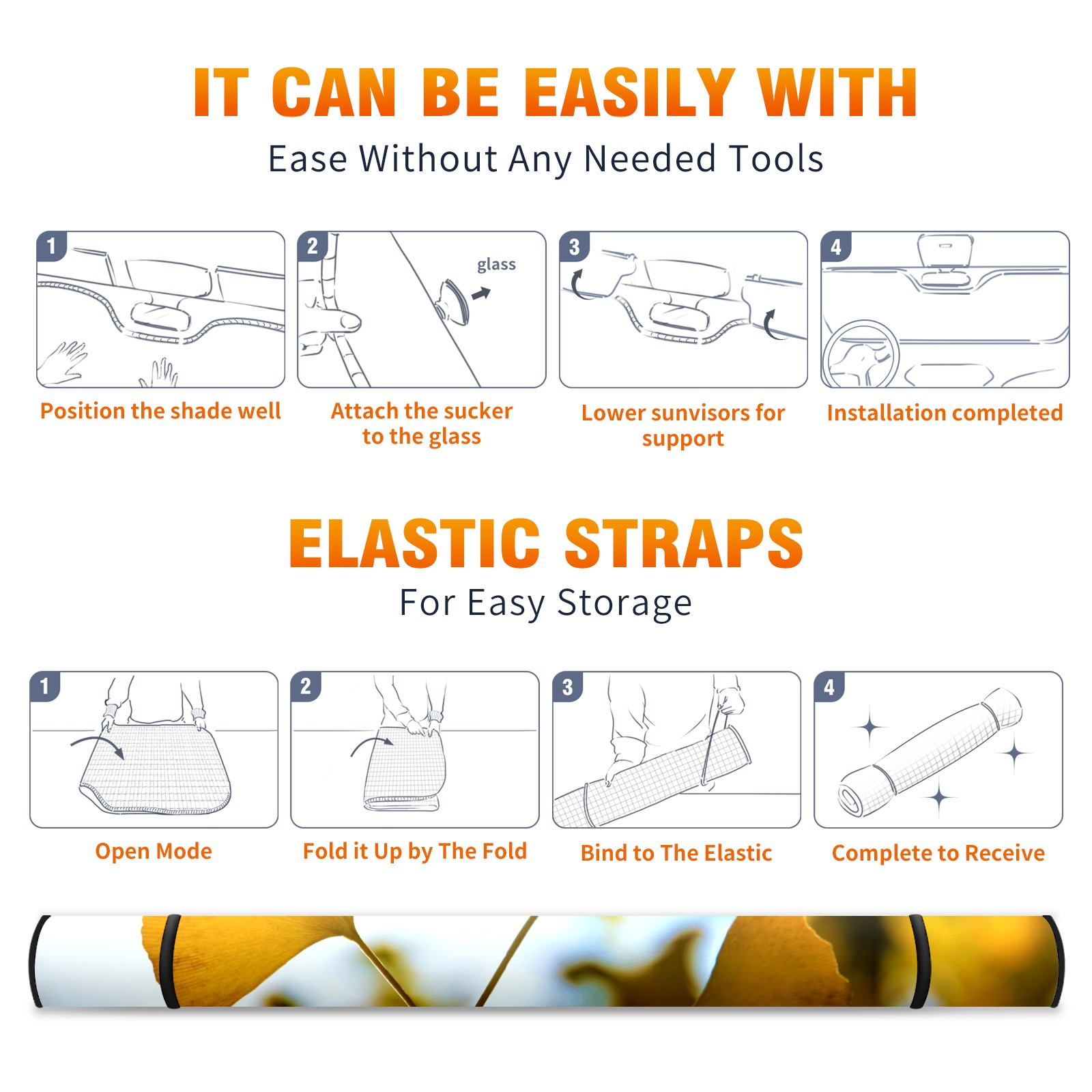 • Diameter /Size 63"L x 33.5"W Made from excellent materials which makes it sturdy and protects the car from the sun. Easy to use and pack. Makes the interior of the car cooler.You can easily stash the sunshade in the storage bag or store long term.It open and closes easy. Also the leather storage bag is durable and easy to put the umbrella back into.This windshield sunshade provides complete coverage and keeps your car interior cool under direct sun. It is easy to open and position under the windshield and around the rear-view mirror. Makes Your Car Easy To Identify, Perfect For Finding Your Car In Crowded Parking Lots And Garages.Great Choice: It Is A Great Gift For Dad, Boyfriend, Brother, Brother And Uncle, Friends, Classmates, Family And So On. Notice: Due To Difference Computer Monitors, The Color Maybe Slightly Different From Picture. As Different Measurement Methods, Measurement Data Will Float Within 2%.I Hope You Understand. If You Have Any Question About The Item Please Do Not Hesitate To Contact Us Immediately And We Will Give You A Satisfactory Reply Within 24 Hours.
