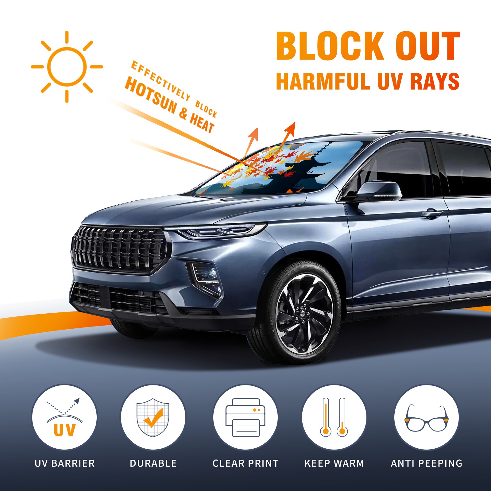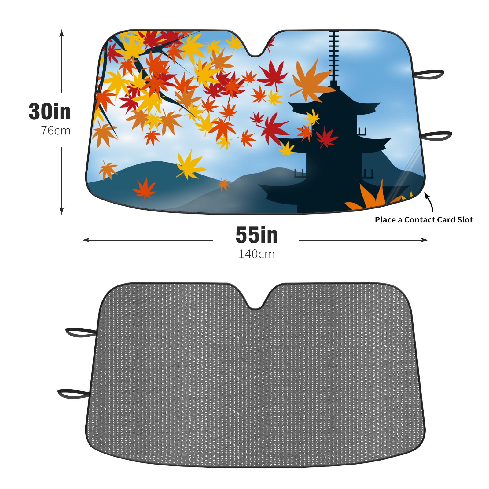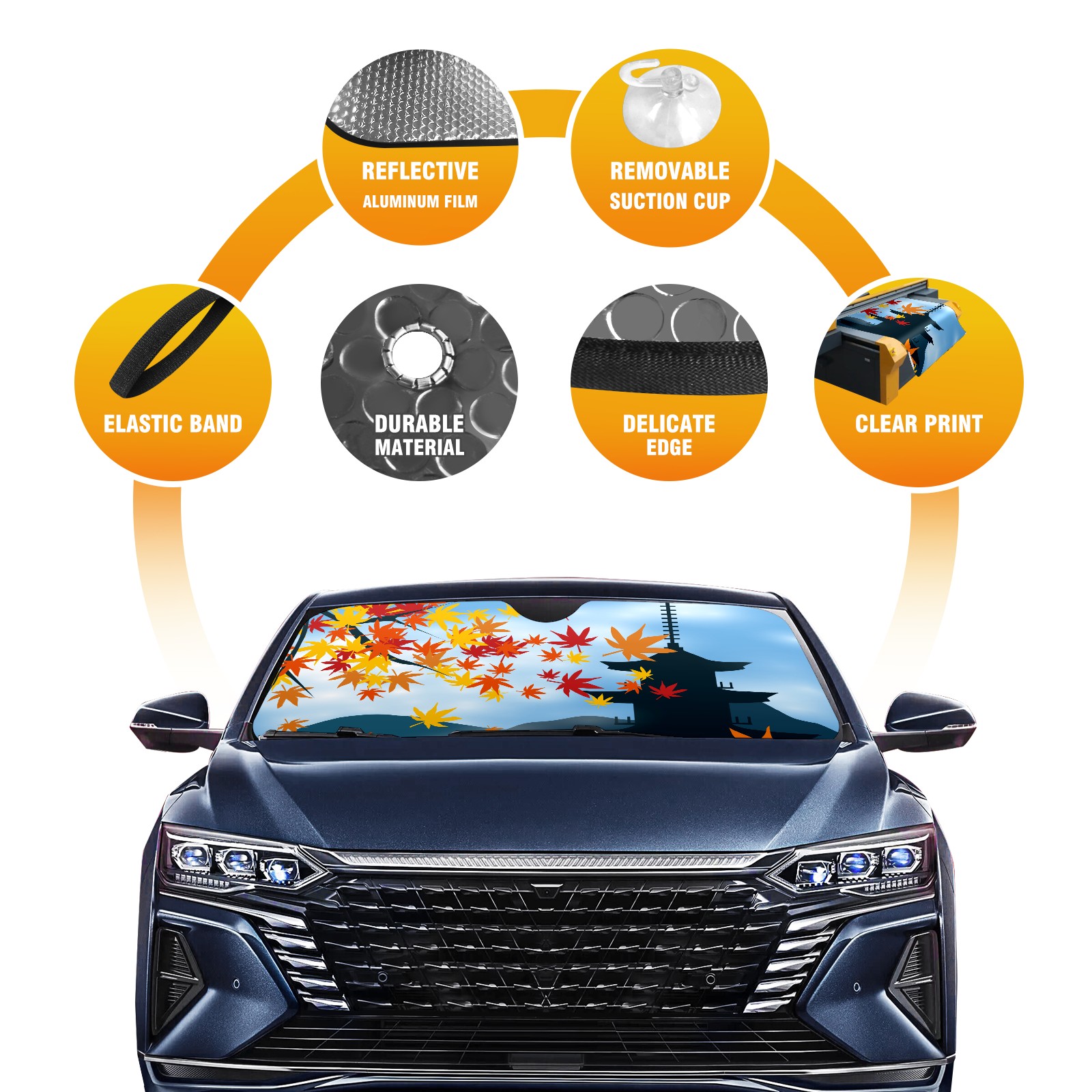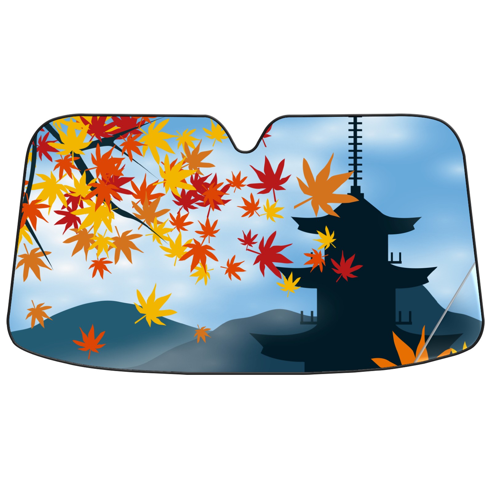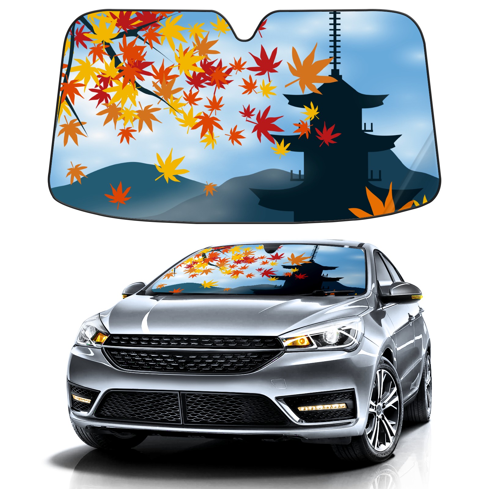 Car Windshield Sun Shade For Front Window Japanese Fall Maple Leaf Building Sky Mountain Fuji Foldable Vehicle Windshield Car Sun Visor Covers Automotive Window Protector Car Camping Privacy Sun Blocker