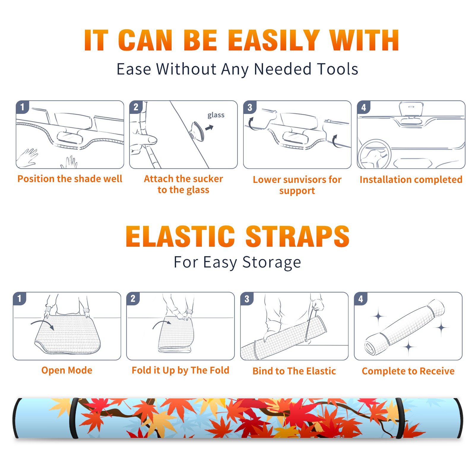 • Diameter /Size 63"L x 33.5"W Made from excellent materials which makes it sturdy and protects the car from the sun. Easy to use and pack. Makes the interior of the car cooler.You can easily stash the sunshade in the storage bag or store long term.It open and closes easy. Also the leather storage bag is durable and easy to put the umbrella back into.This windshield sunshade provides complete coverage and keeps your car interior cool under direct sun. It is easy to open and position under the windshield and around the rear-view mirror. Makes Your Car Easy To Identify, Perfect For Finding Your Car In Crowded Parking Lots And Garages.Great Choice: It Is A Great Gift For Dad, Boyfriend, Brother, Brother And Uncle, Friends, Classmates, Family And So On. Notice: Due To Difference Computer Monitors, The Color Maybe Slightly Different From Picture. As Different Measurement Methods, Measurement Data Will Float Within 2%.I Hope You Understand. If You Have Any Question About The Item Please Do Not Hesitate To Contact Us Immediately And We Will Give You A Satisfactory Reply Within 24 Hours.